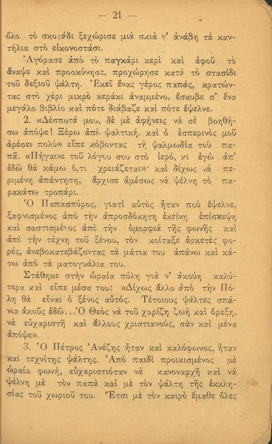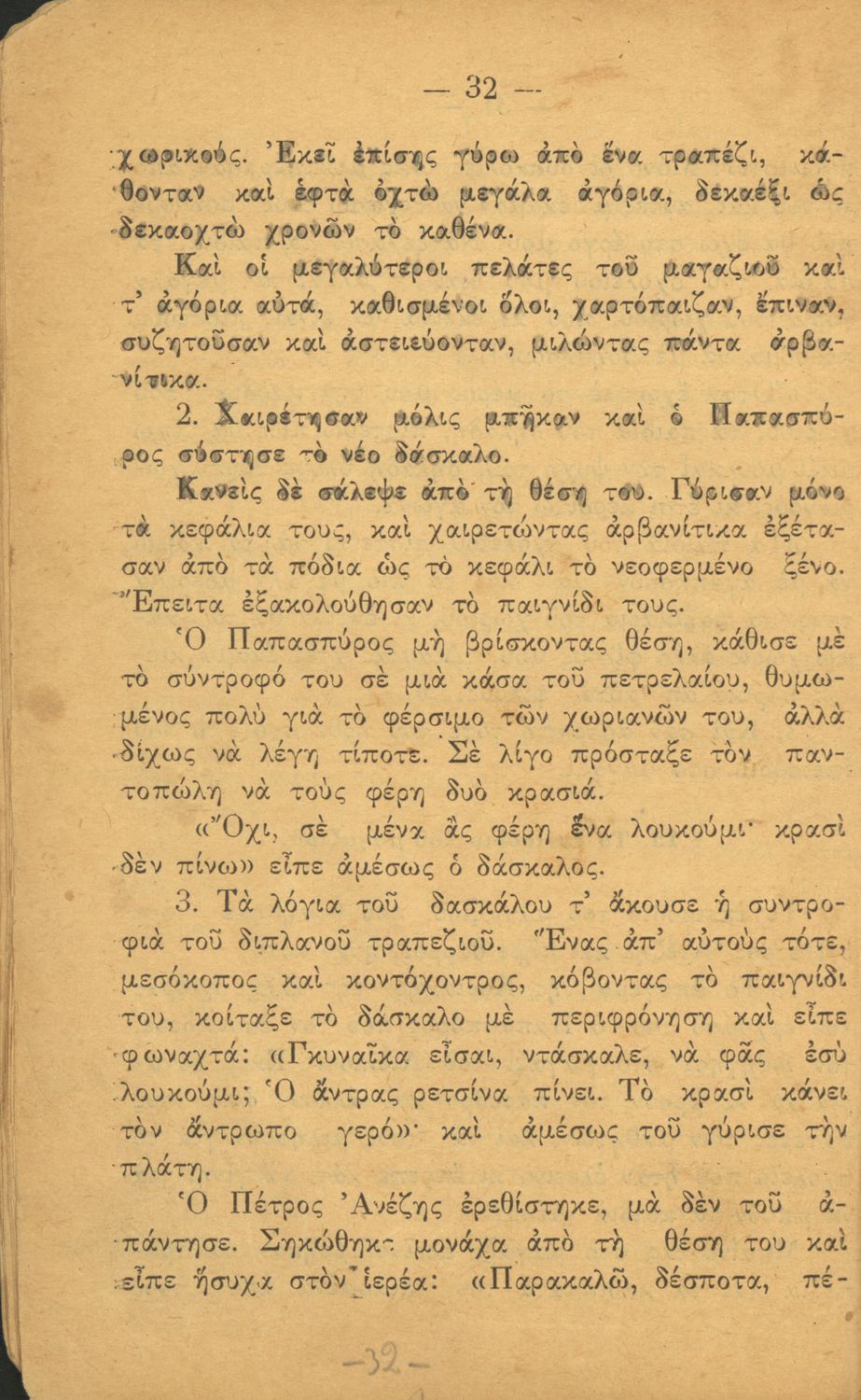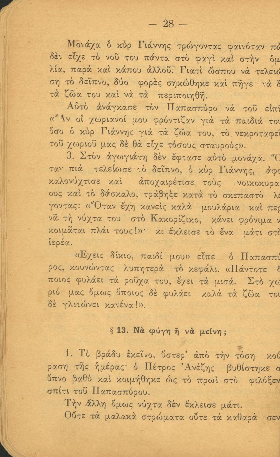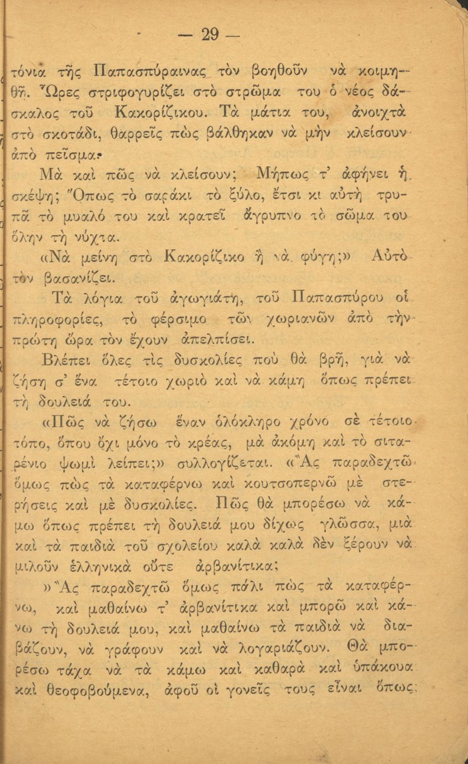 Αναγνωστικό Δ΄ Δημοτικού που περιέχει πεζά και ποιήματα με περιεχόμενο διδακτικό και ηθικοπλαστικό εμπνευσμένα από την ελληνική ιστορία και μυθολογία, και την αγροτική και κοινωνική ζωή.