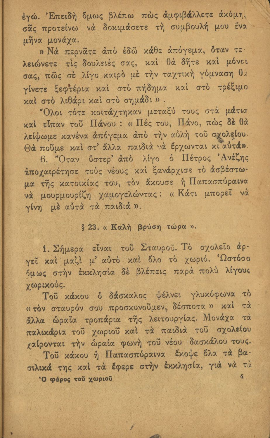 Ο Φάρος του χωριού, Αναγνωστικό Δ΄ Δημοτικού