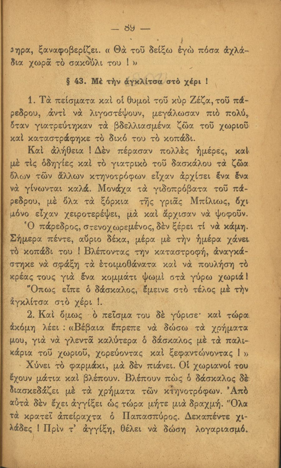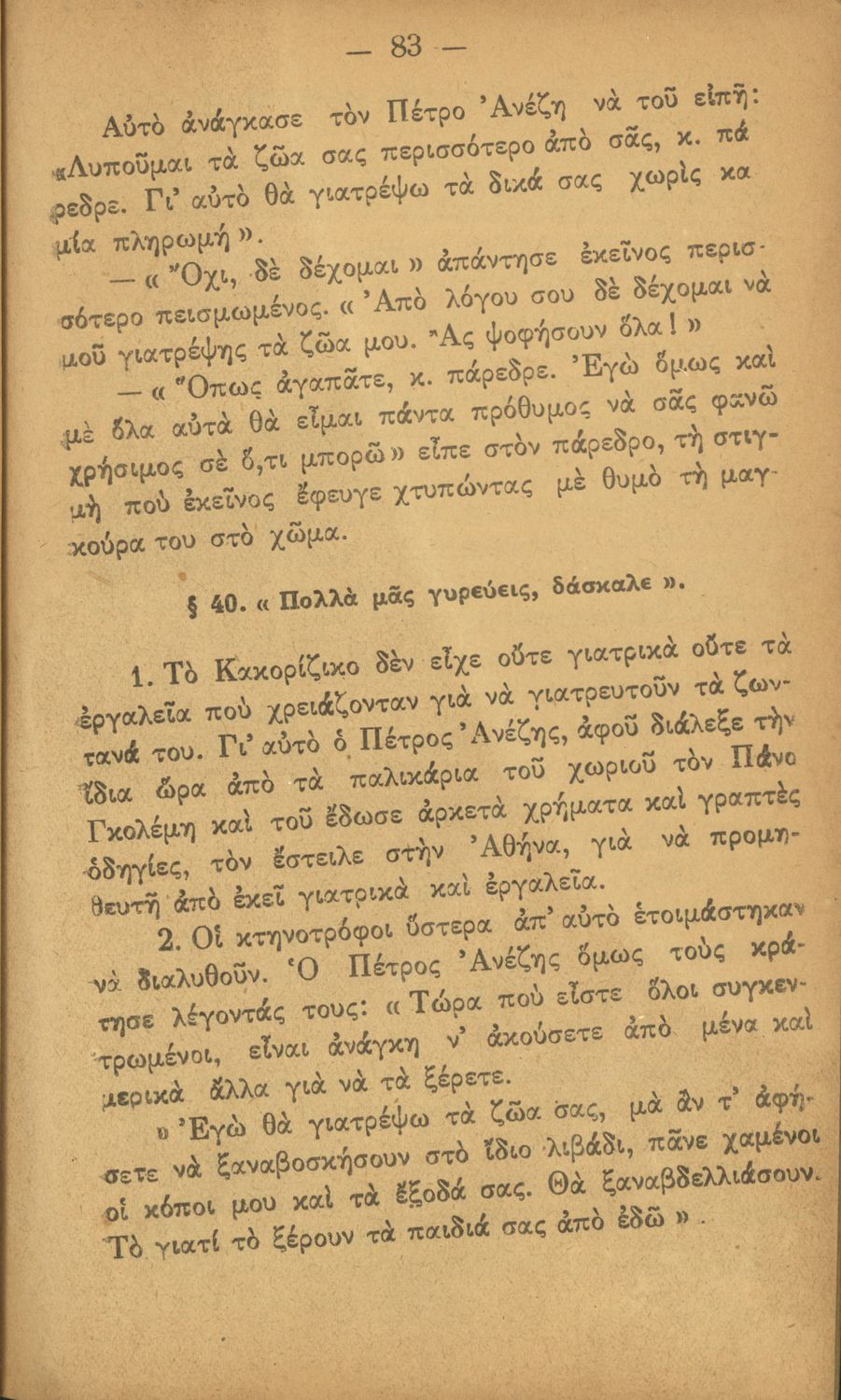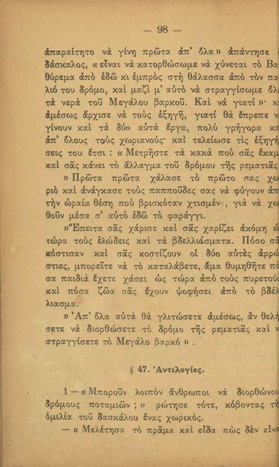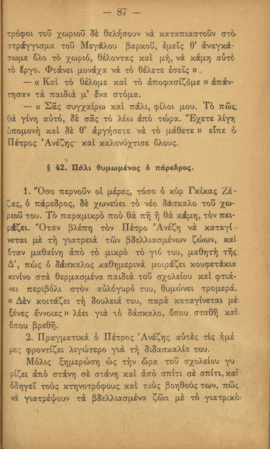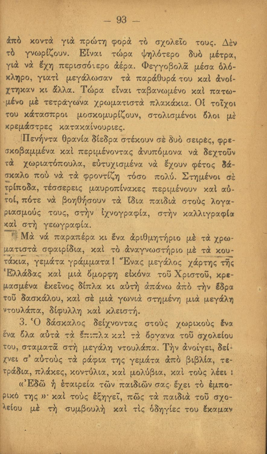 Αναγνωστικό Δ΄ Δημοτικού που περιέχει πεζά και ποιήματα με περιεχόμενο διδακτικό και ηθικοπλαστικό εμπνευσμένα από την ελληνική ιστορία και μυθολογία, και την αγροτική και κοινωνική ζωή.