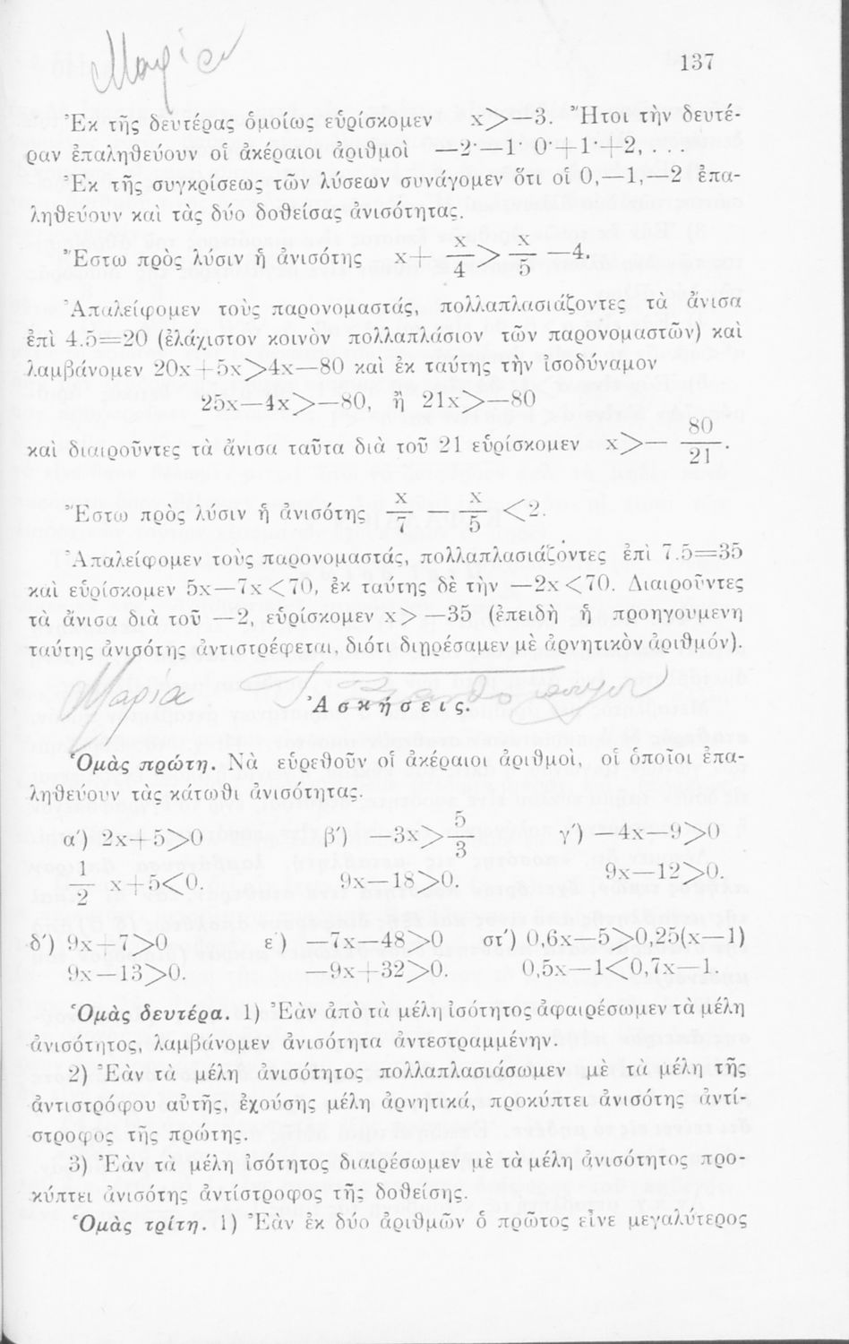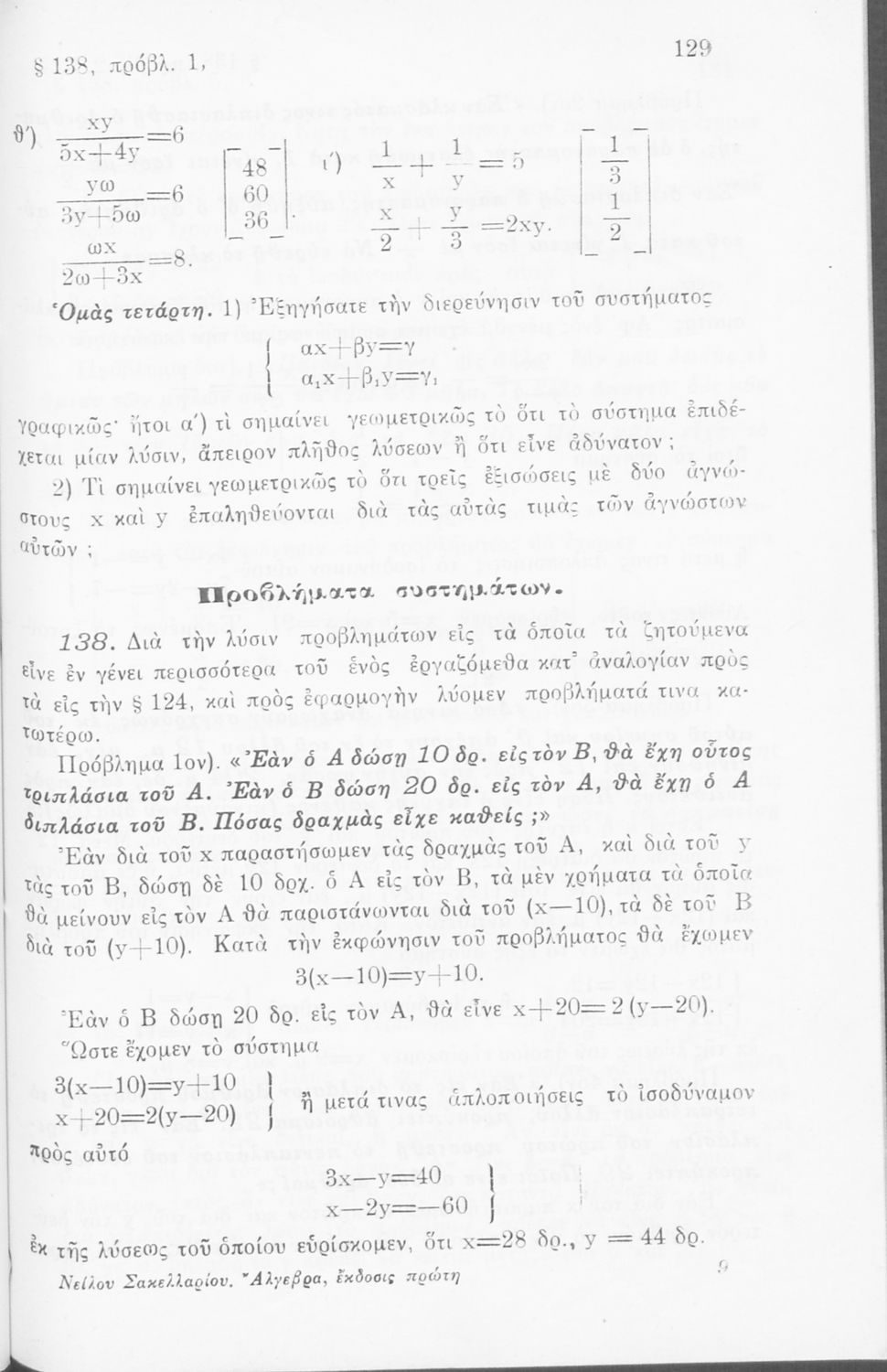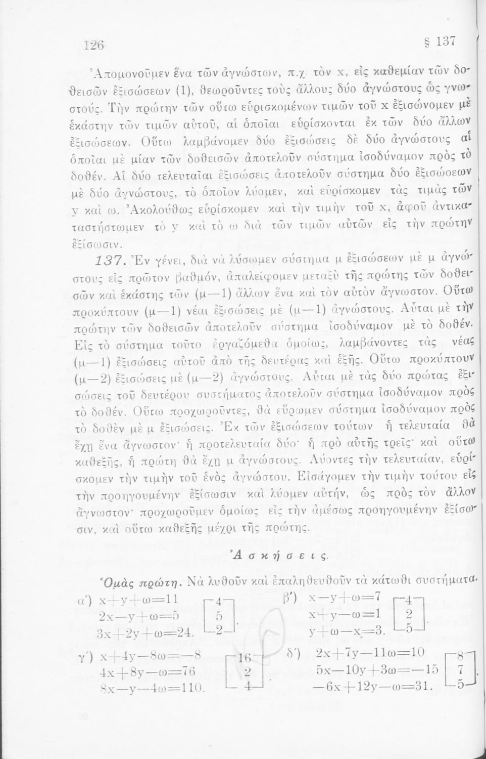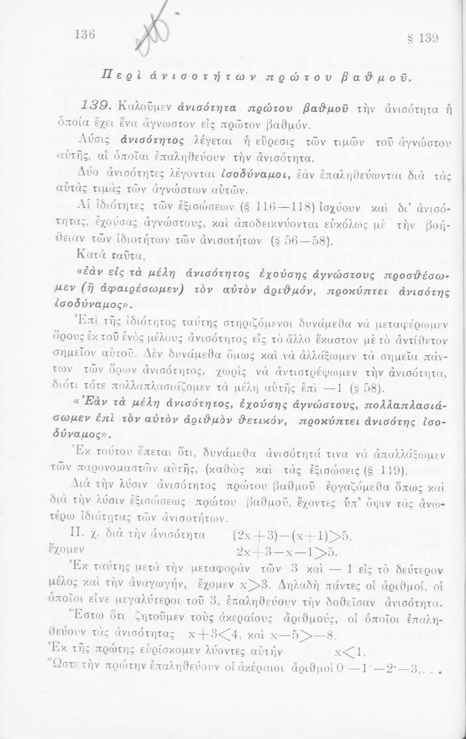 Σχολικό εγχειρίδιο Άλγεβρας για τα Γυμνάσια χωρισμένο σε θεωρία και ασκήσεις. Ο συγγραφέας ήταν καθηγητής στο Πανεπιστήμιο Αθηνών.