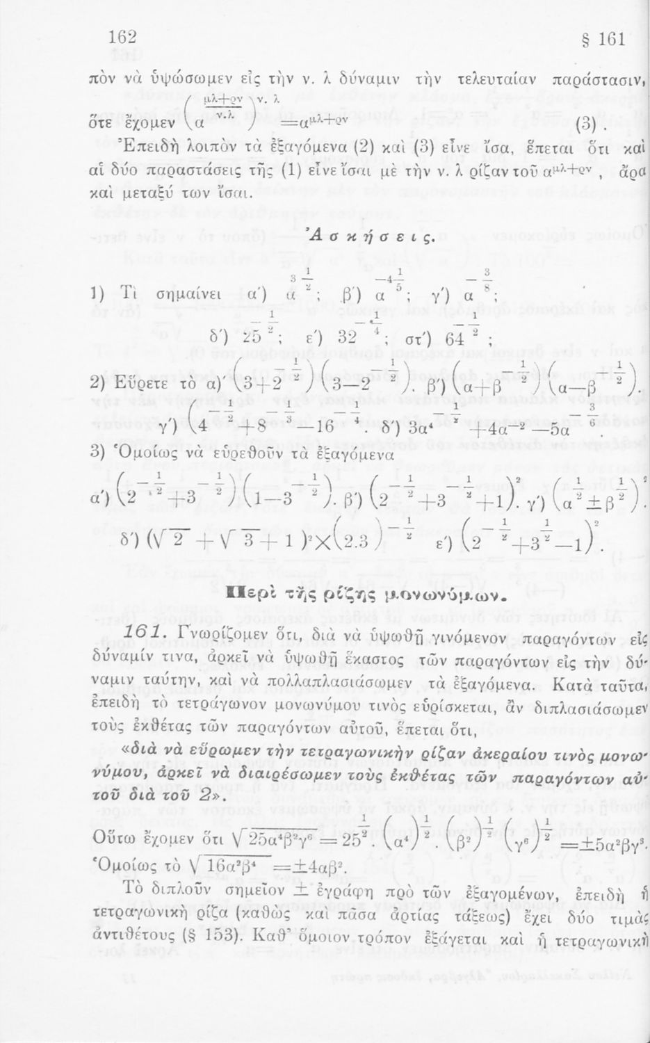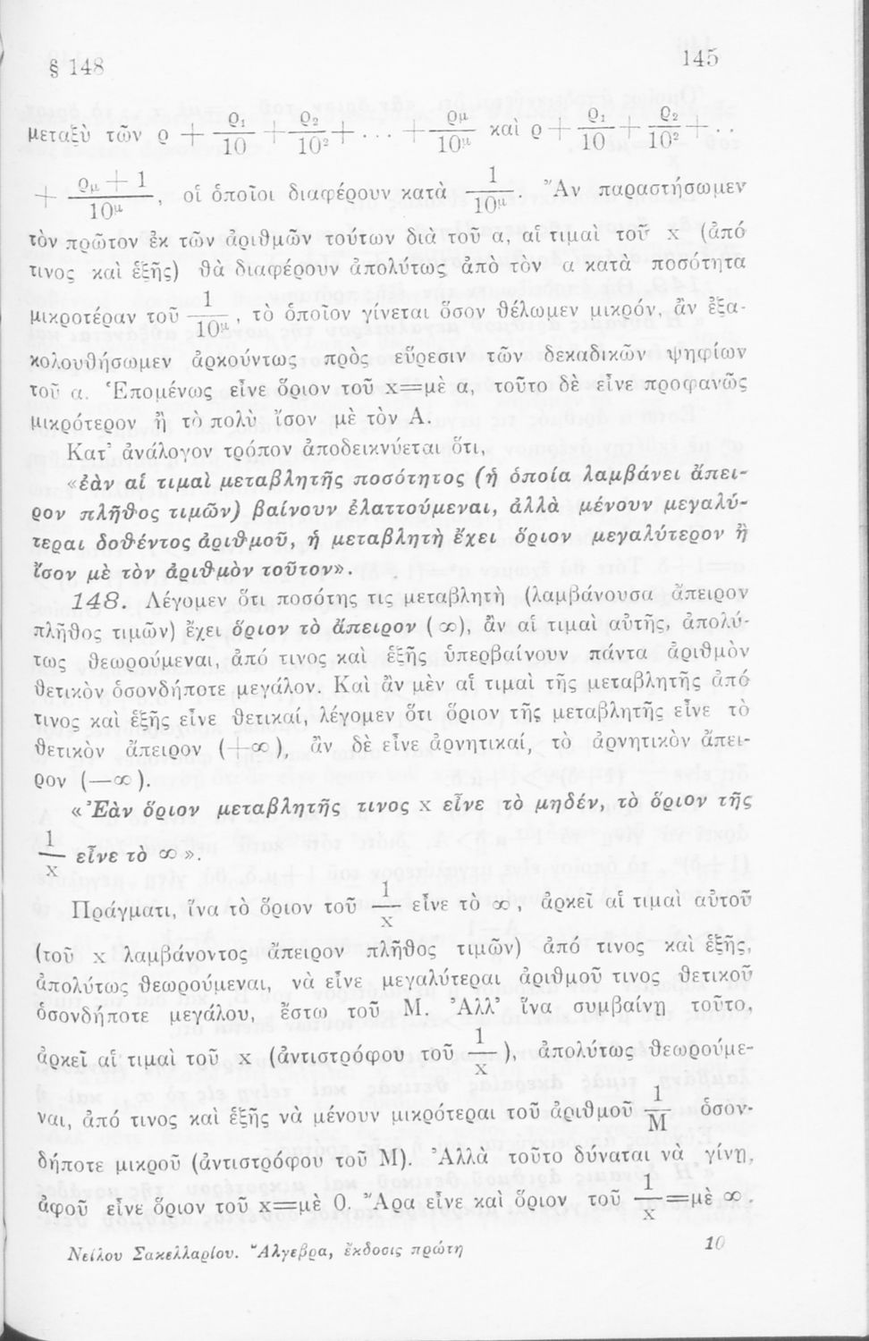 Σχολικό εγχειρίδιο Άλγεβρας για τα Γυμνάσια χωρισμένο σε θεωρία και ασκήσεις. Ο συγγραφέας ήταν καθηγητής στο Πανεπιστήμιο Αθηνών.