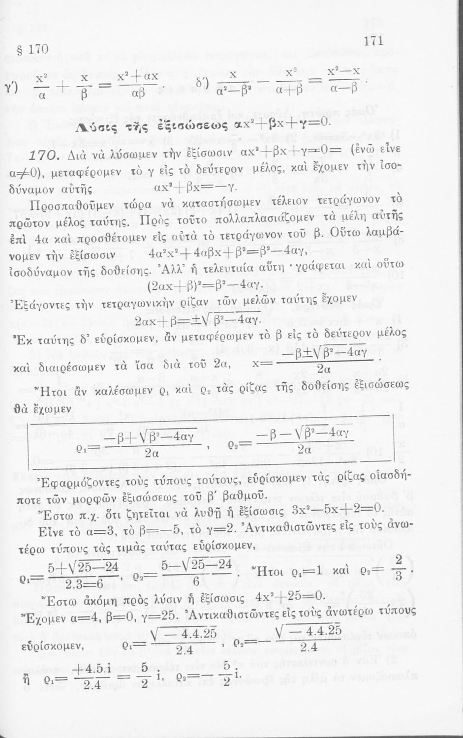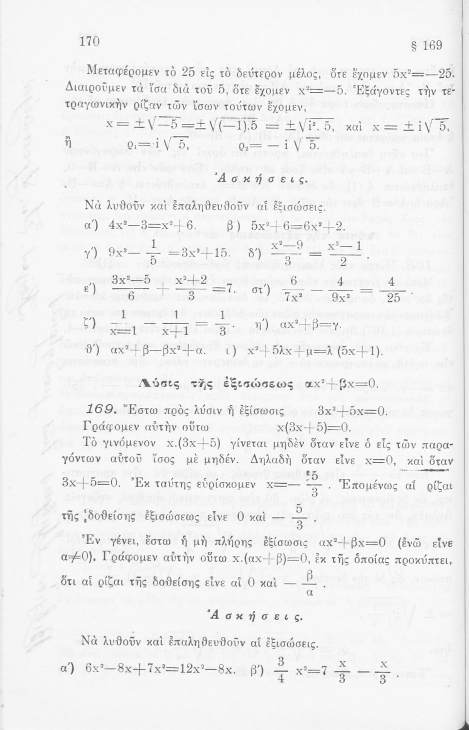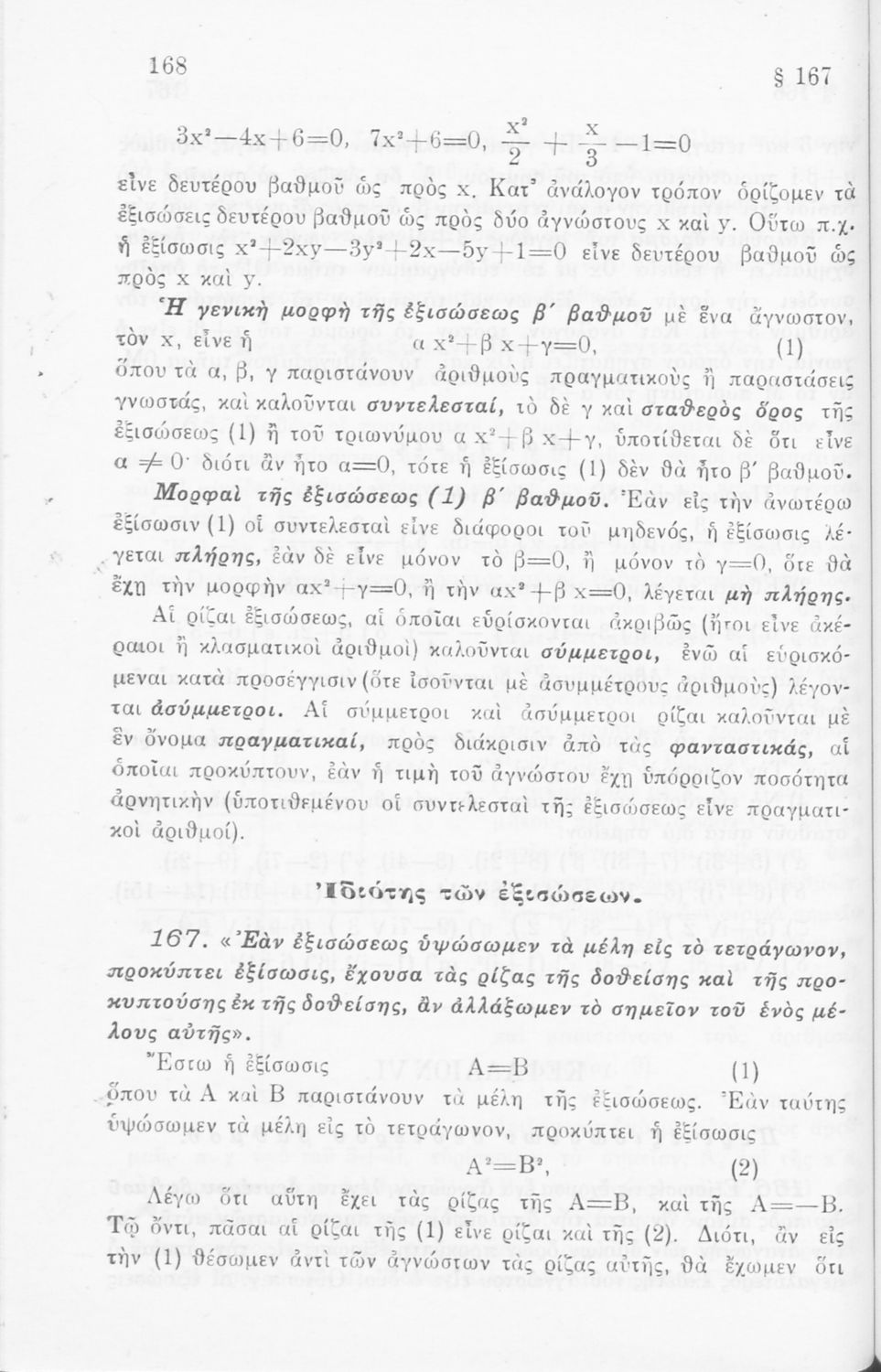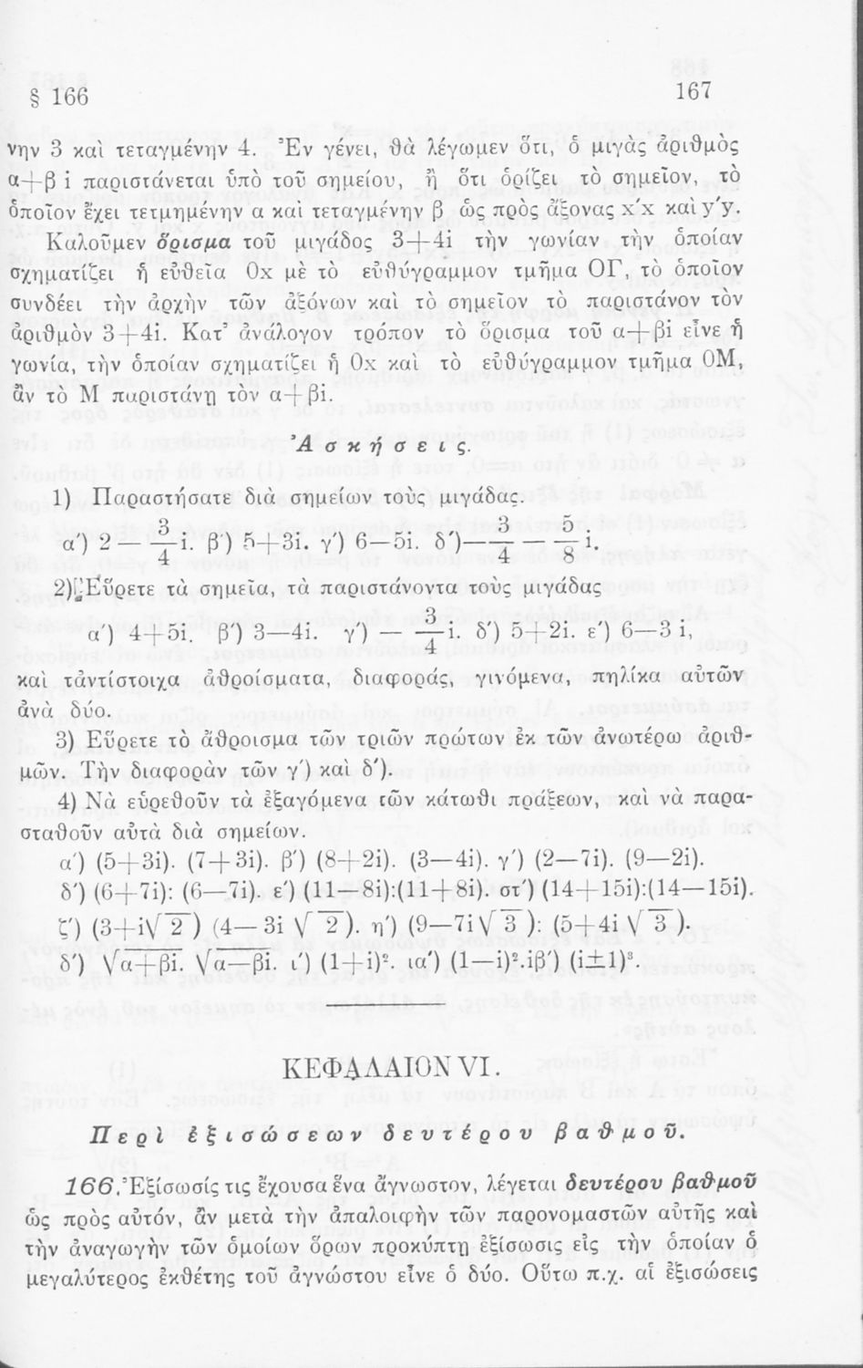 Σχολικό εγχειρίδιο Άλγεβρας για τα Γυμνάσια χωρισμένο σε θεωρία και ασκήσεις. Ο συγγραφέας ήταν καθηγητής στο Πανεπιστήμιο Αθηνών.