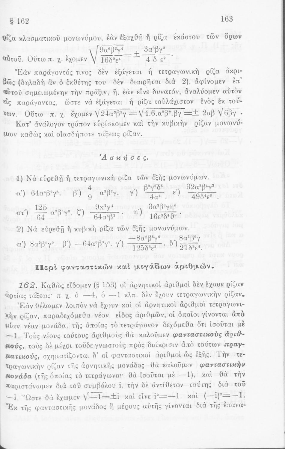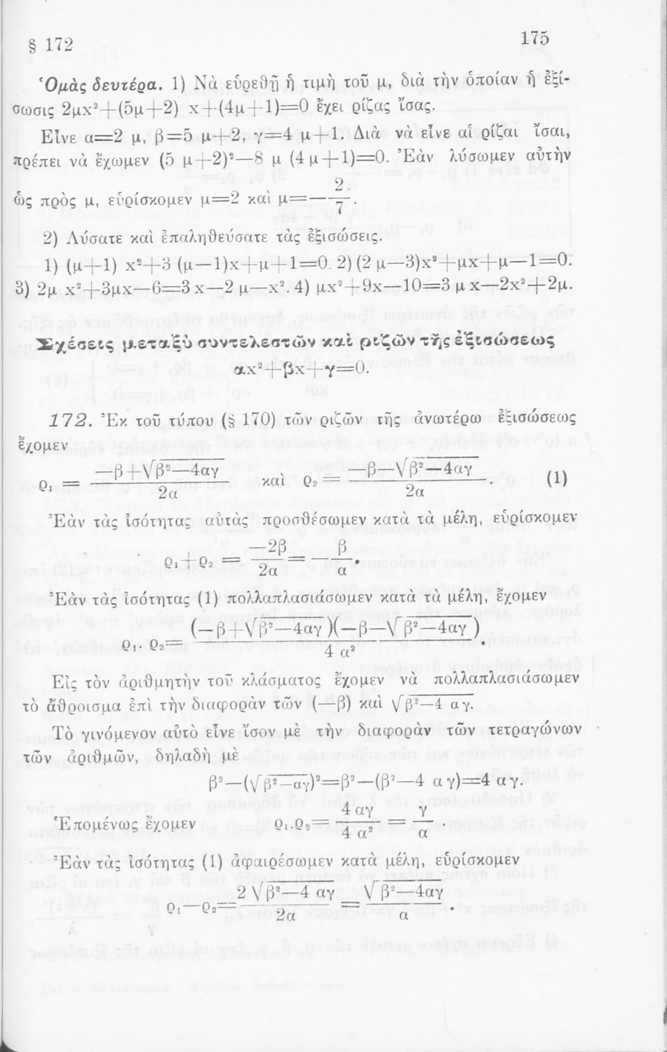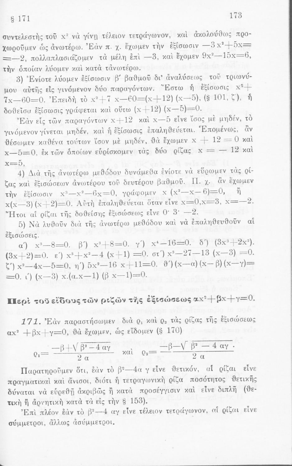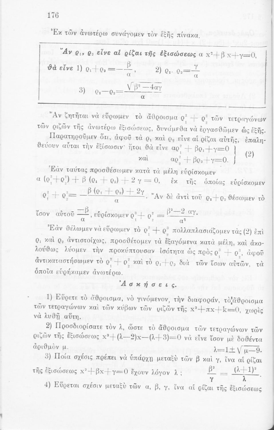 Σχολικό εγχειρίδιο Άλγεβρας για τα Γυμνάσια χωρισμένο σε θεωρία και ασκήσεις. Ο συγγραφέας ήταν καθηγητής στο Πανεπιστήμιο Αθηνών.