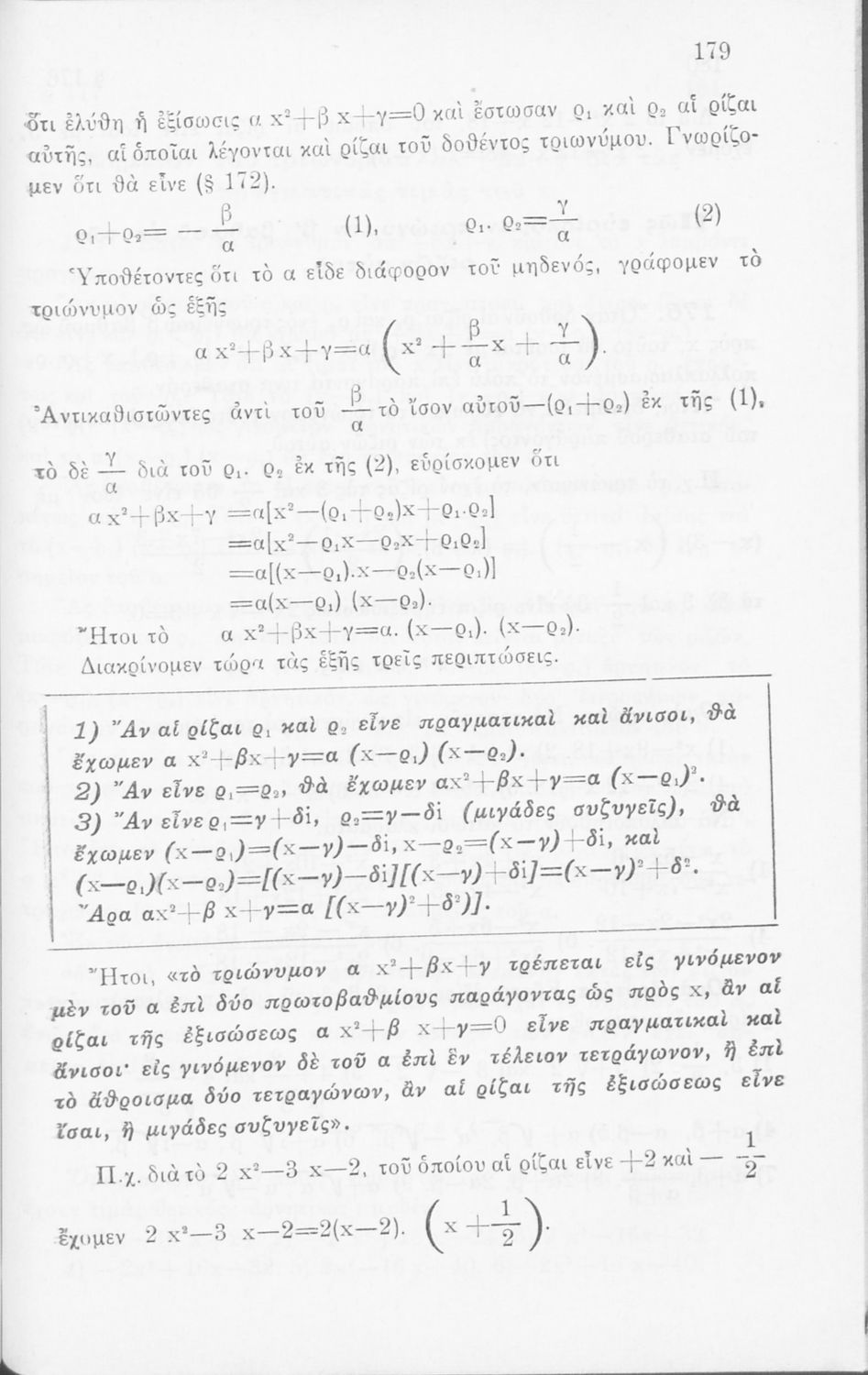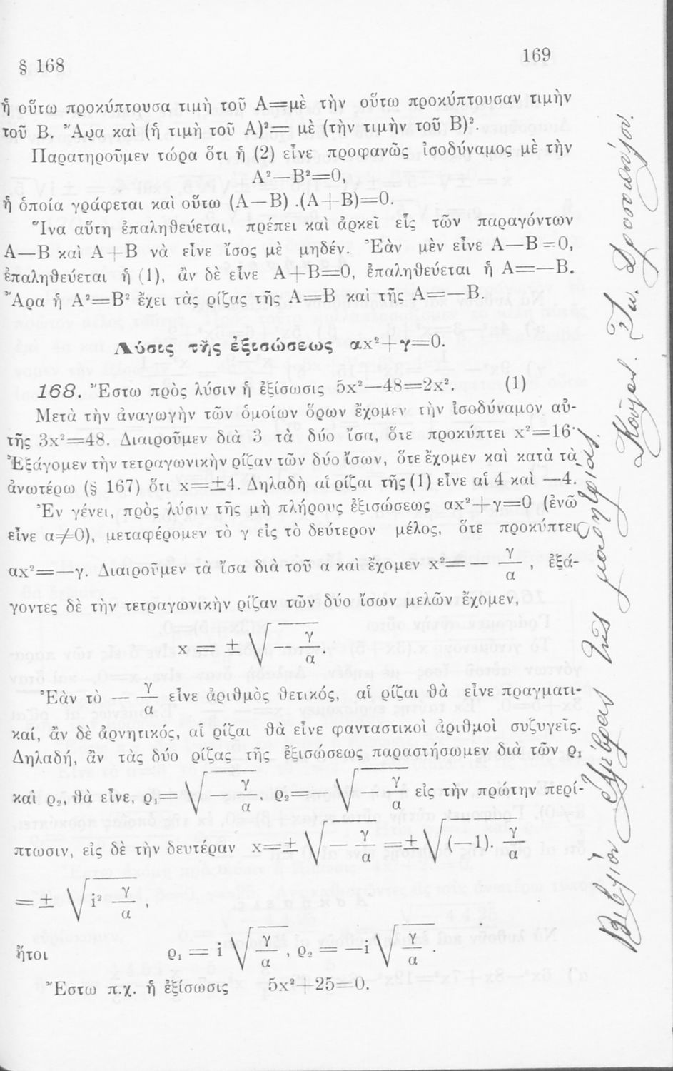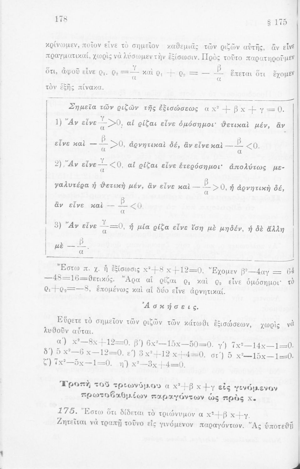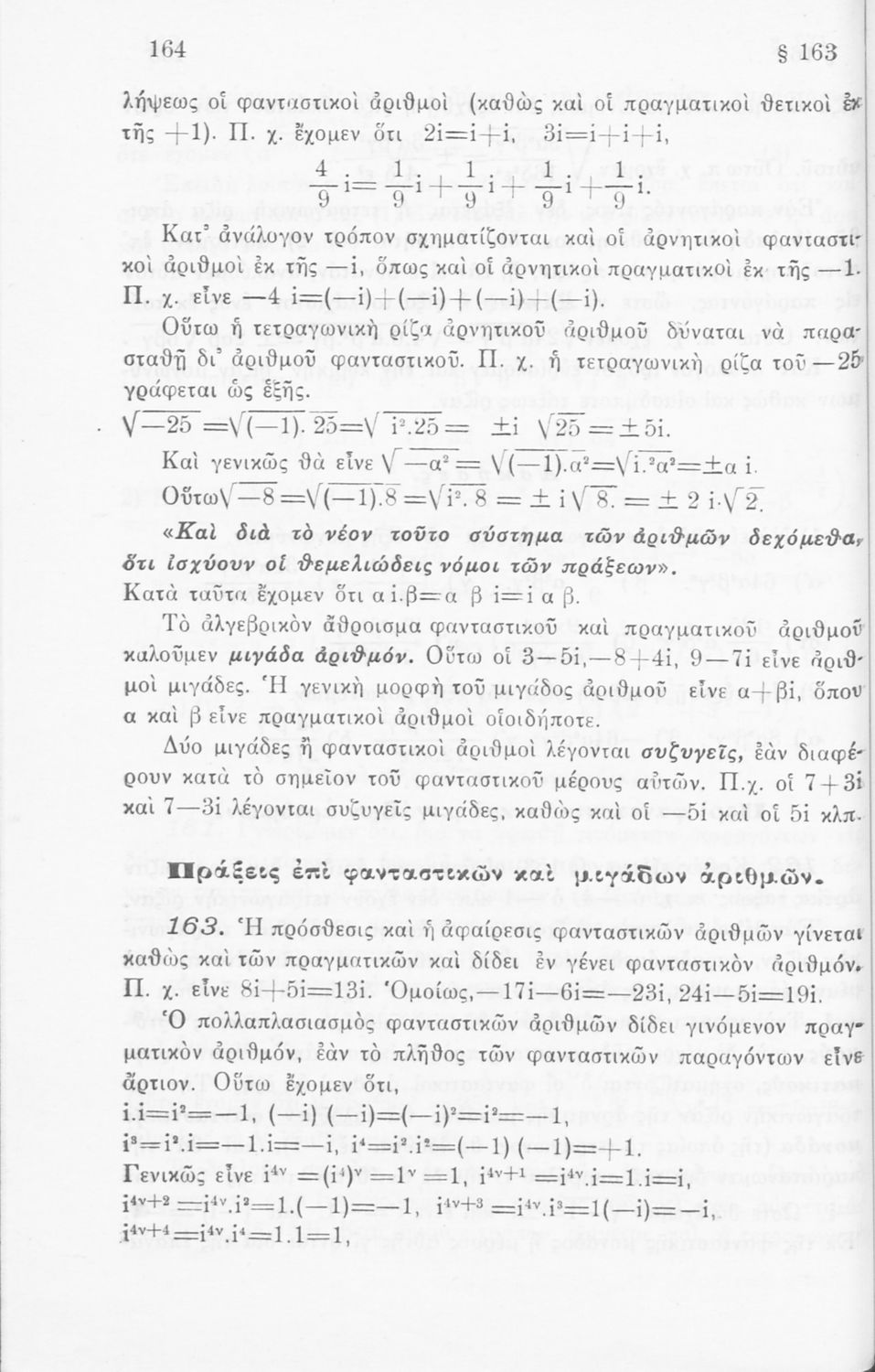 Σχολικό εγχειρίδιο Άλγεβρας για τα Γυμνάσια χωρισμένο σε θεωρία και ασκήσεις. Ο συγγραφέας ήταν καθηγητής στο Πανεπιστήμιο Αθηνών.