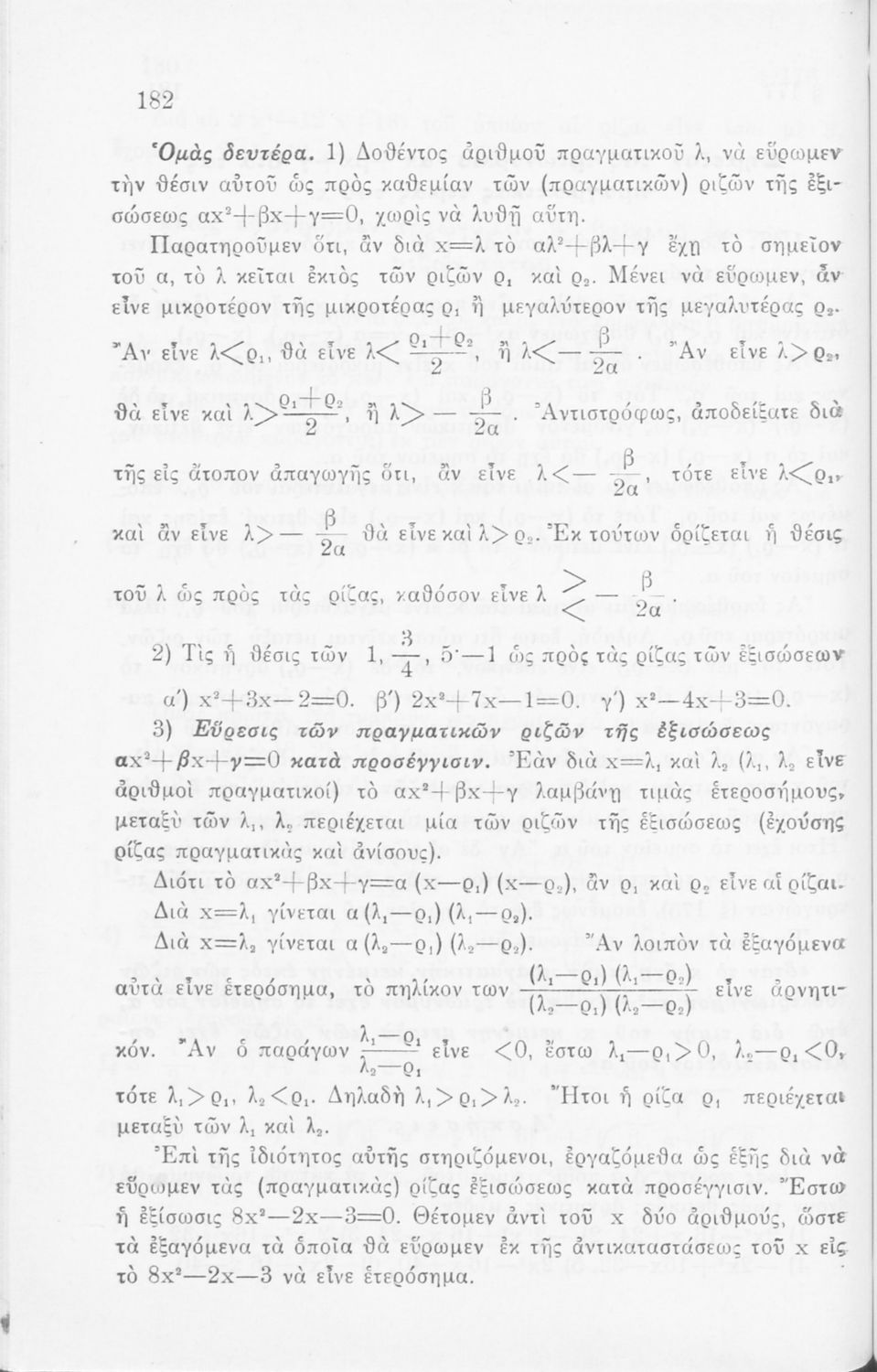 Παρουσίαση περιεχομένου: Σχολικό εγχειρίδιο Άλγεβρας για τα Γυμνάσια χωρισμένο σε θεωρία και ασκήσεις. Ο συγγραφέας ήταν καθηγητής στο Πανεπιστήμιο Αθηνών.