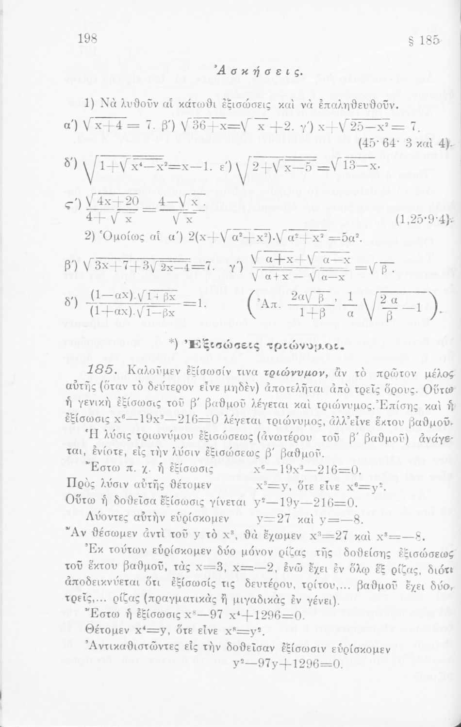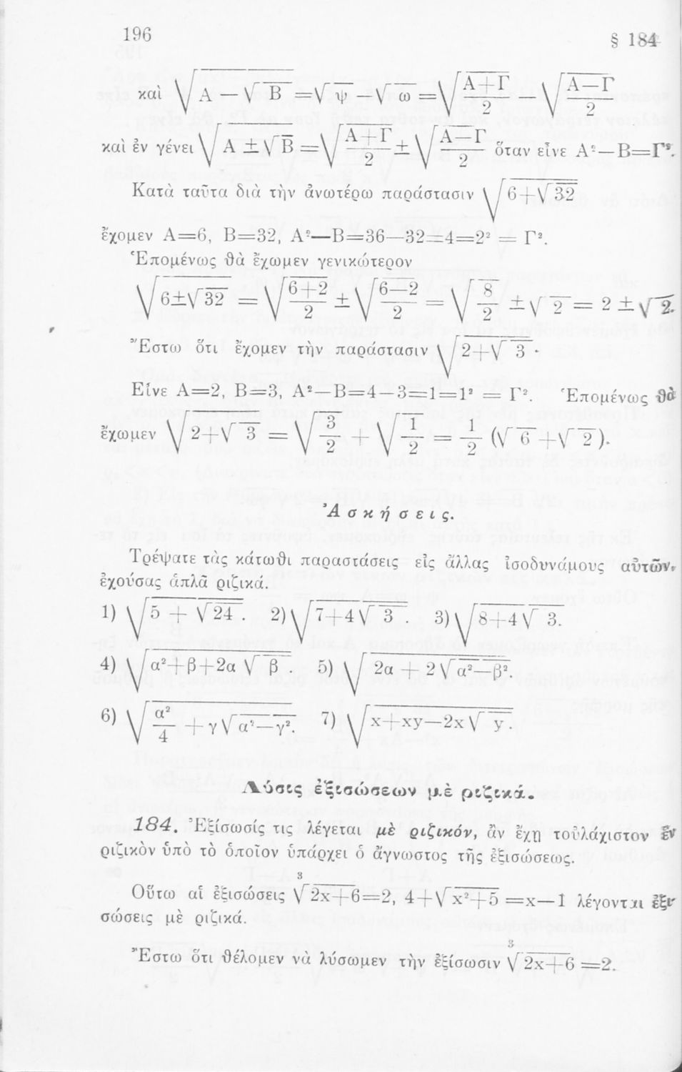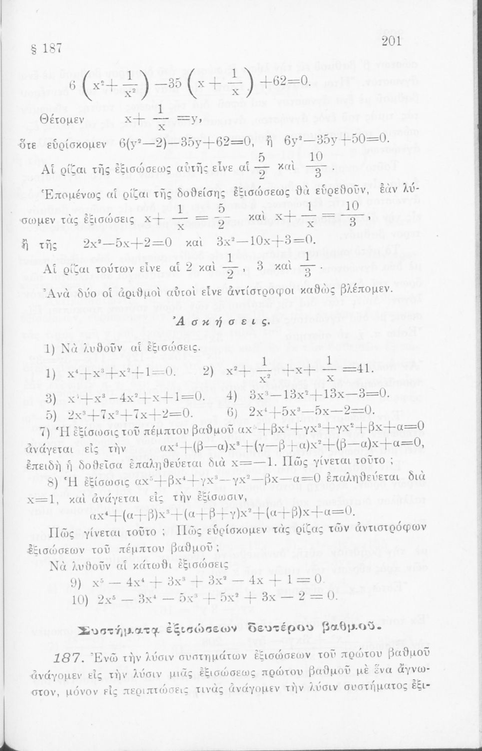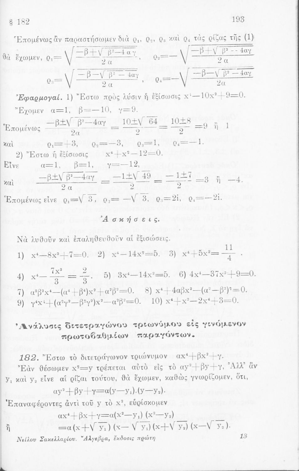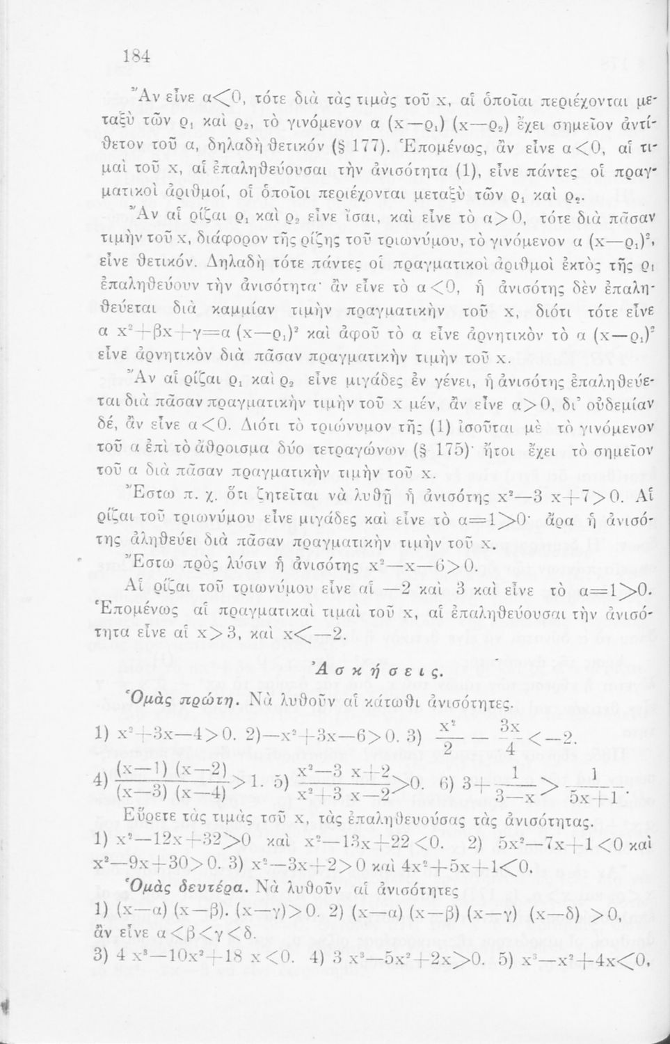 Σχολικό εγχειρίδιο Άλγεβρας για τα Γυμνάσια χωρισμένο σε θεωρία και ασκήσεις. Ο συγγραφέας ήταν καθηγητής στο Πανεπιστήμιο Αθηνών.
