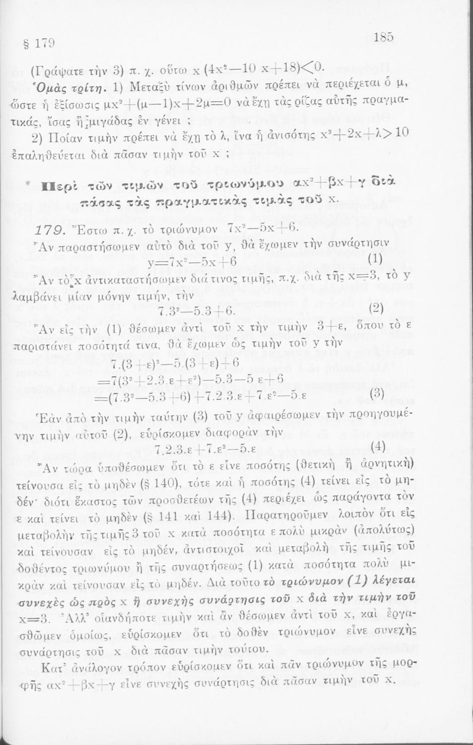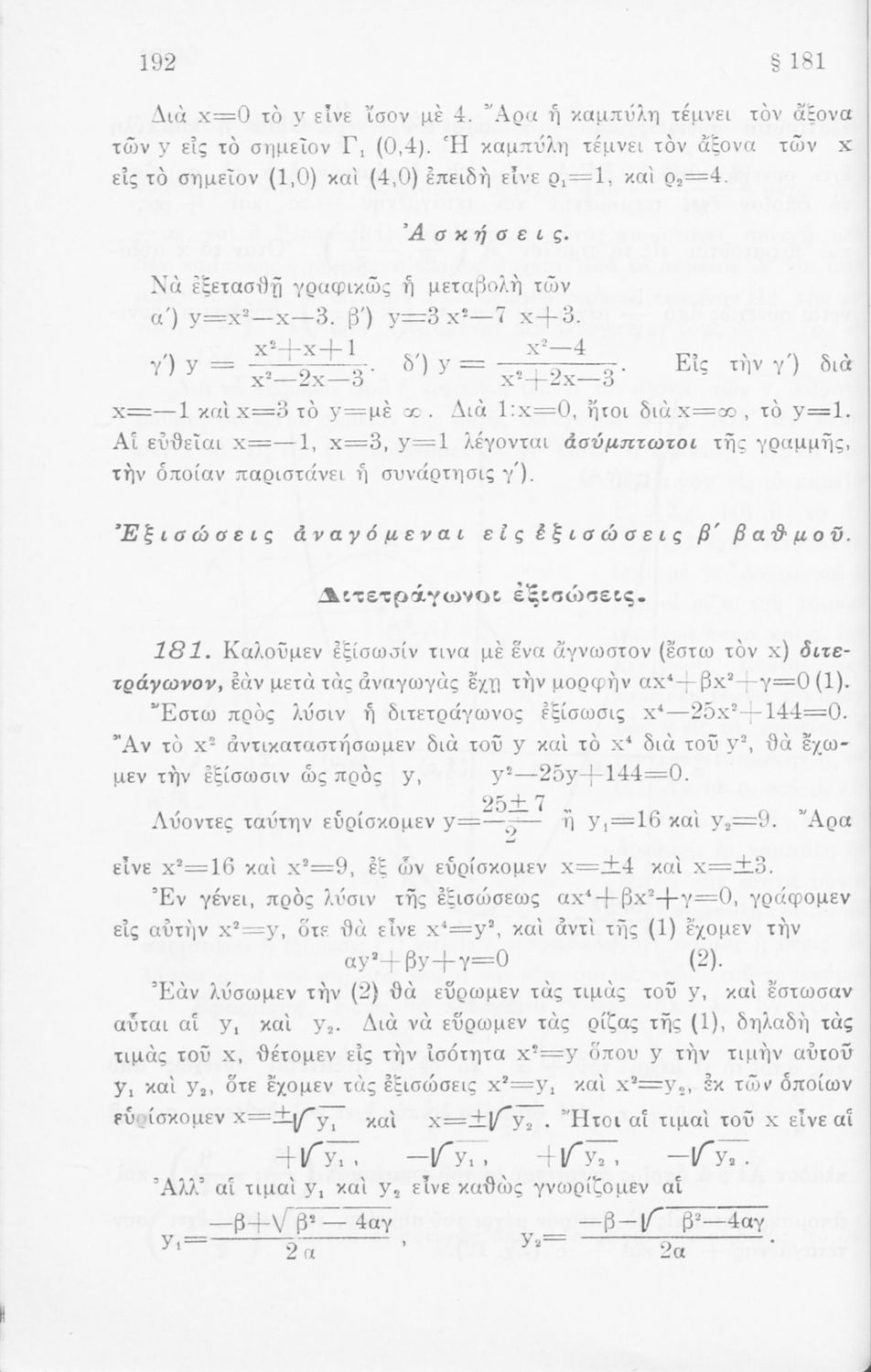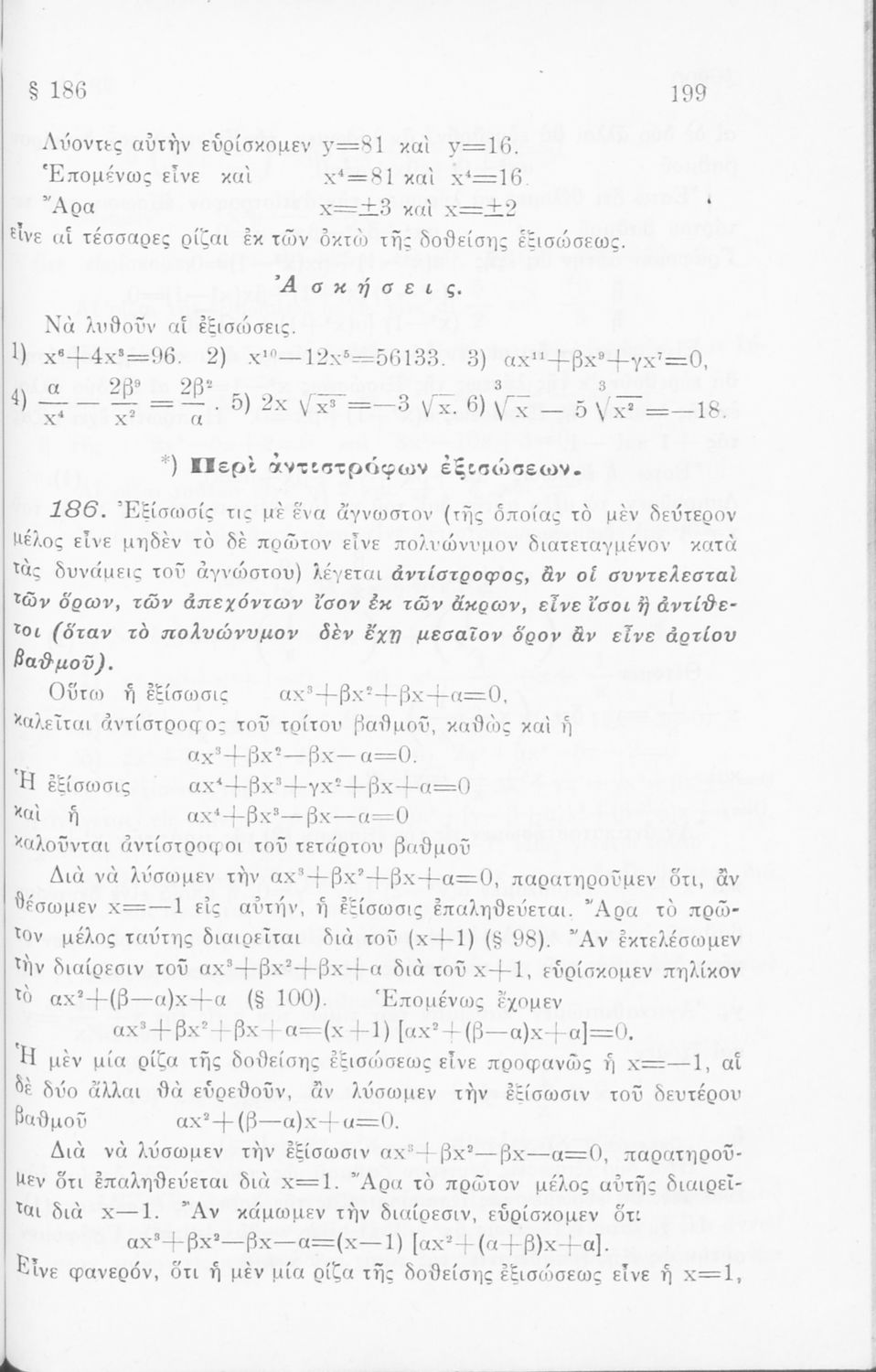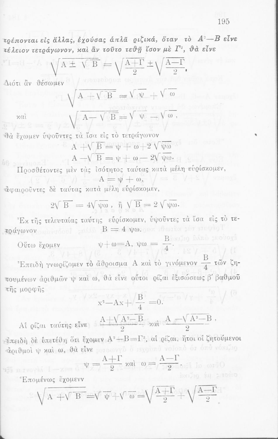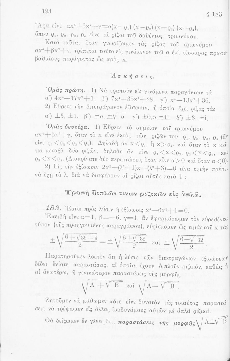 Σχολικό εγχειρίδιο Άλγεβρας για τα Γυμνάσια χωρισμένο σε θεωρία και ασκήσεις. Ο συγγραφέας ήταν καθηγητής στο Πανεπιστήμιο Αθηνών.
