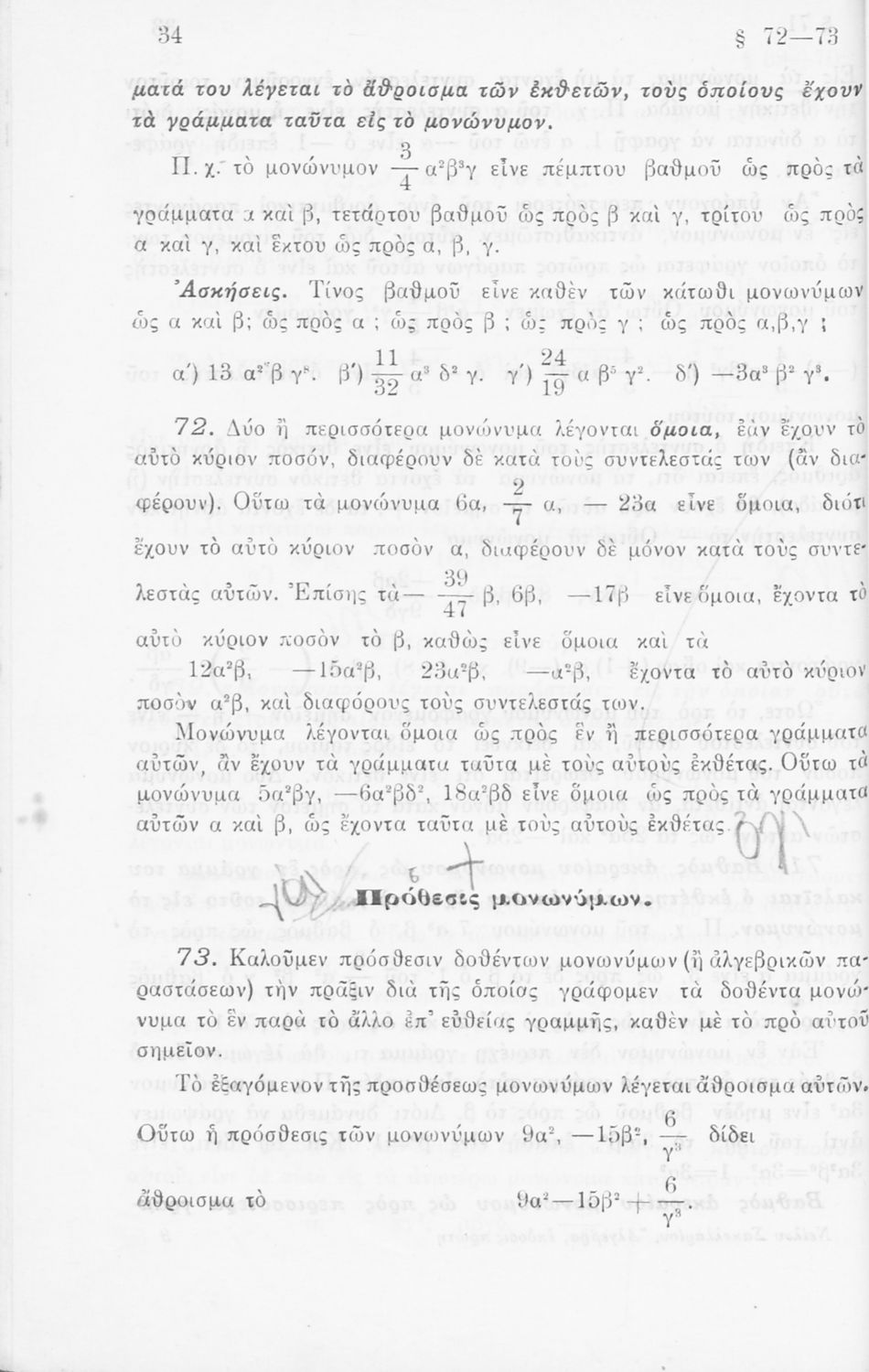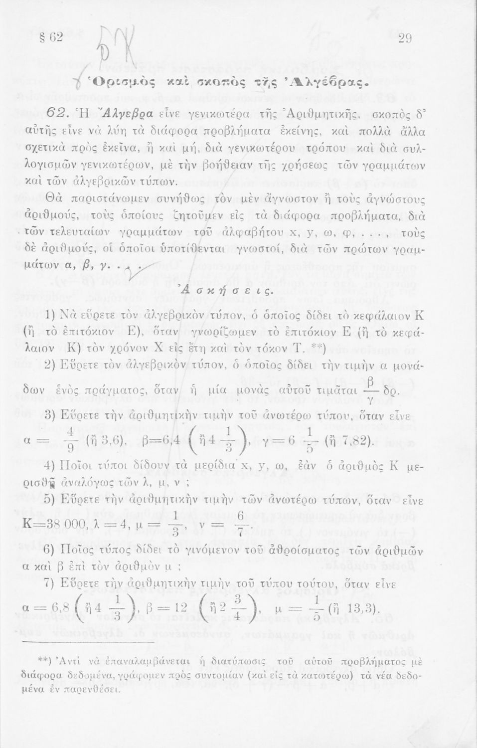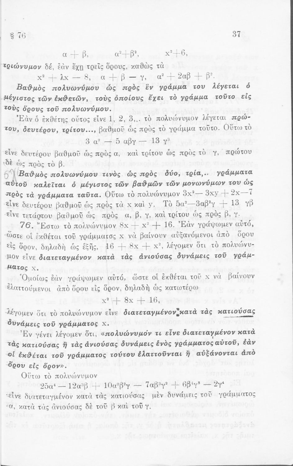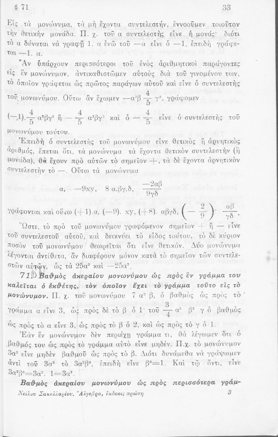 Σχολικό εγχειρίδιο Άλγεβρας για τα Γυμνάσια χωρισμένο σε θεωρία και ασκήσεις. Ο συγγραφέας ήταν καθηγητής στο Πανεπιστήμιο Αθηνών.