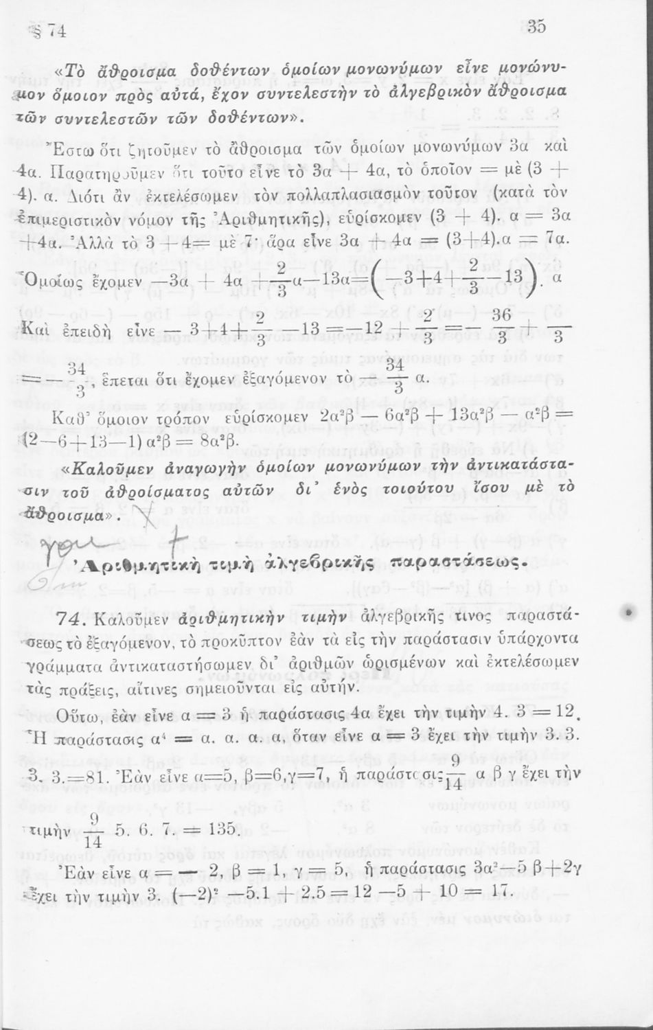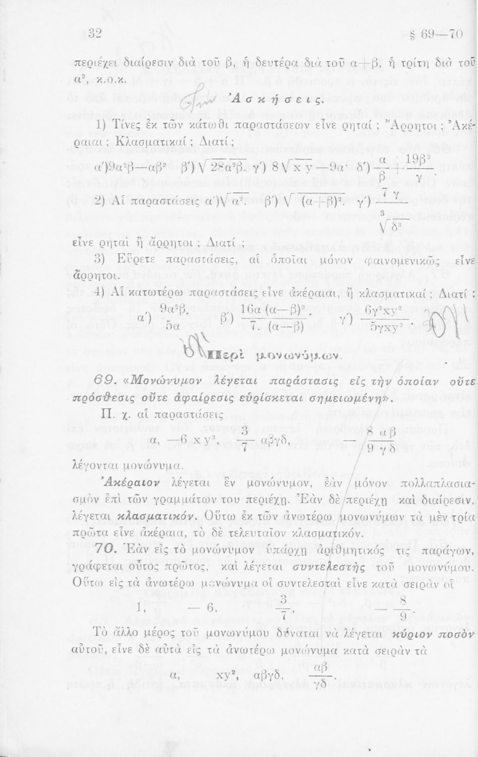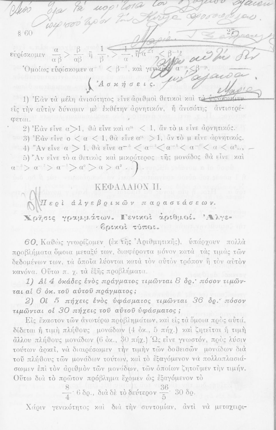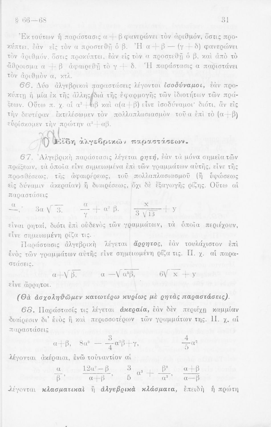 Σχολικό εγχειρίδιο Άλγεβρας για τα Γυμνάσια χωρισμένο σε θεωρία και ασκήσεις. Ο συγγραφέας ήταν καθηγητής στο Πανεπιστήμιο Αθηνών.