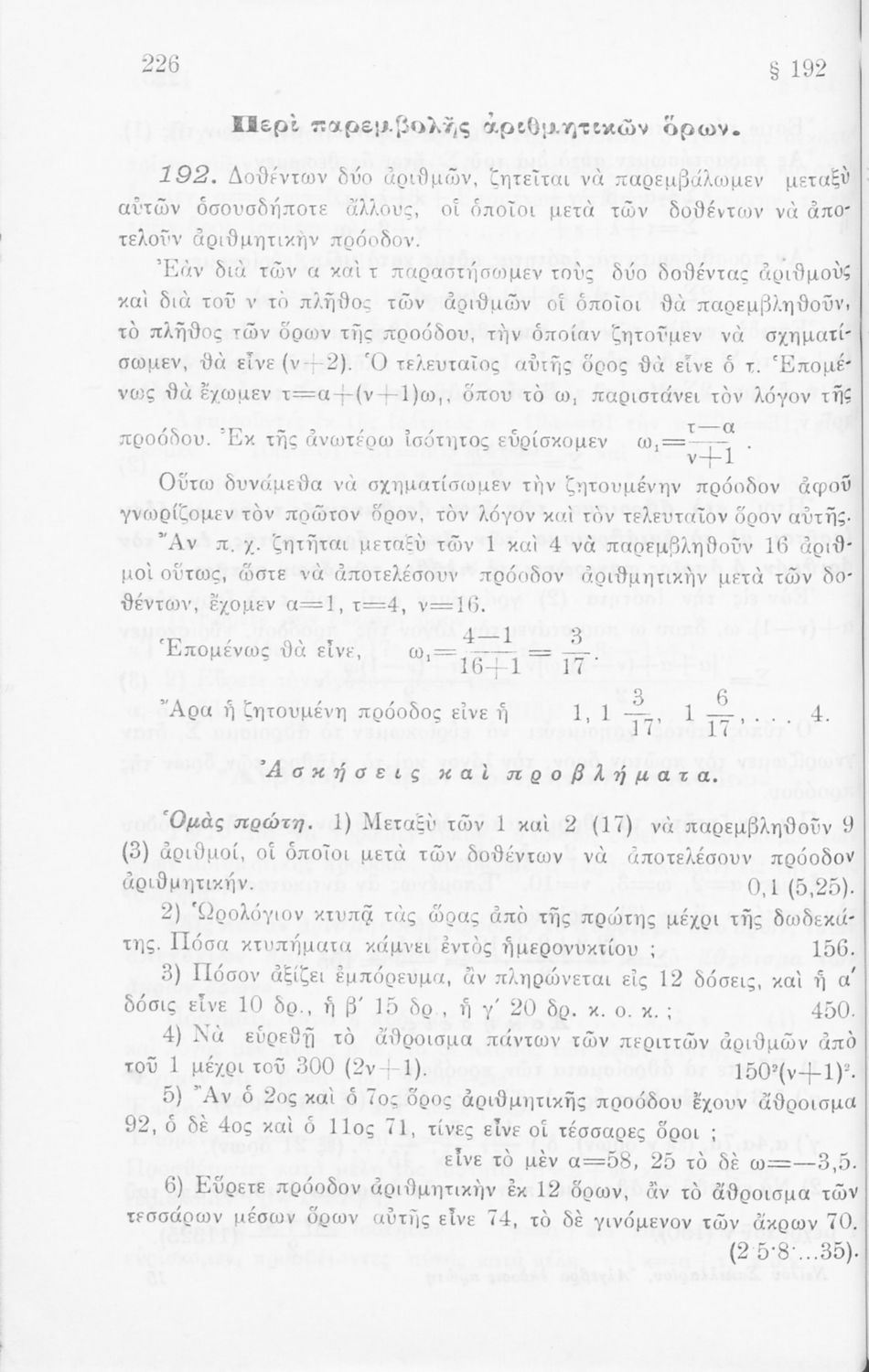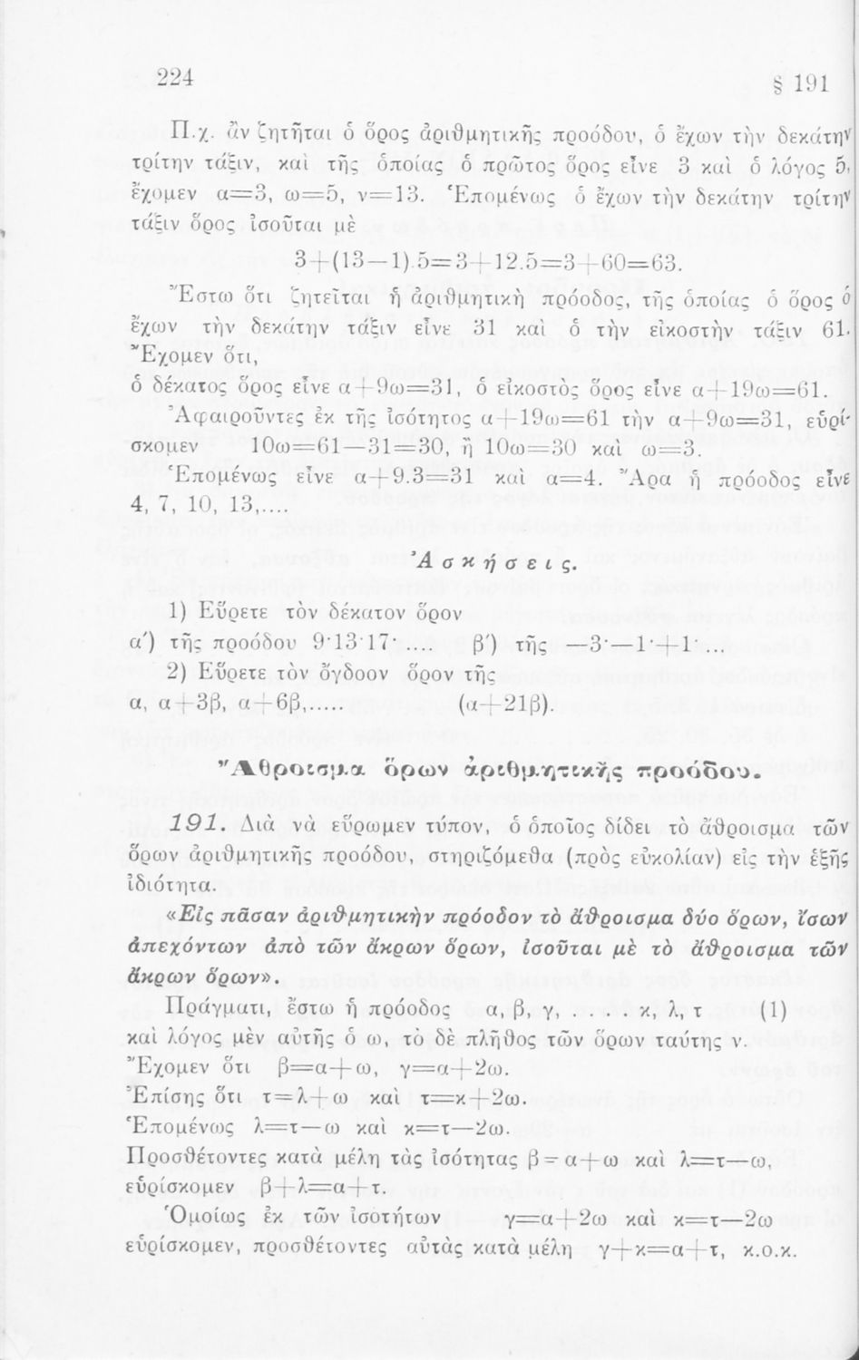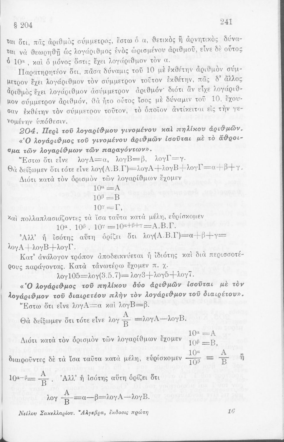Σχολικό εγχειρίδιο Άλγεβρας για τα Γυμνάσια χωρισμένο σε θεωρία και ασκήσεις. Ο συγγραφέας ήταν καθηγητής στο Πανεπιστήμιο Αθηνών.