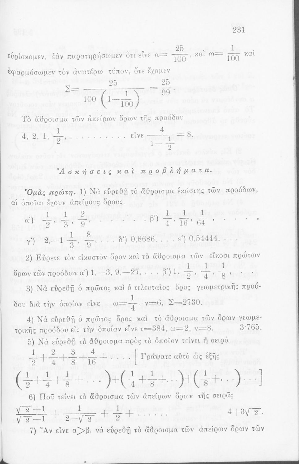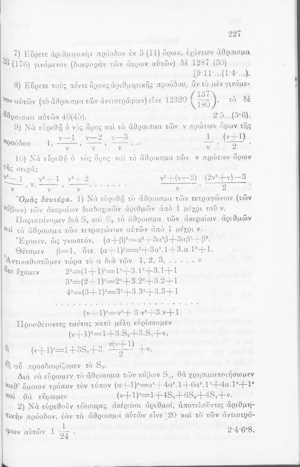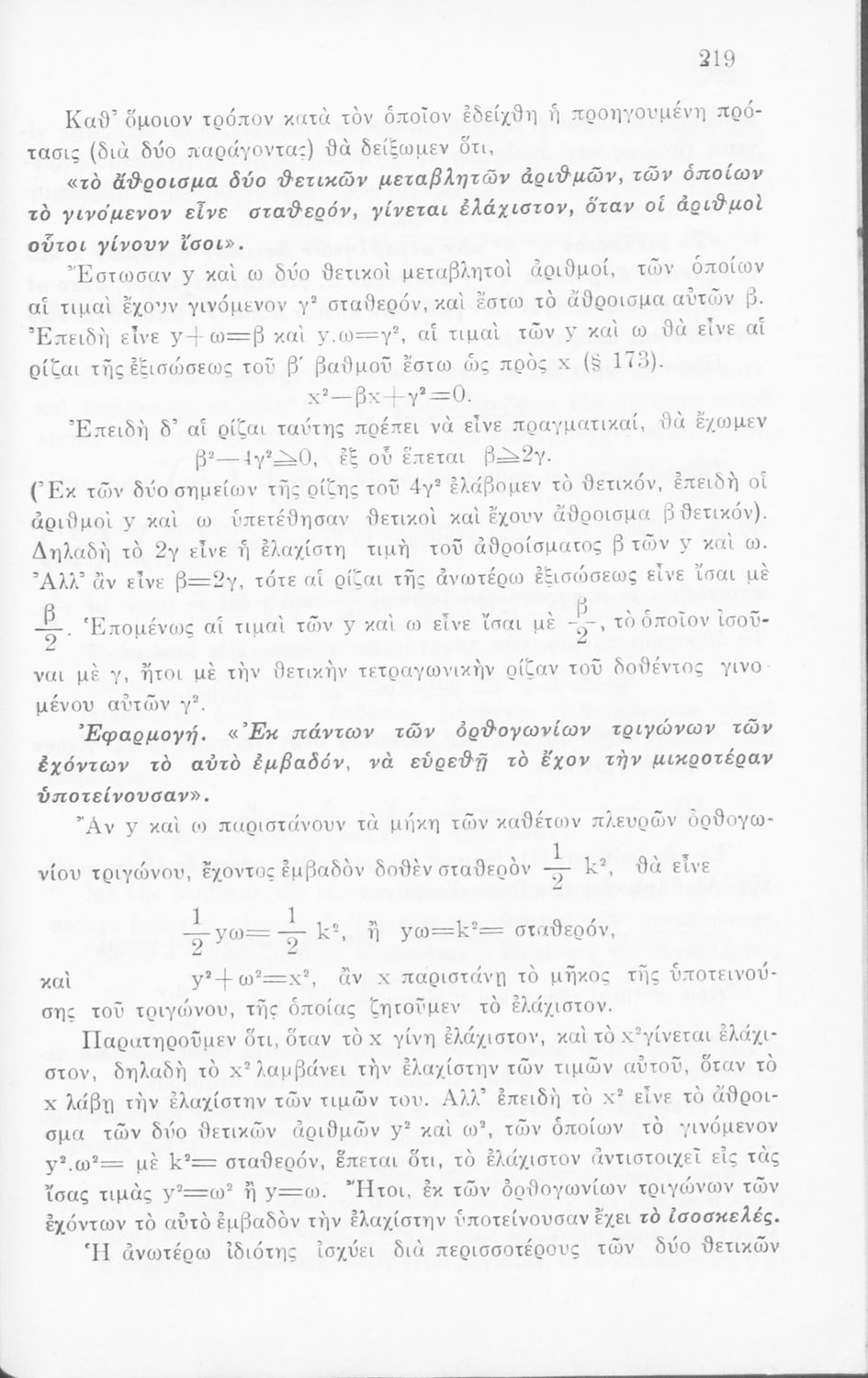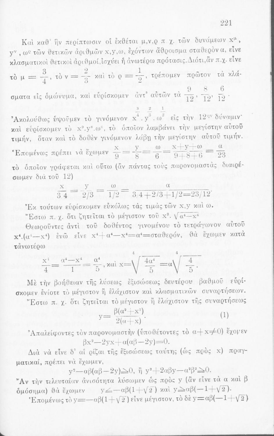 Σχολικό εγχειρίδιο Άλγεβρας για τα Γυμνάσια χωρισμένο σε θεωρία και ασκήσεις. Ο συγγραφέας ήταν καθηγητής στο Πανεπιστήμιο Αθηνών.