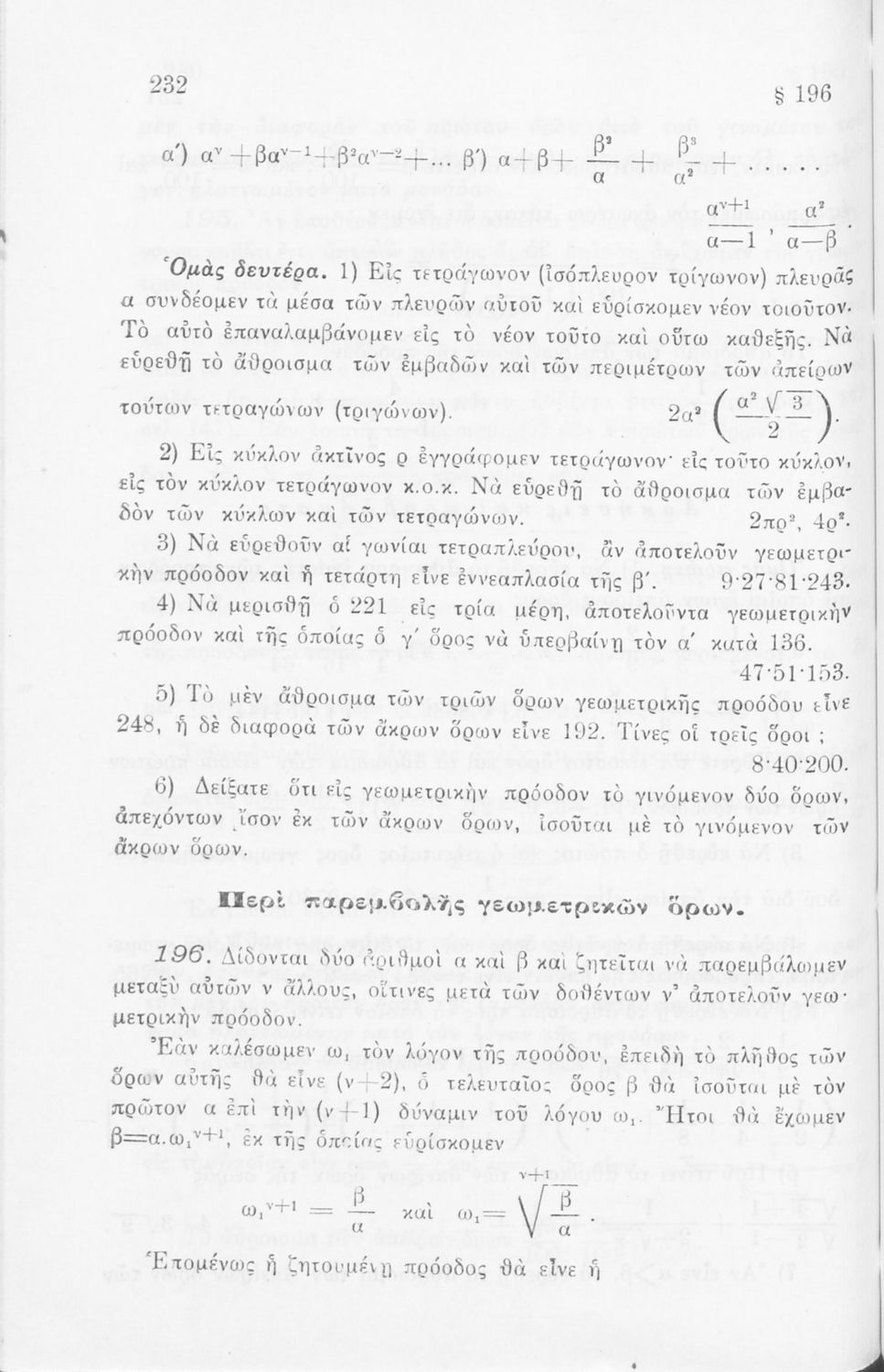 Παρουσίαση περιεχομένου: Σχολικό εγχειρίδιο Άλγεβρας για τα Γυμνάσια χωρισμένο σε θεωρία και ασκήσεις. Ο συγγραφέας ήταν καθηγητής στο Πανεπιστήμιο Αθηνών.