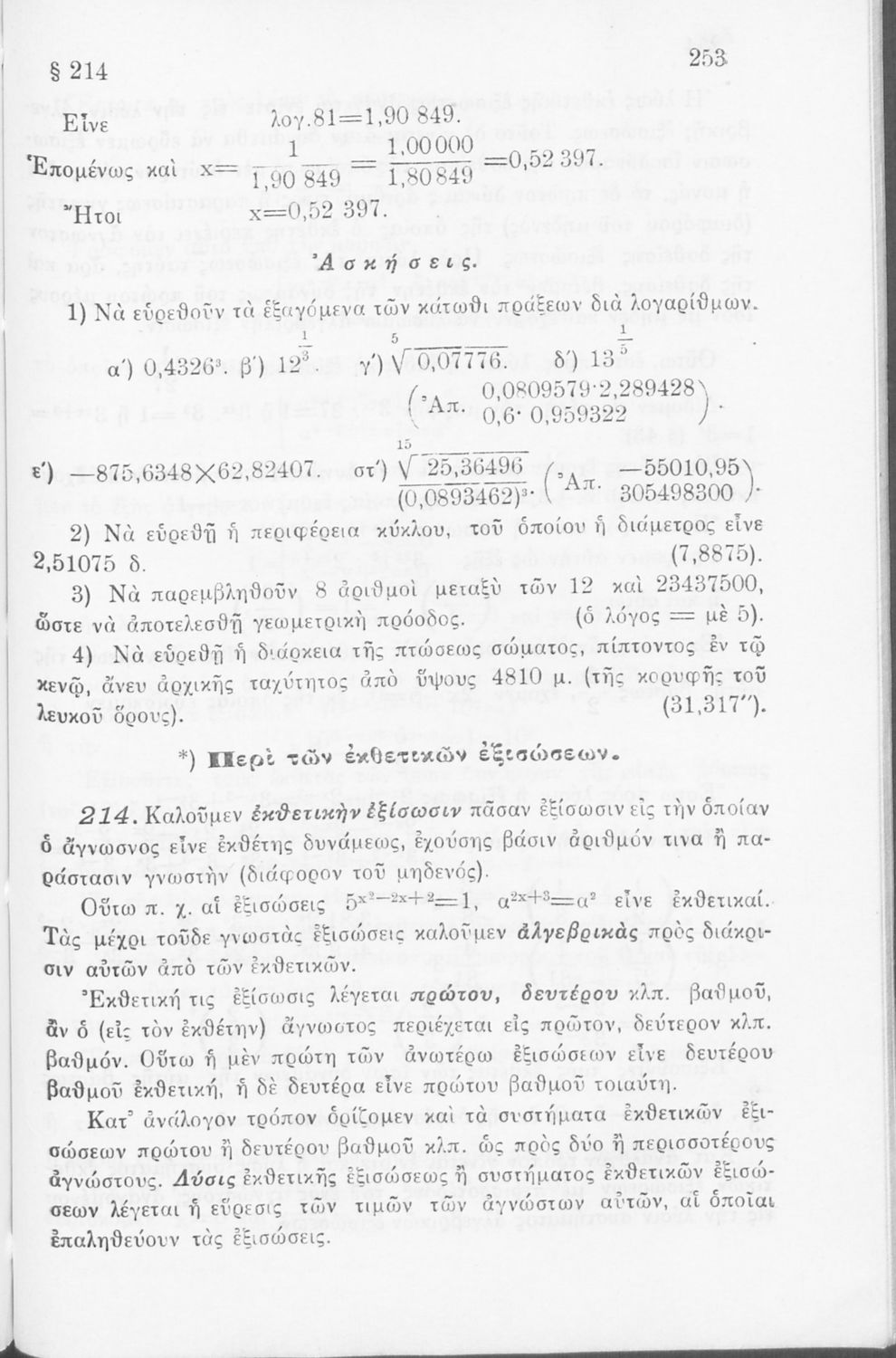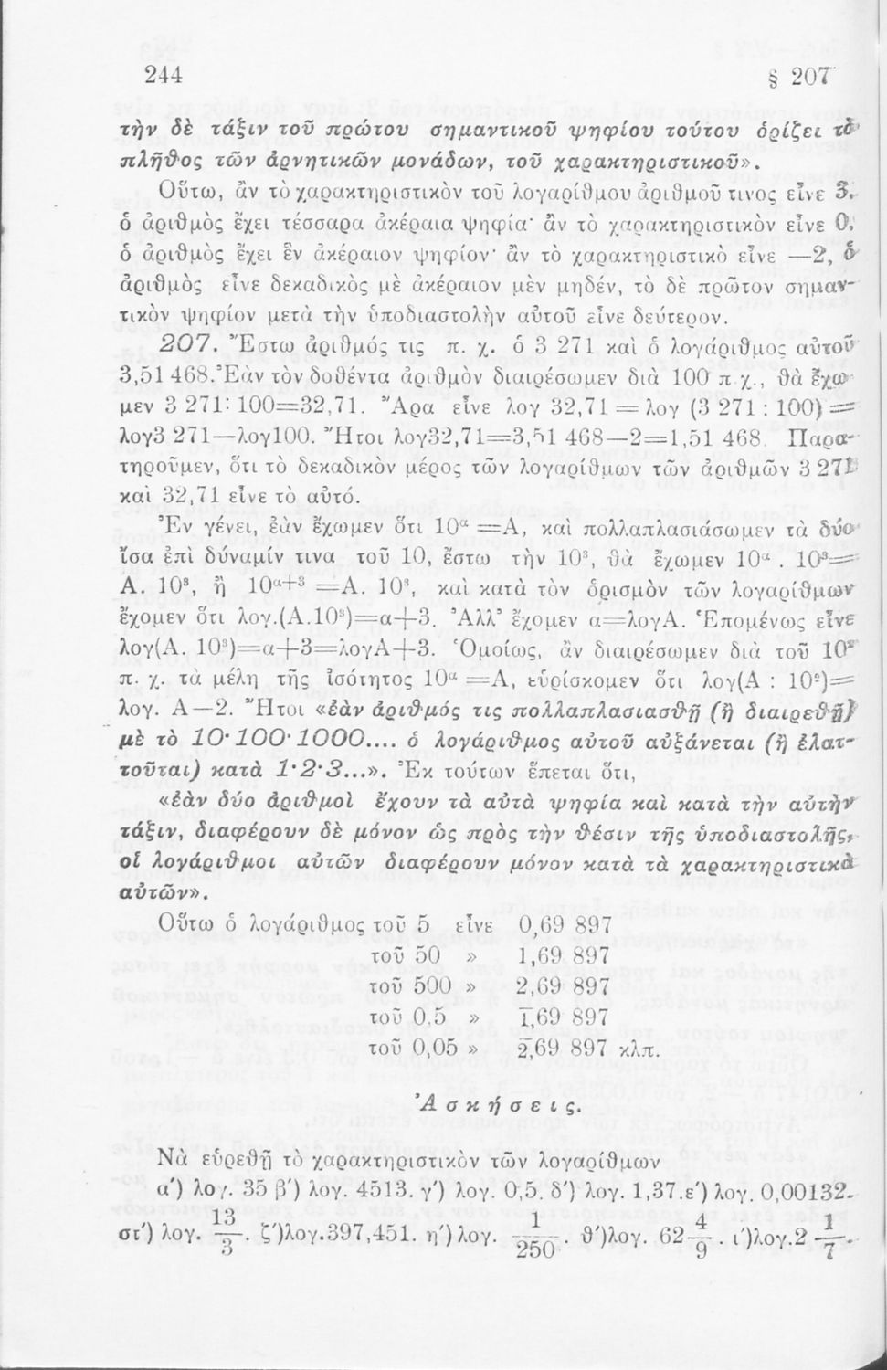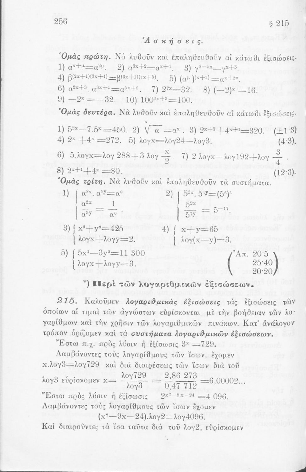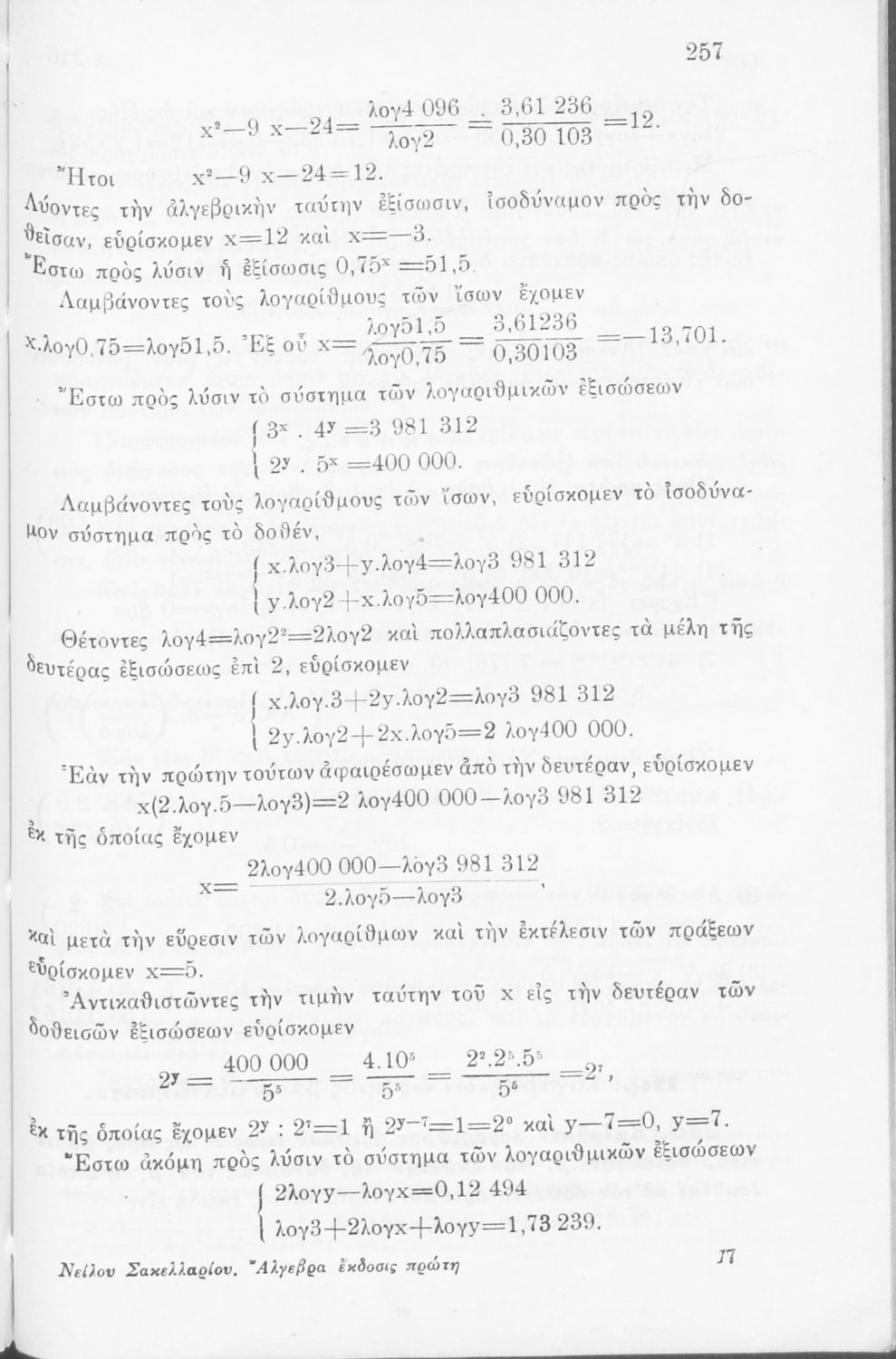 Σχολικό εγχειρίδιο Άλγεβρας για τα Γυμνάσια χωρισμένο σε θεωρία και ασκήσεις. Ο συγγραφέας ήταν καθηγητής στο Πανεπιστήμιο Αθηνών.