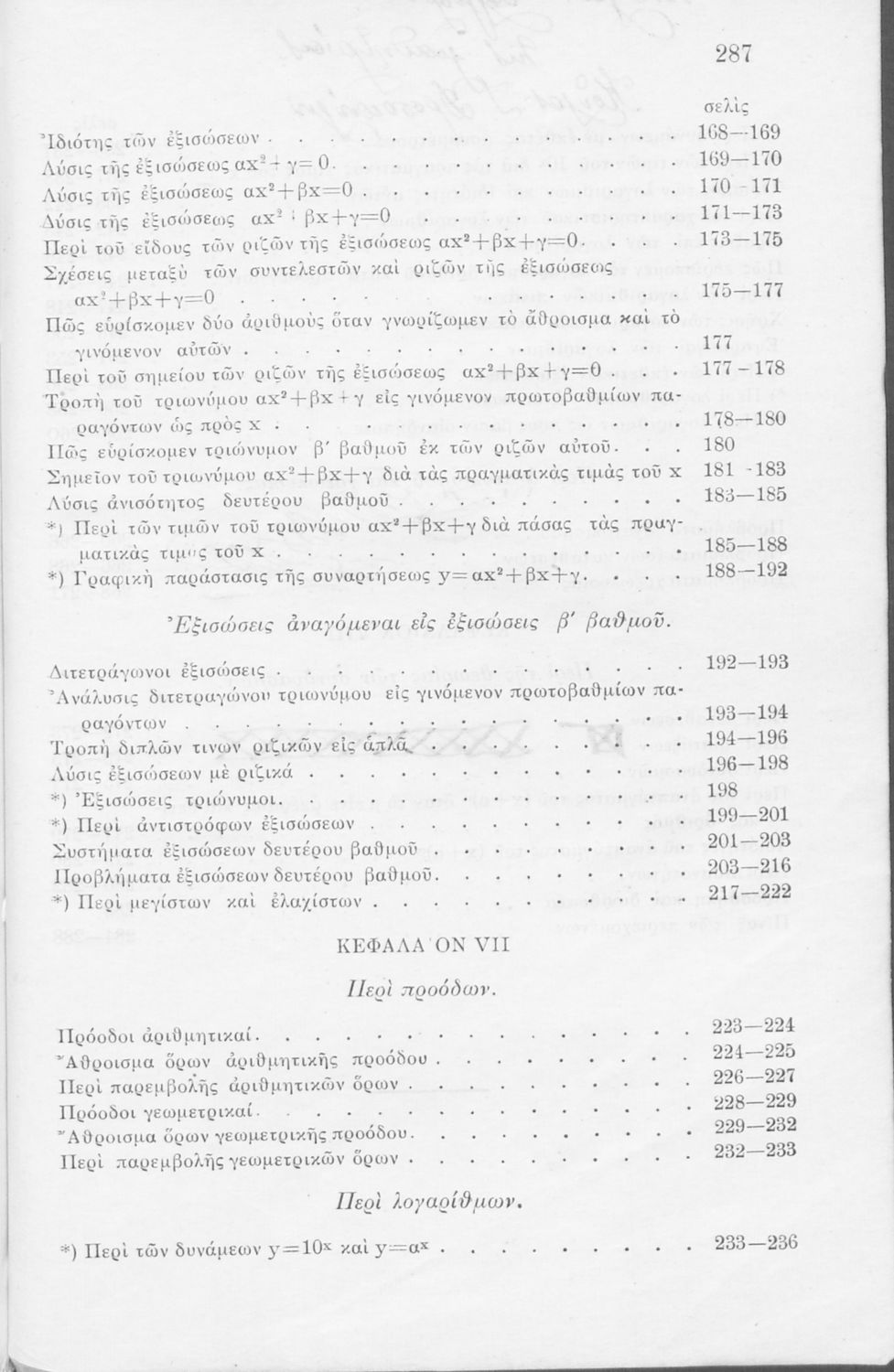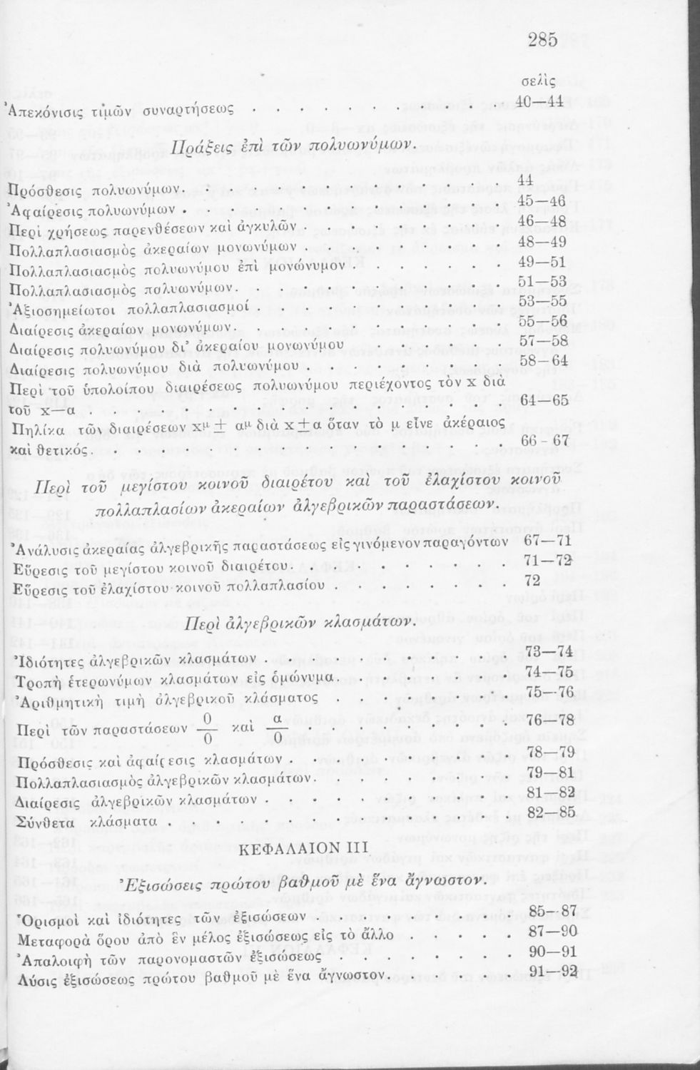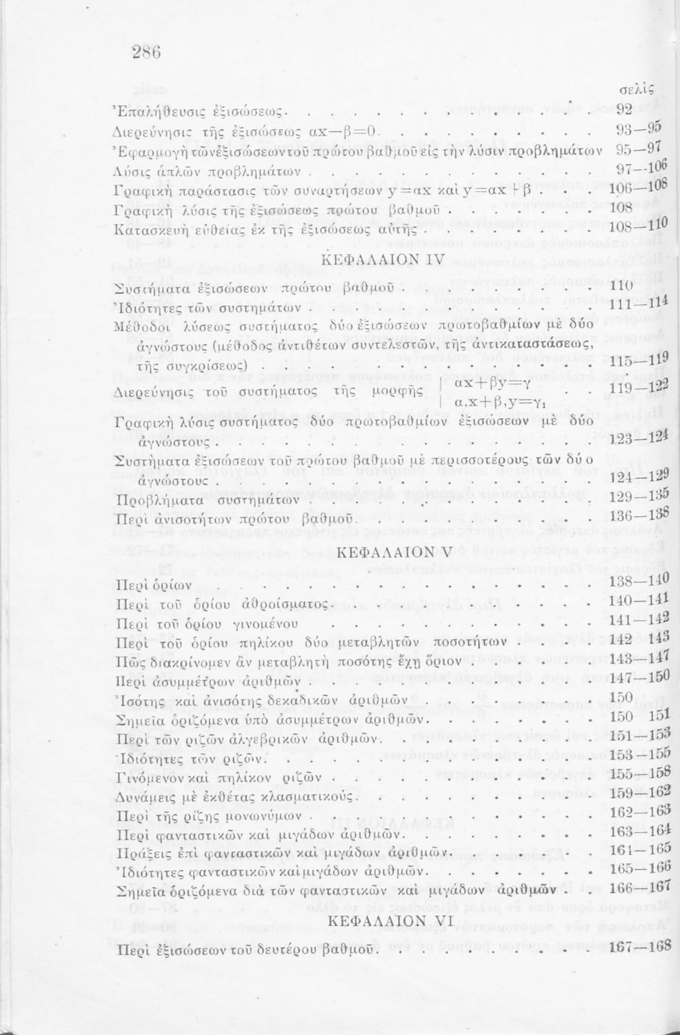 Σχολικό εγχειρίδιο Άλγεβρας για τα Γυμνάσια χωρισμένο σε θεωρία και ασκήσεις. Ο συγγραφέας ήταν καθηγητής στο Πανεπιστήμιο Αθηνών.