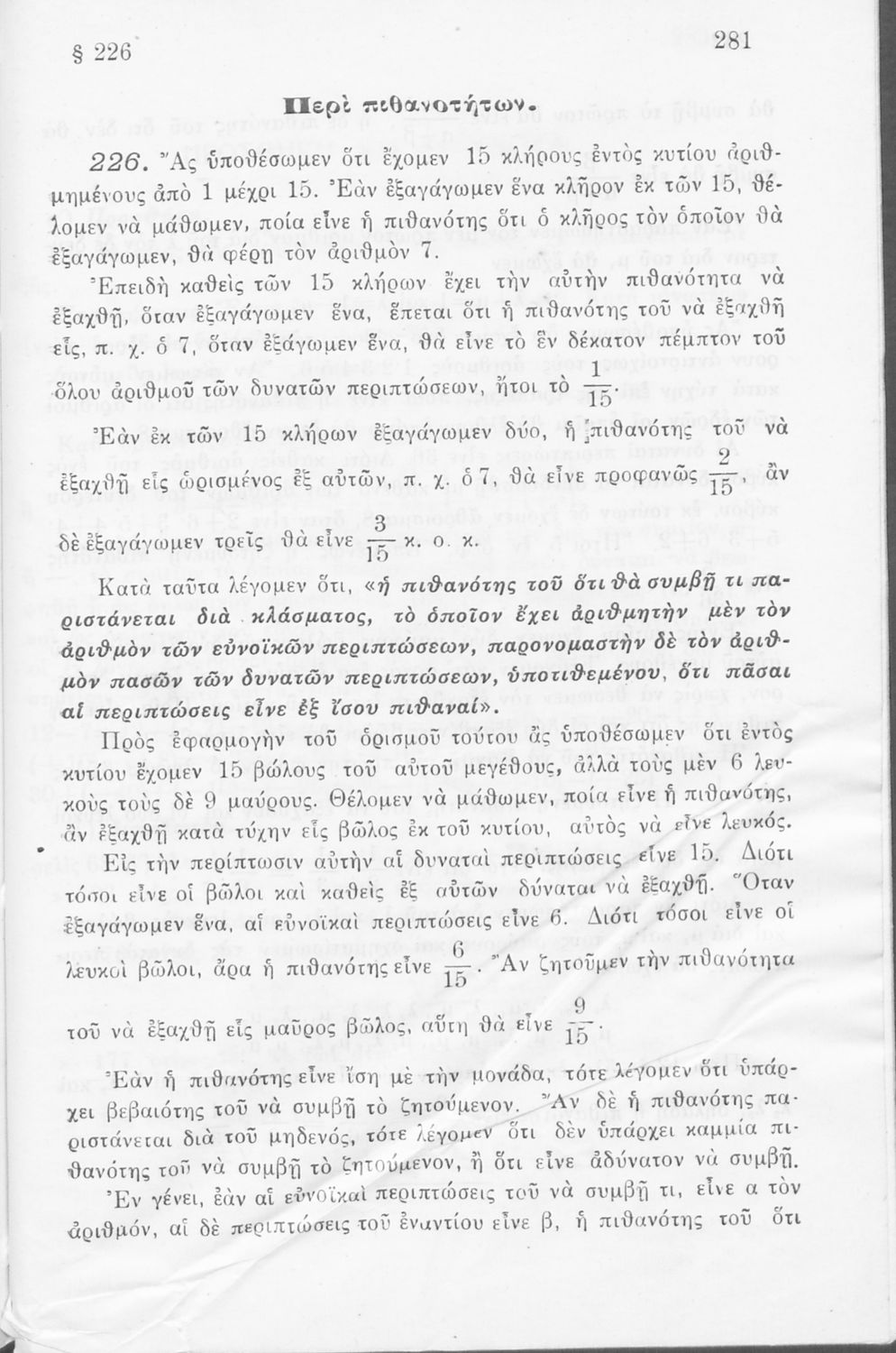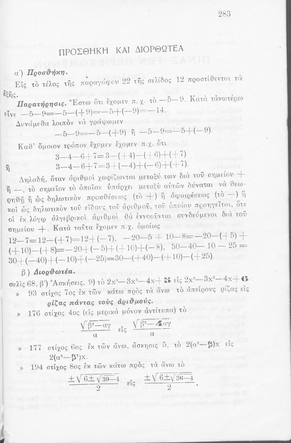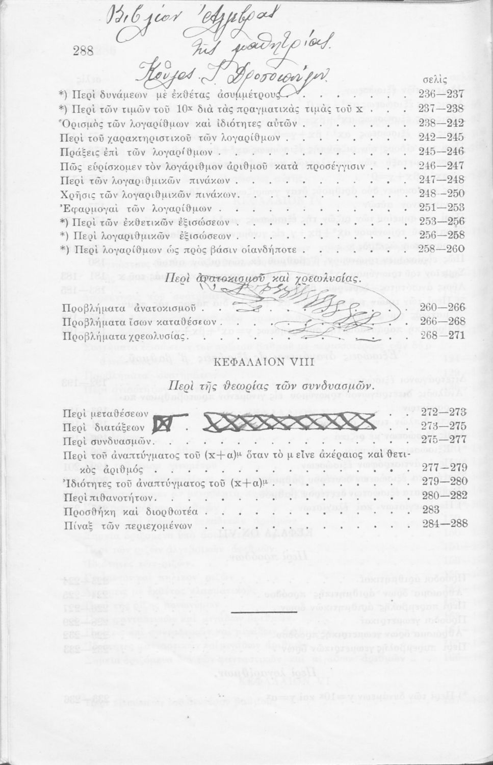 Σχολικό εγχειρίδιο Άλγεβρας για τα Γυμνάσια χωρισμένο σε θεωρία και ασκήσεις. Ο συγγραφέας ήταν καθηγητής στο Πανεπιστήμιο Αθηνών.
