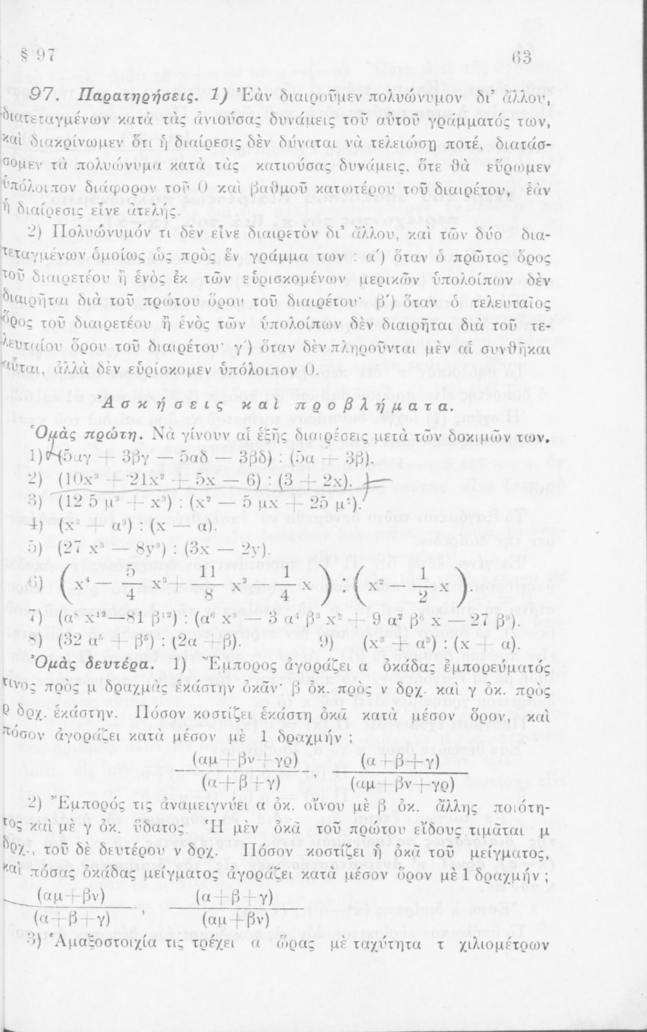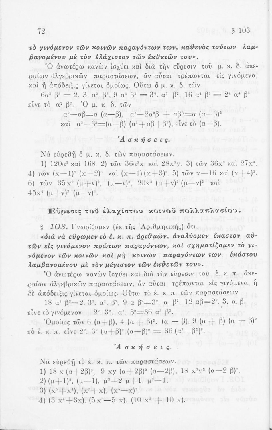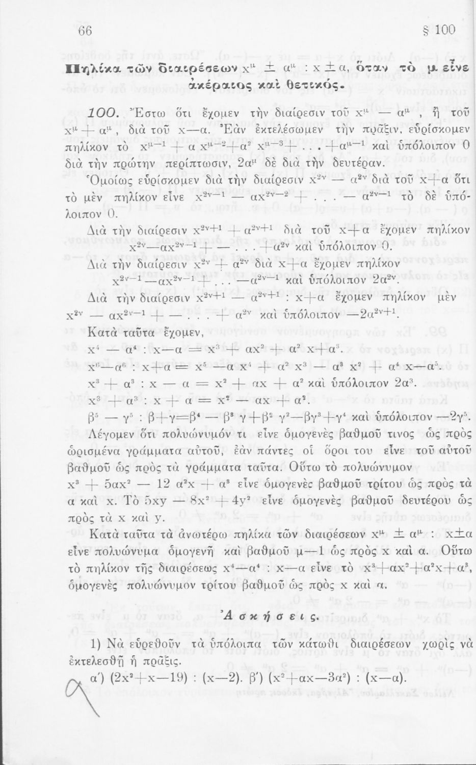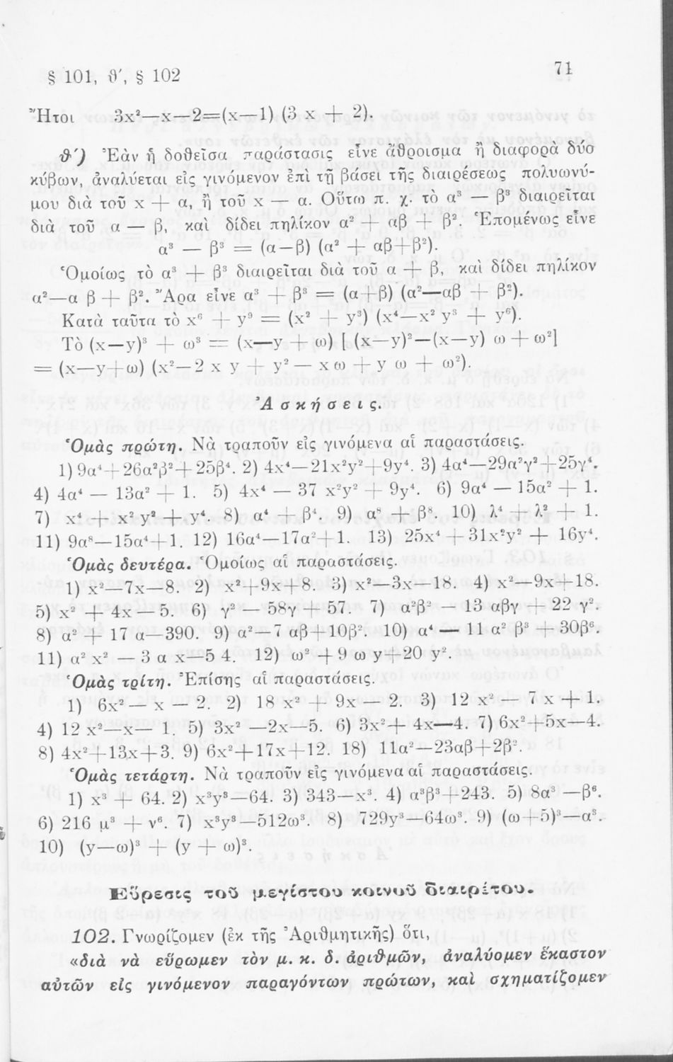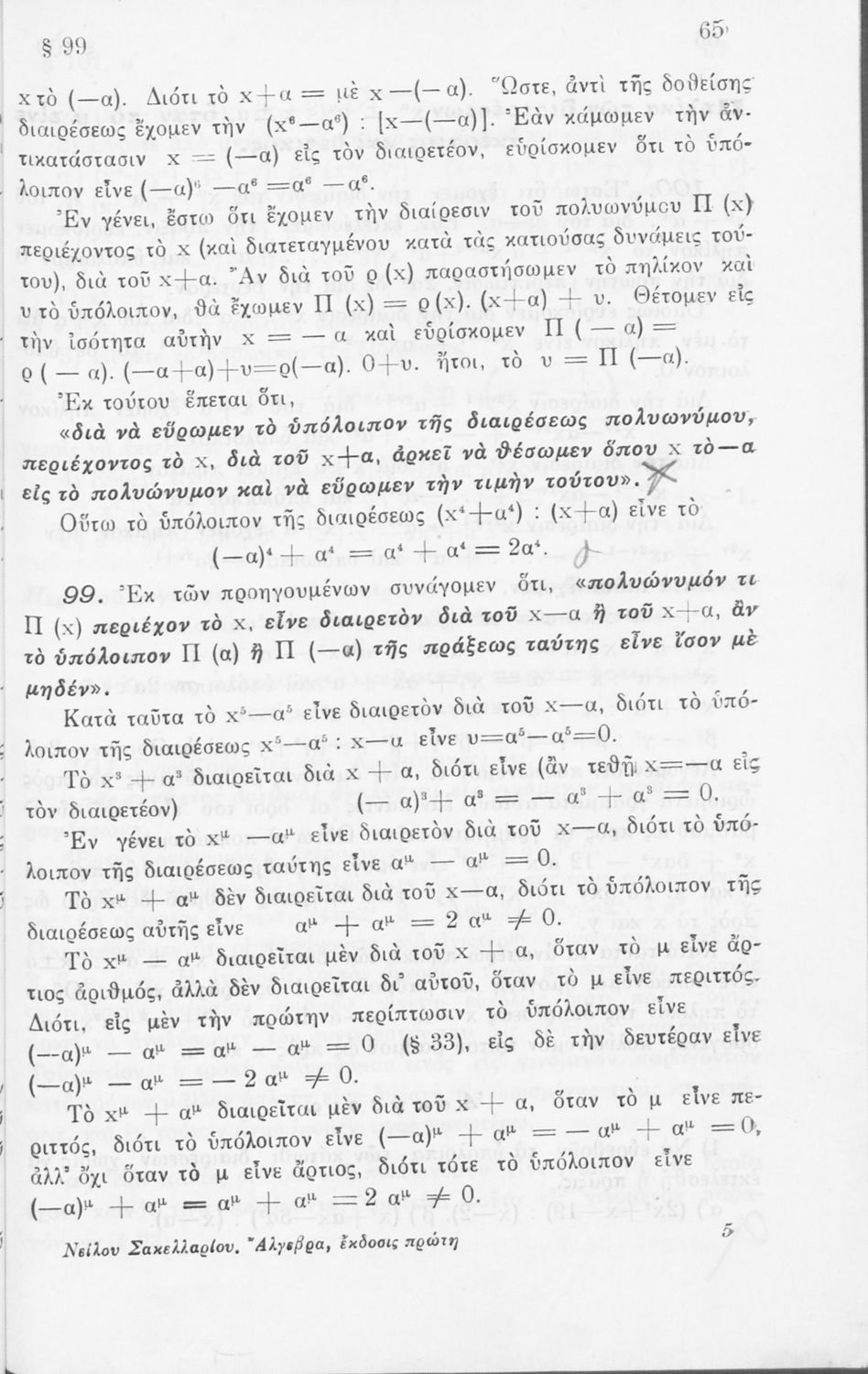 Σχολικό εγχειρίδιο Άλγεβρας για τα Γυμνάσια χωρισμένο σε θεωρία και ασκήσεις. Ο συγγραφέας ήταν καθηγητής στο Πανεπιστήμιο Αθηνών.