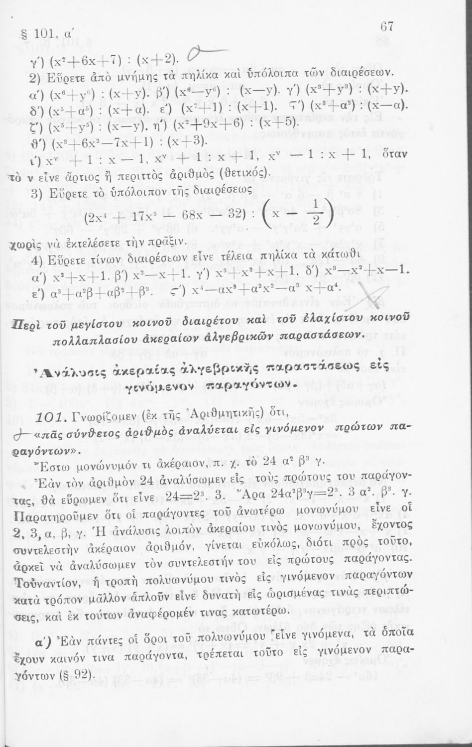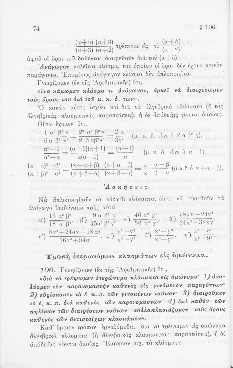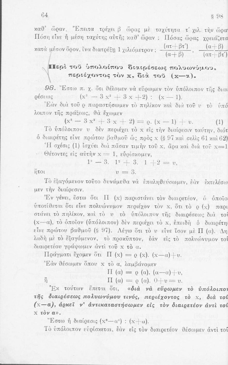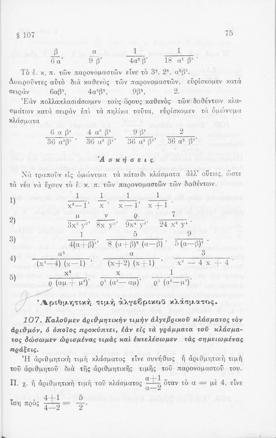 Σχολικό εγχειρίδιο Άλγεβρας για τα Γυμνάσια χωρισμένο σε θεωρία και ασκήσεις. Ο συγγραφέας ήταν καθηγητής στο Πανεπιστήμιο Αθηνών.