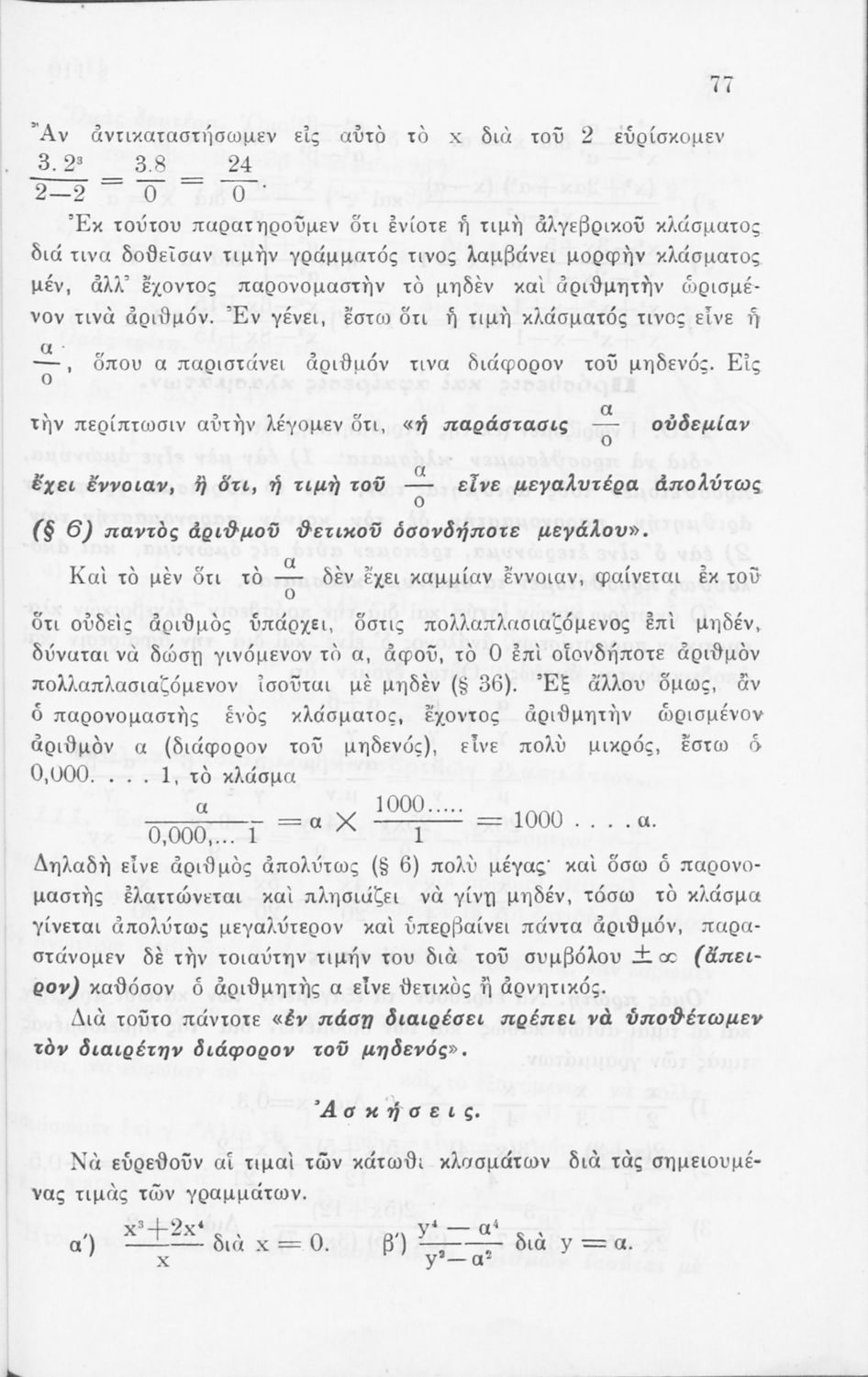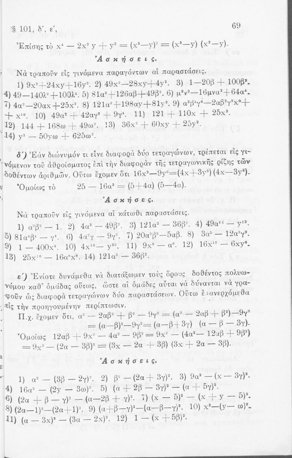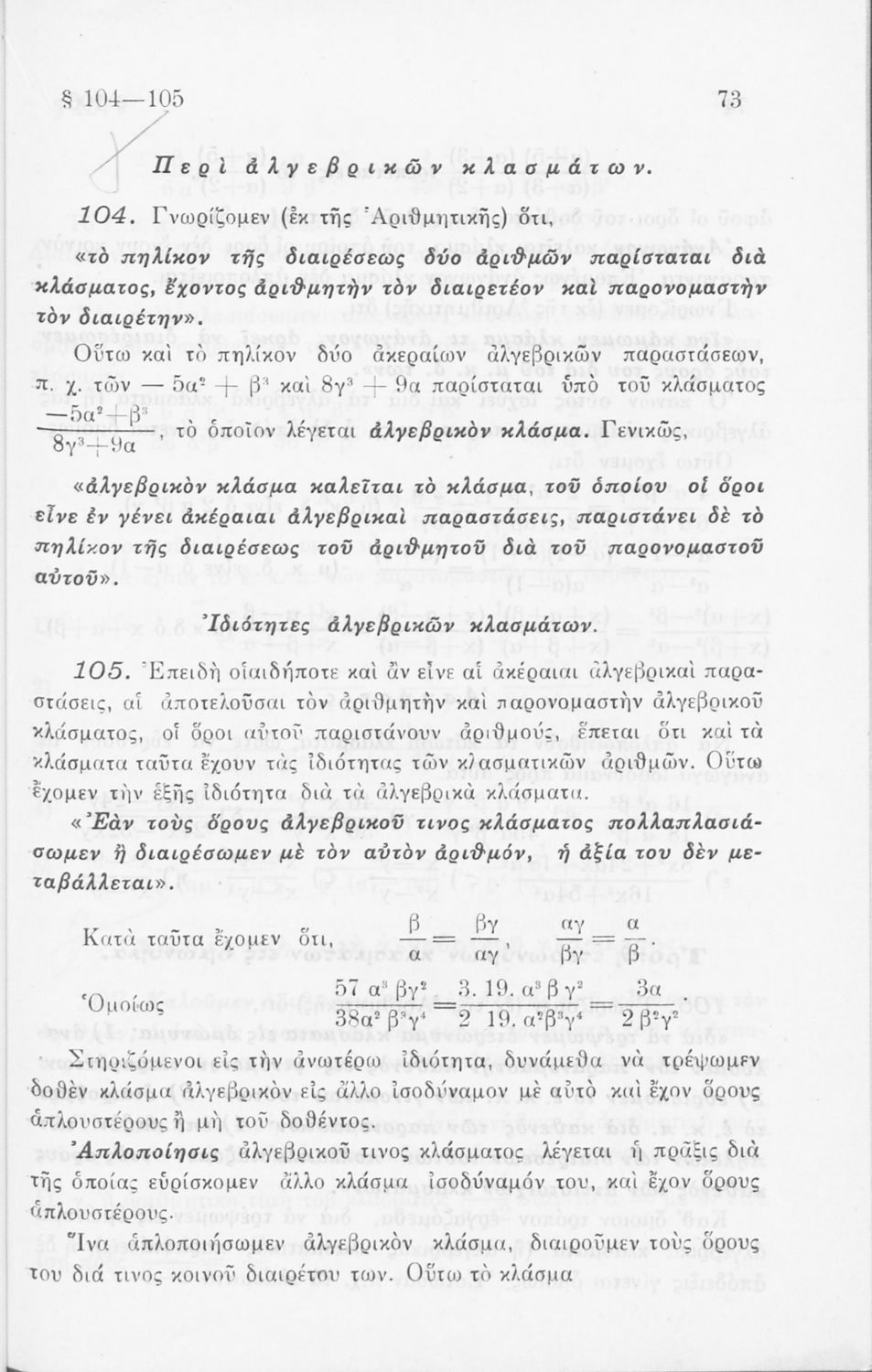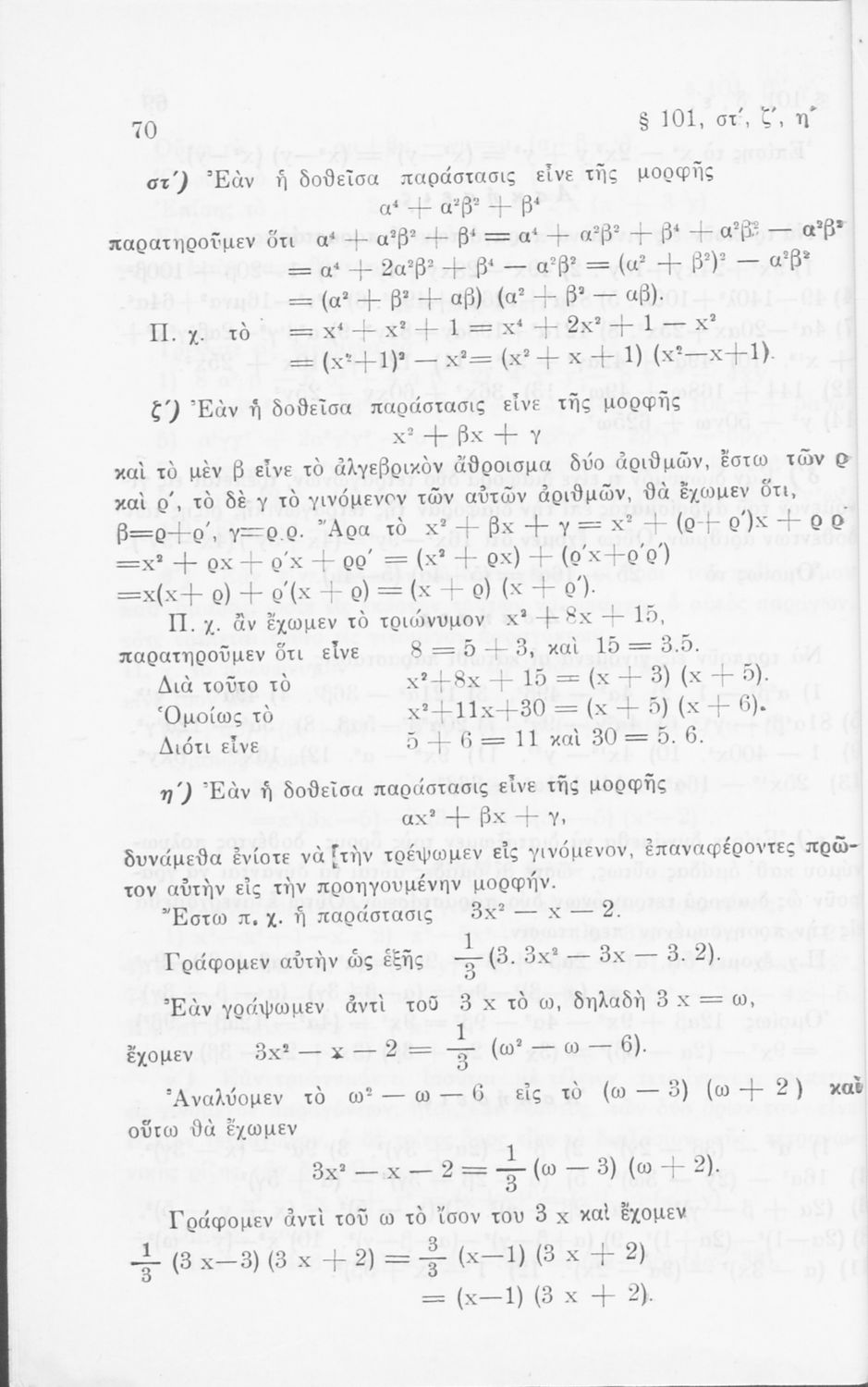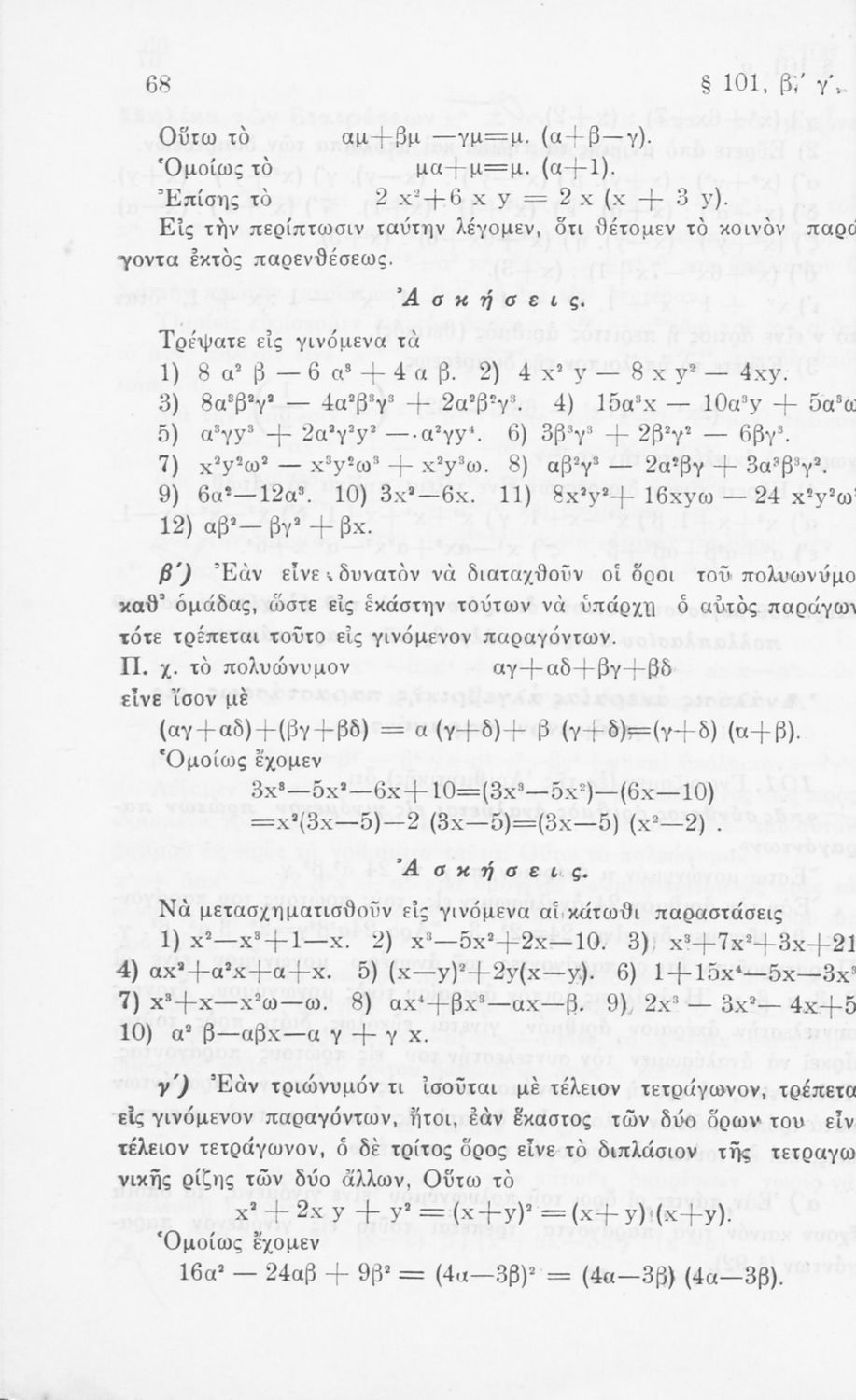 Σχολικό εγχειρίδιο Άλγεβρας για τα Γυμνάσια χωρισμένο σε θεωρία και ασκήσεις. Ο συγγραφέας ήταν καθηγητής στο Πανεπιστήμιο Αθηνών.