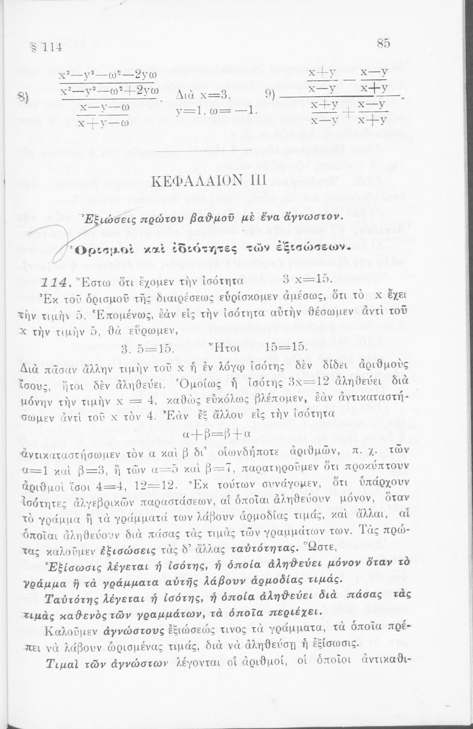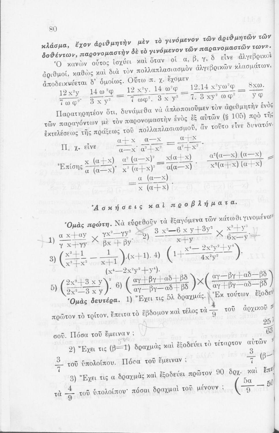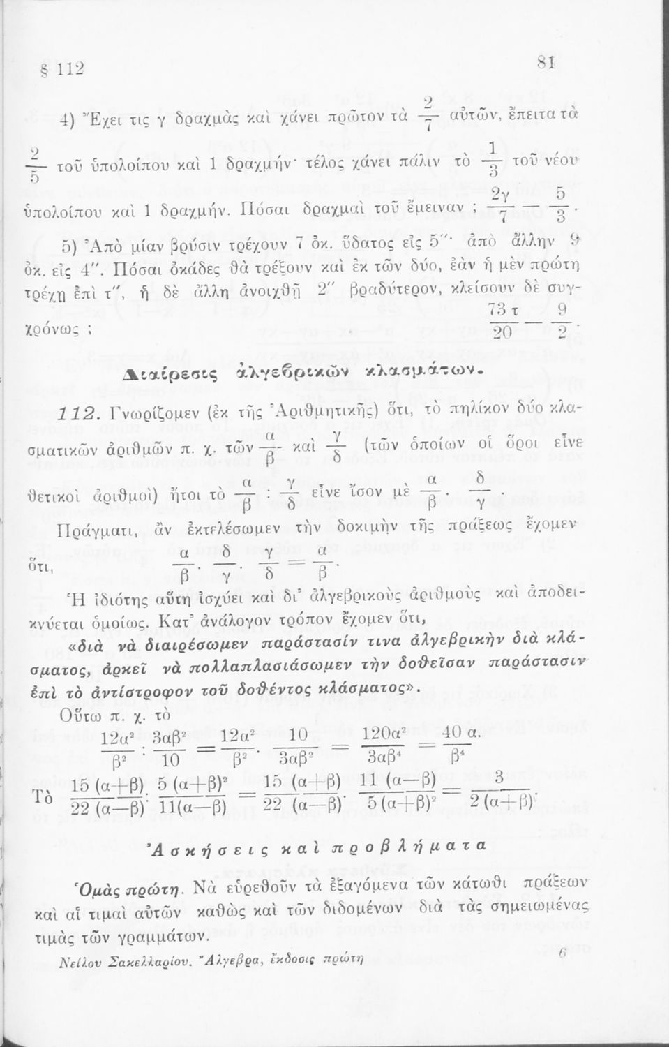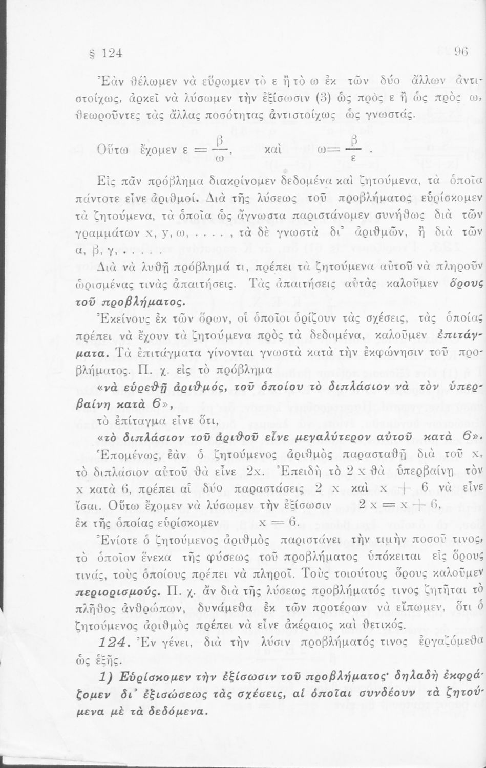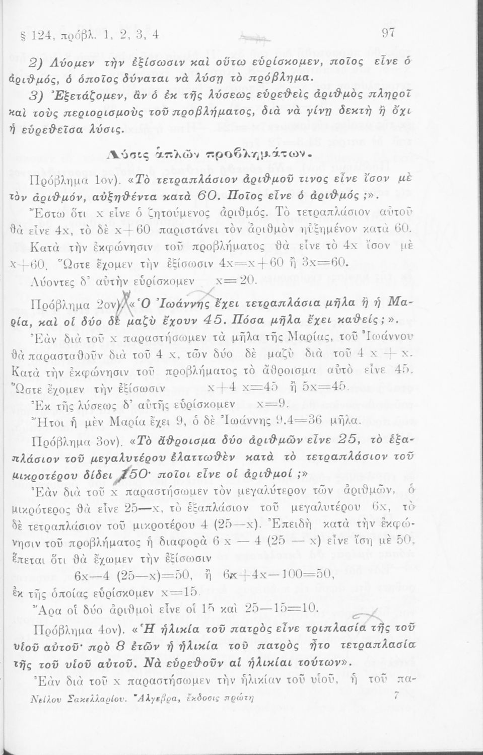 Σχολικό εγχειρίδιο Άλγεβρας για τα Γυμνάσια χωρισμένο σε θεωρία και ασκήσεις. Ο συγγραφέας ήταν καθηγητής στο Πανεπιστήμιο Αθηνών.