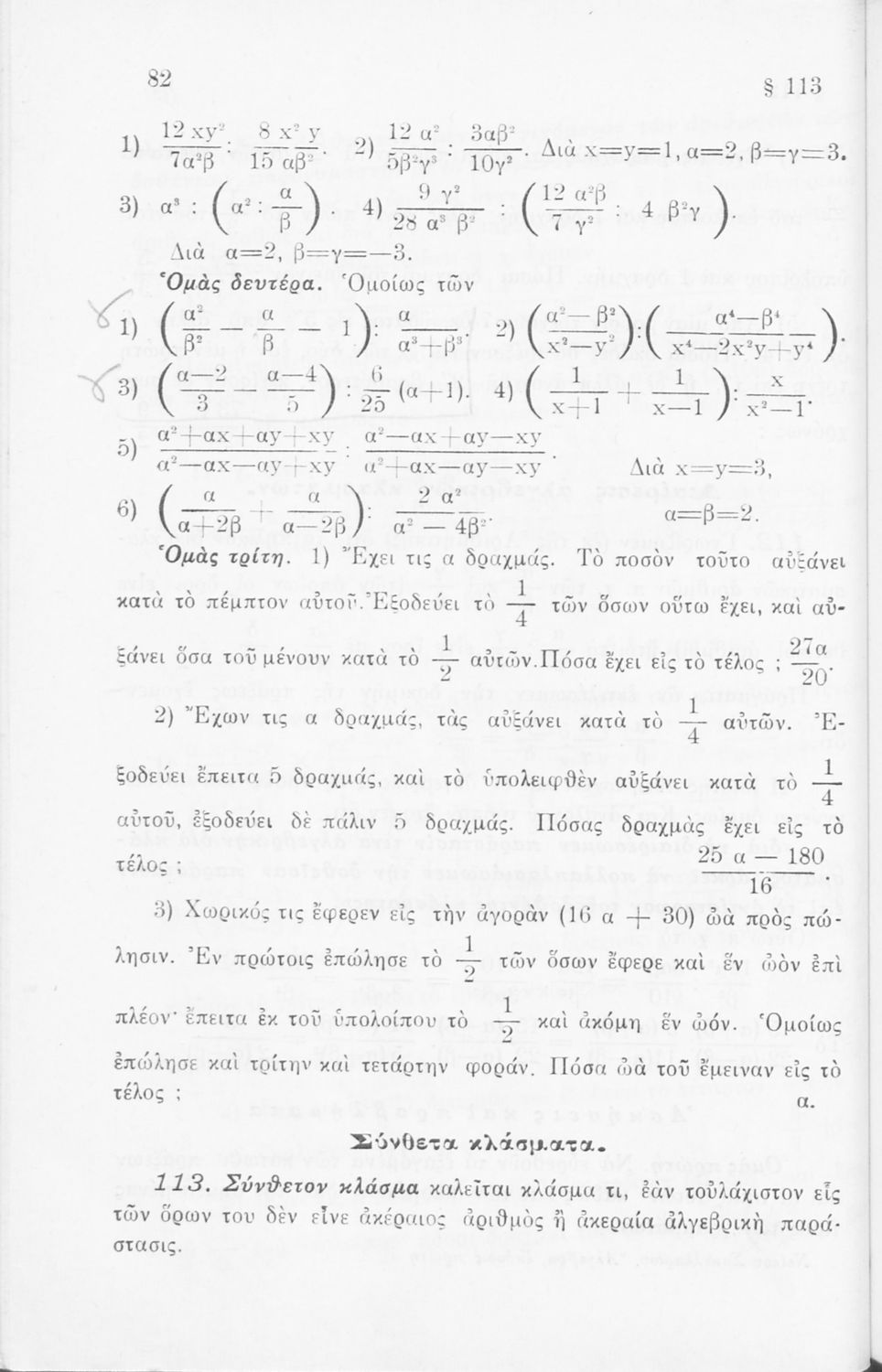 Παρουσίαση περιεχομένου: Σχολικό εγχειρίδιο Άλγεβρας για τα Γυμνάσια χωρισμένο σε θεωρία και ασκήσεις. Ο συγγραφέας ήταν καθηγητής στο Πανεπιστήμιο Αθηνών.