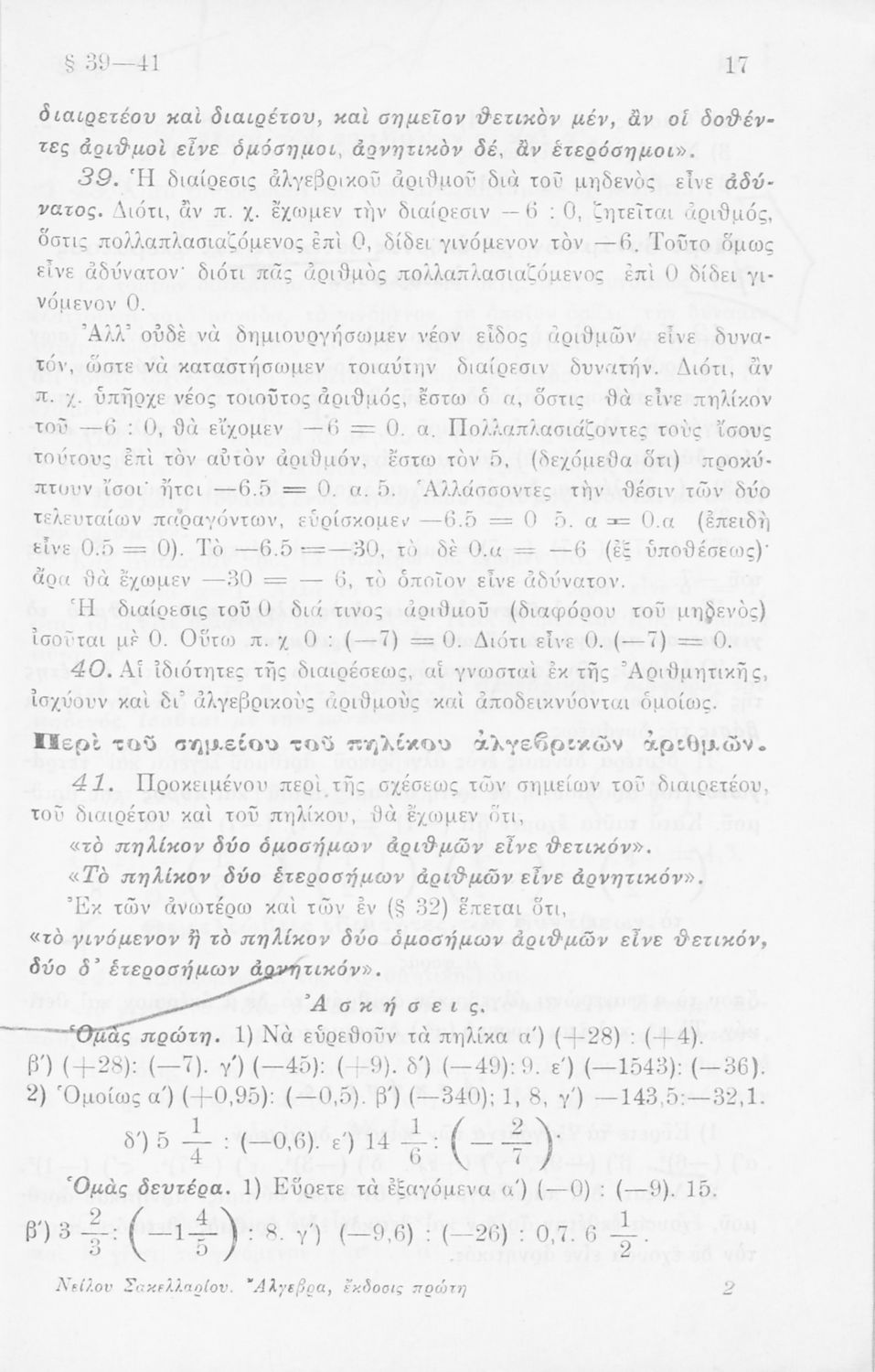 Σχολικό εγχειρίδιο Άλγεβρας για τα Γυμνάσια χωρισμένο σε θεωρία και ασκήσεις. Ο συγγραφέας ήταν καθηγητής στο Πανεπιστήμιο Αθηνών.