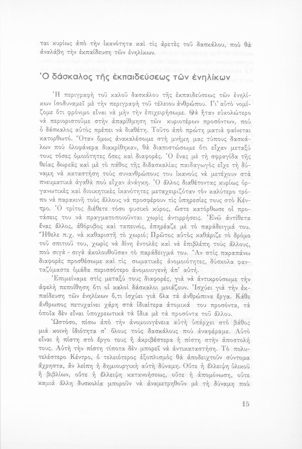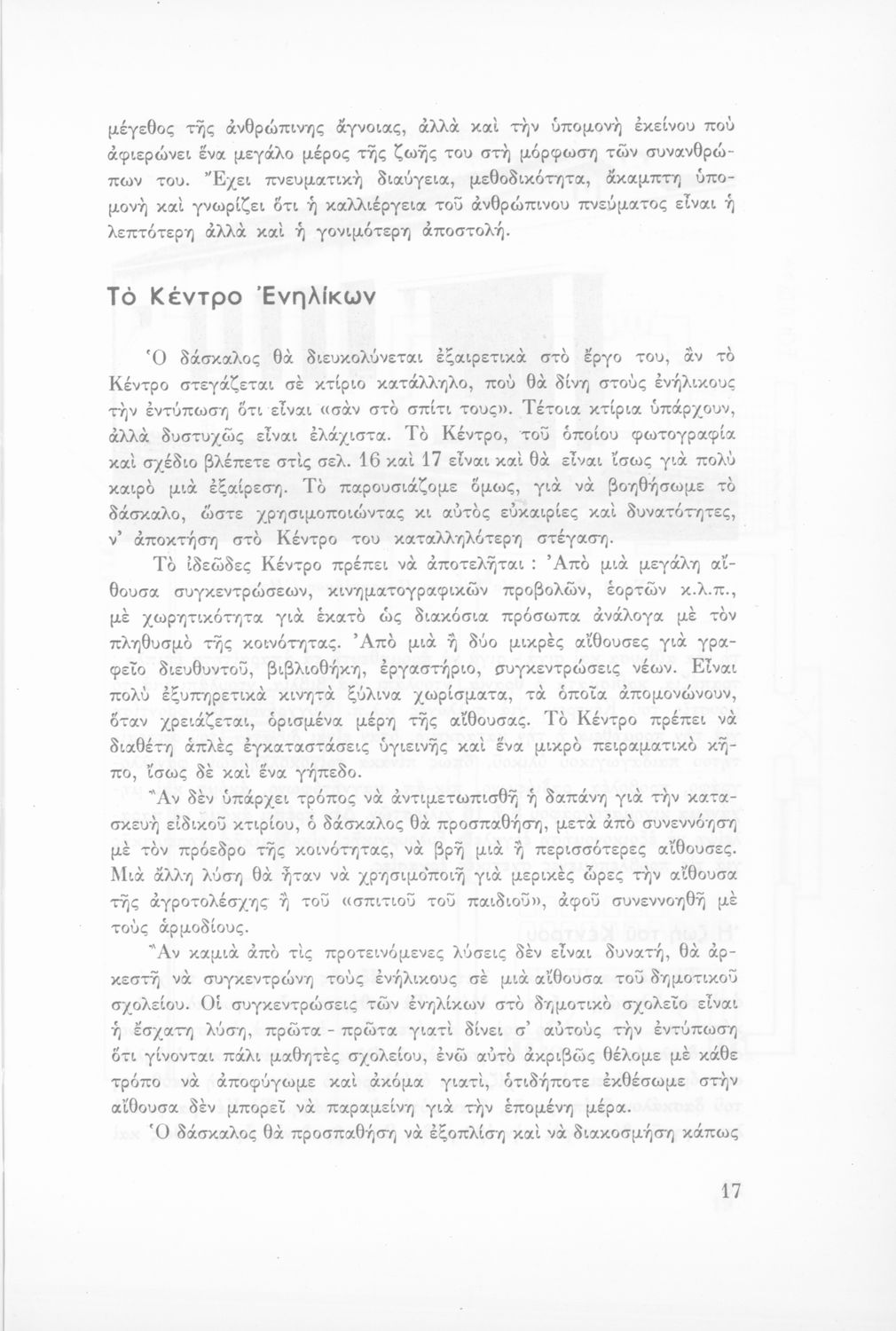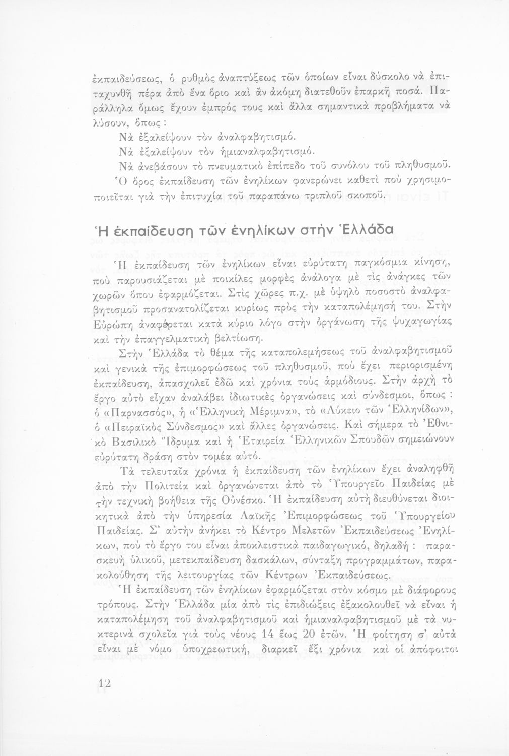 Παρουσίαση περιεχομένου: Παιδαγωγικό βοήθημα για την εκπαίδευση των ενηλίκων. Εκδόθηκε από το Εκπαιδευτικό Ινστιτούτο για τη σειρά της Επιστημονικής Βιβλιοθήκης. Περιλαμβάνει χρήσιμες παρατηρήσεις και συμβουλές για την εκπαιδευτική διαδικασία.