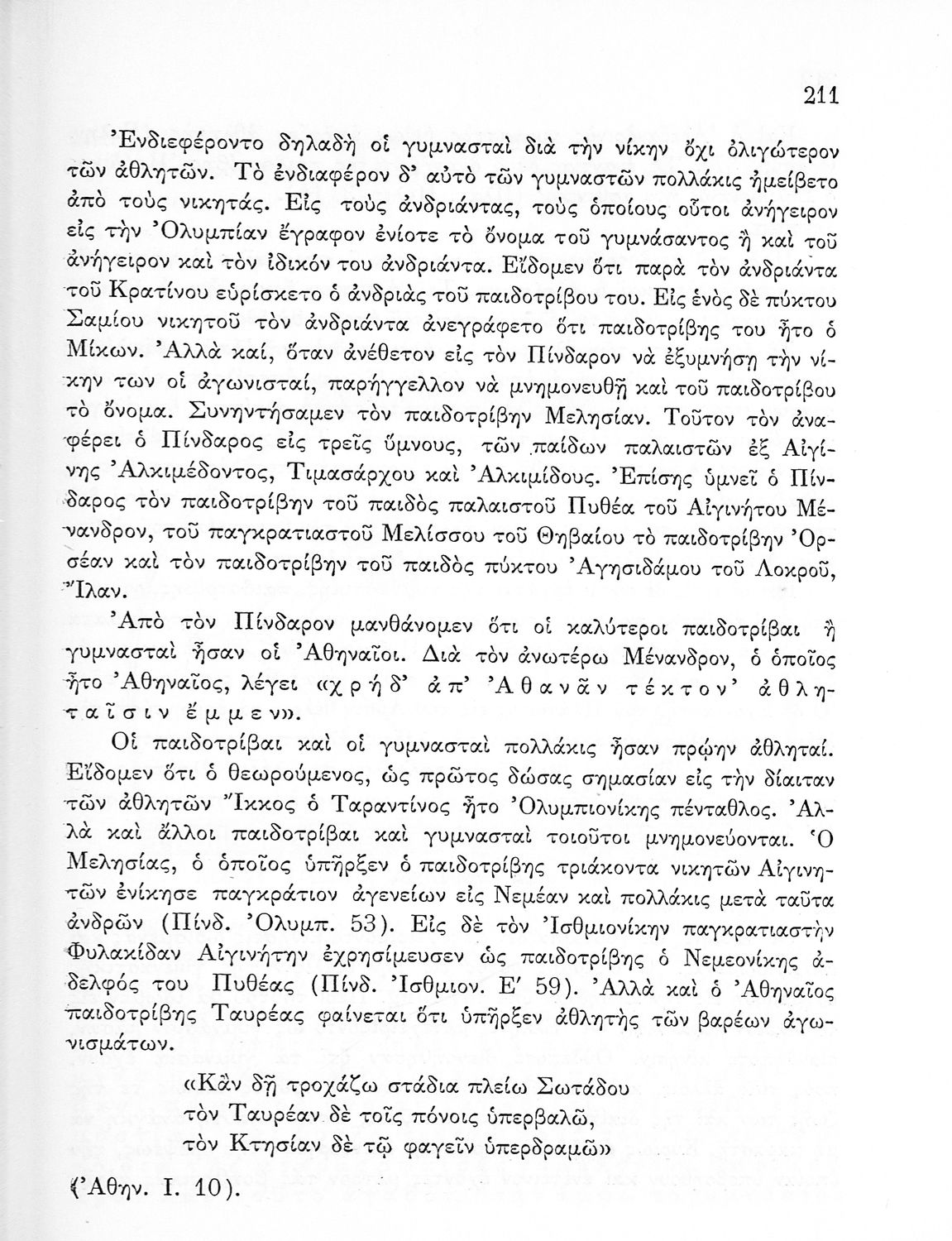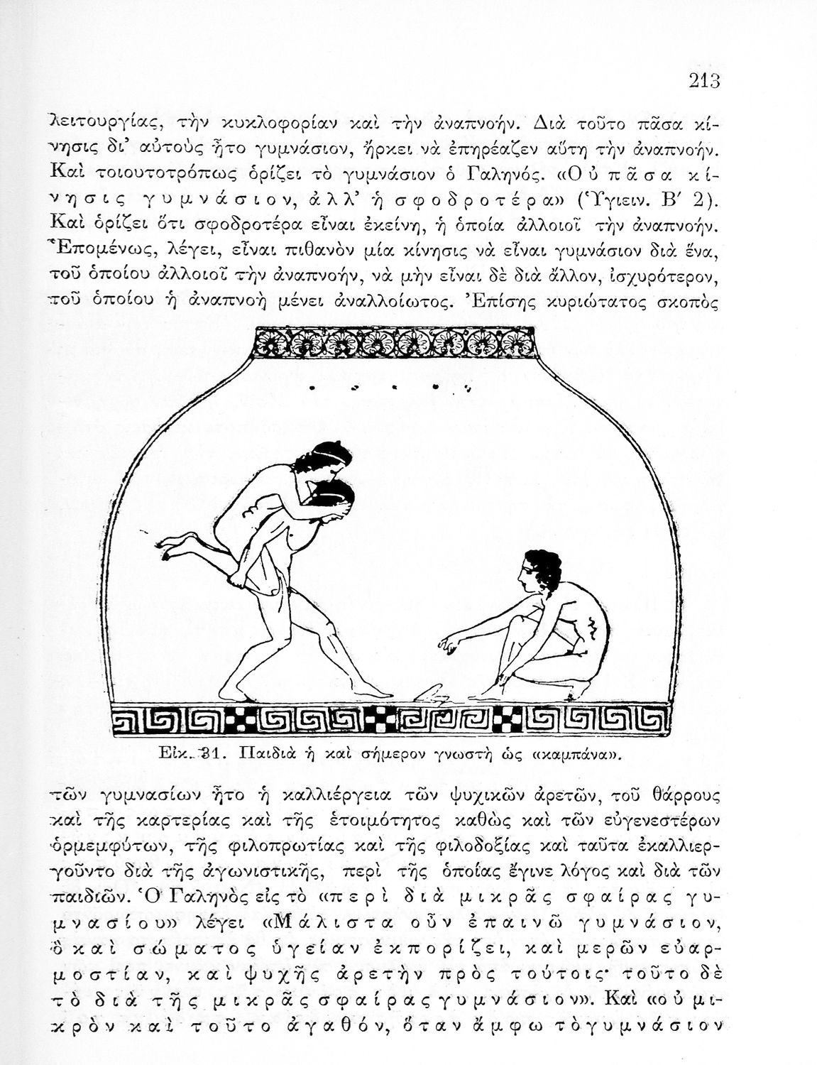Παρουσίαση περιεχομένου: Παιδαγωγικό βοήθημα που αποσκοπεί στην επιμόρφωση των "μελλοντικών γυμναστών και γυμναστριών" και να παρουσιάσει την ιστορική εξέλιξη της ελληνικής παράδοσης στην γυμναστική. Ο συγγραφέας ήταν πρώην γενικός επιθεωρητής της γυμναστικής.