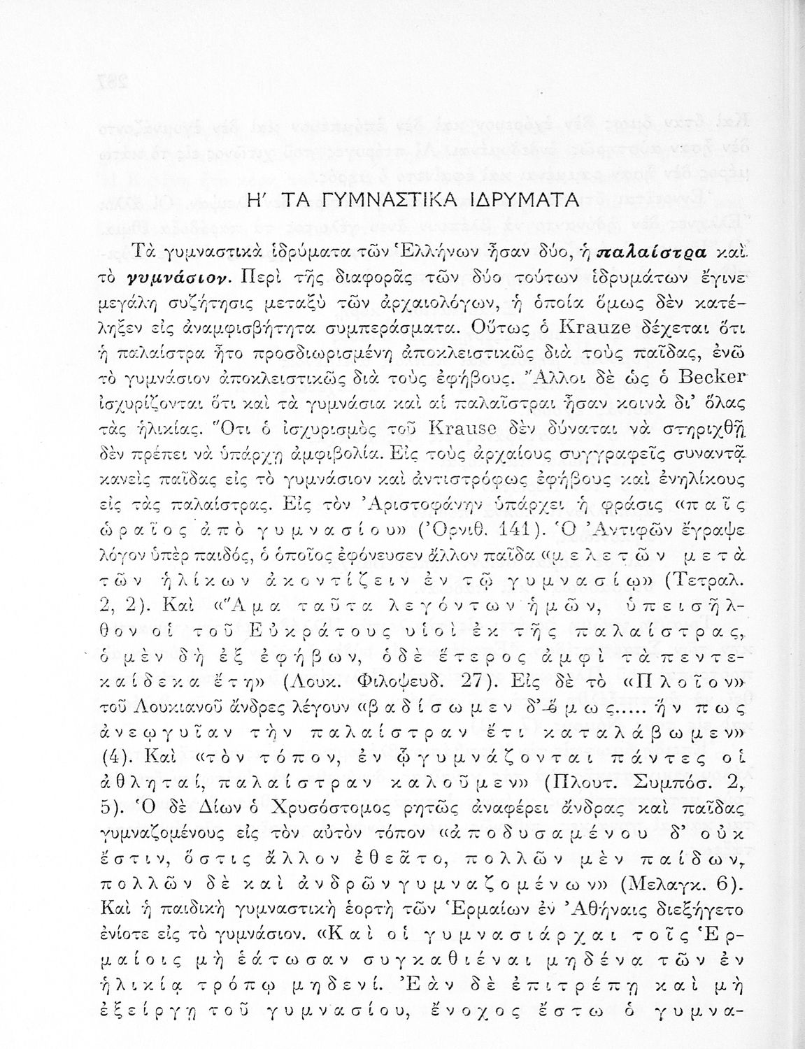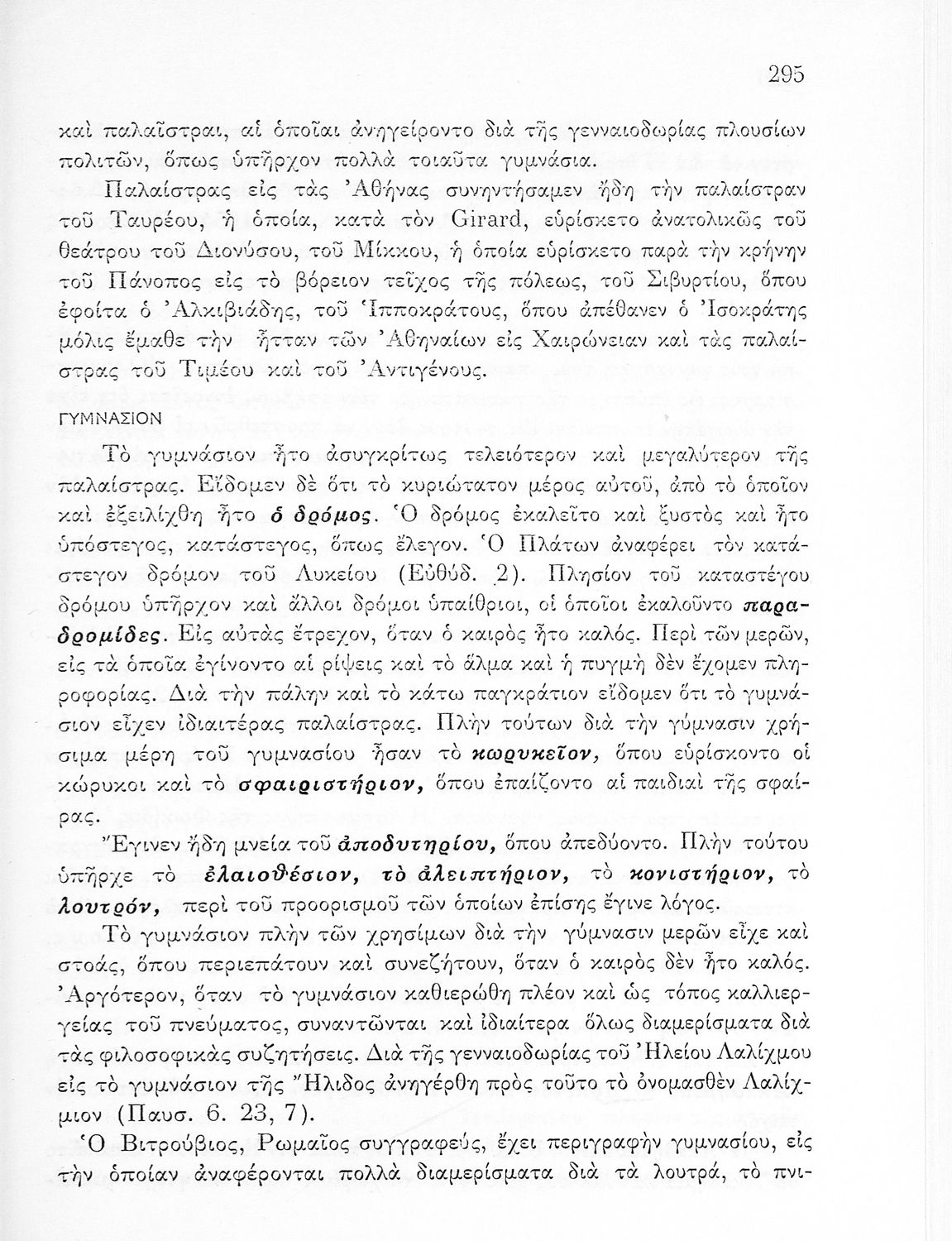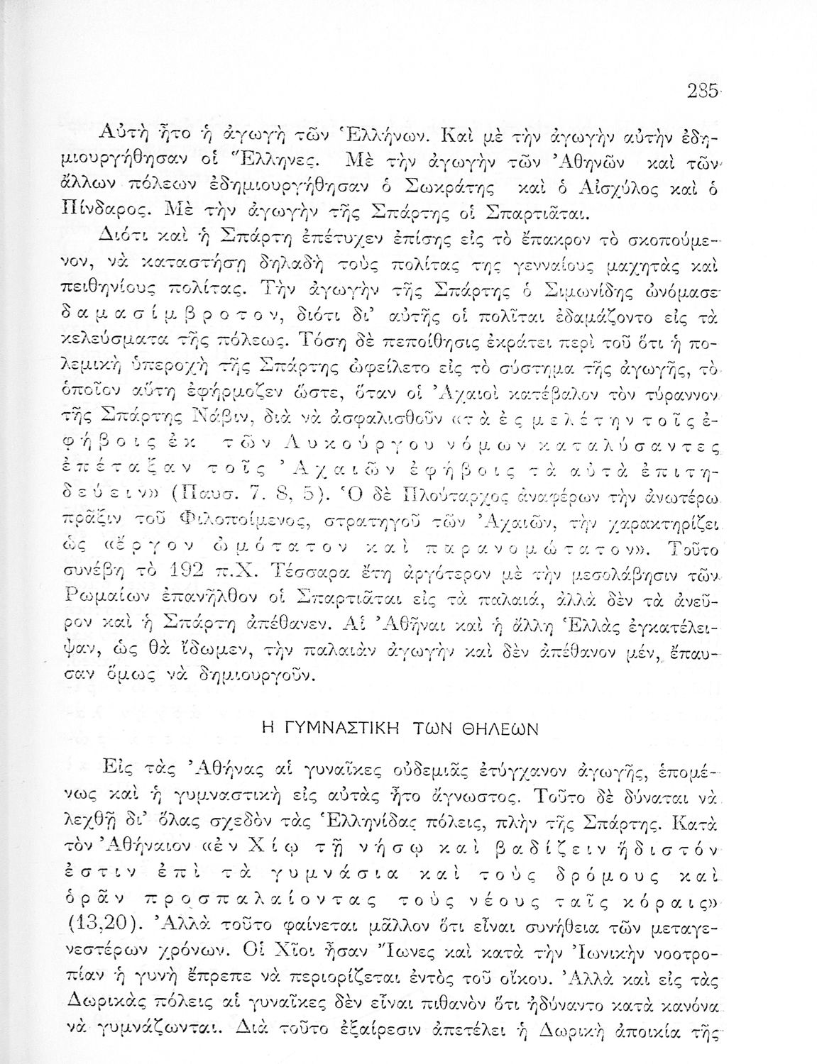 Παρουσίαση περιεχομένου: Παιδαγωγικό βοήθημα που αποσκοπεί στην επιμόρφωση των "μελλοντικών γυμναστών και γυμναστριών" και να παρουσιάσει την ιστορική εξέλιξη της ελληνικής παράδοσης στην γυμναστική. Ο συγγραφέας ήταν πρώην γενικός επιθεωρητής της γυμναστικής.