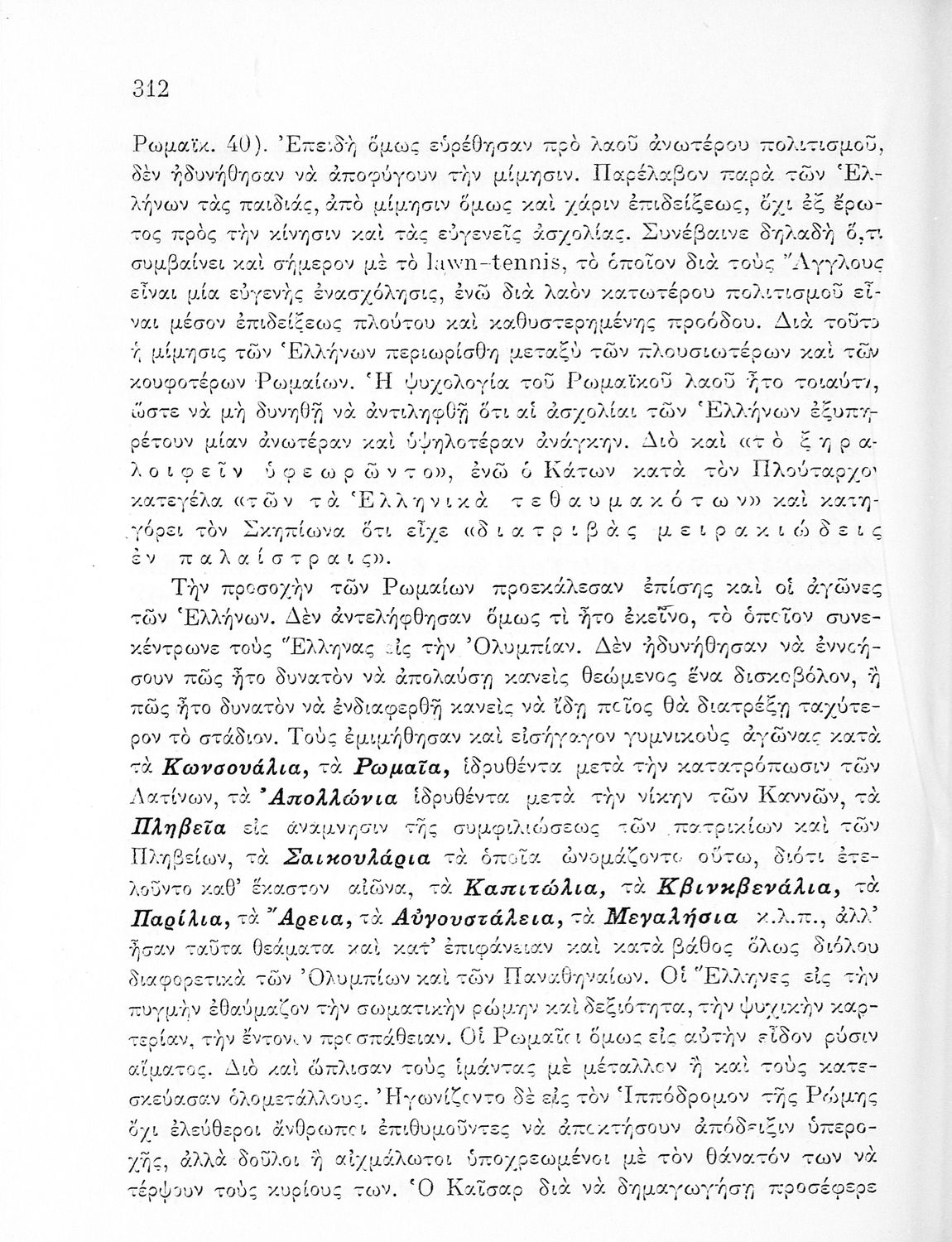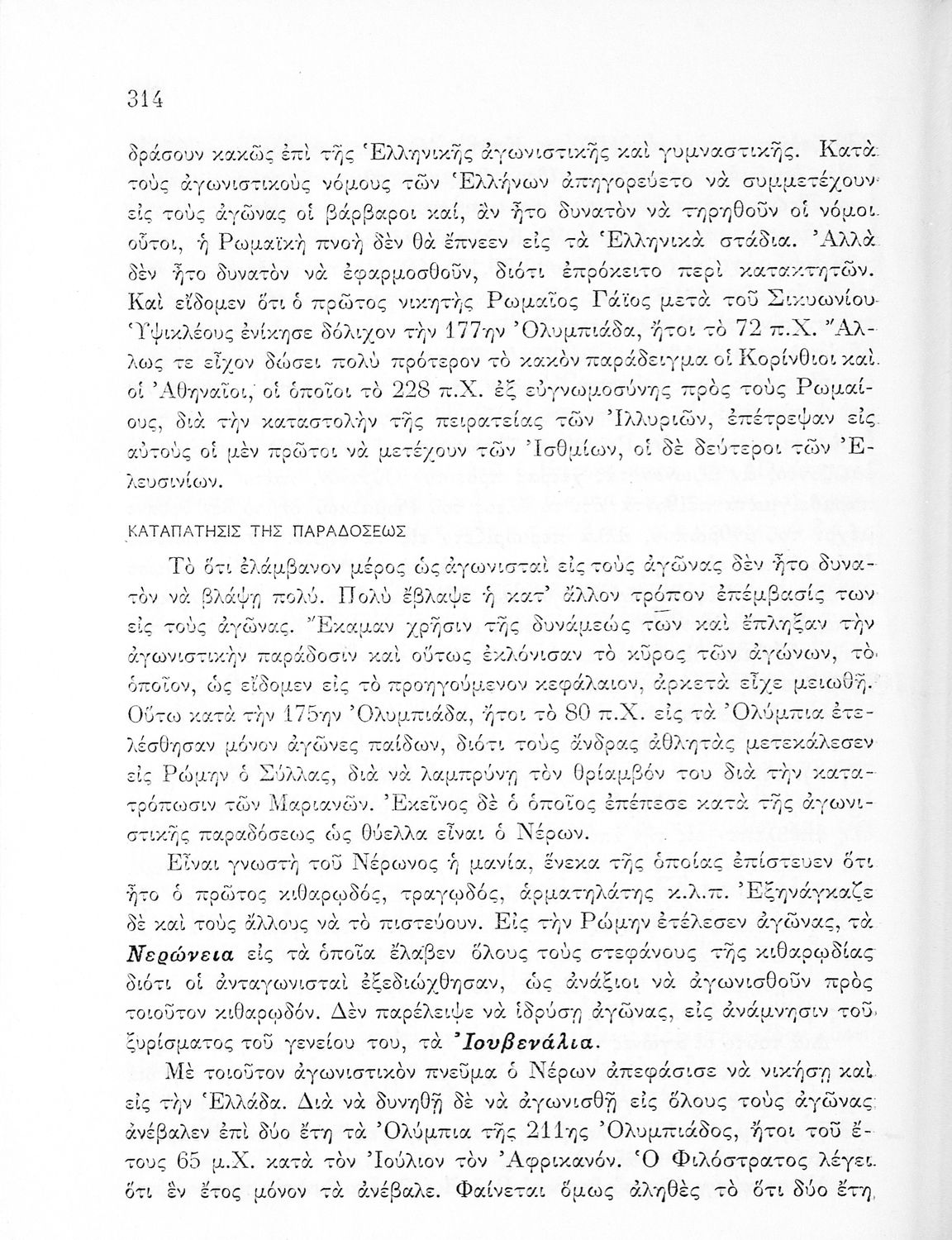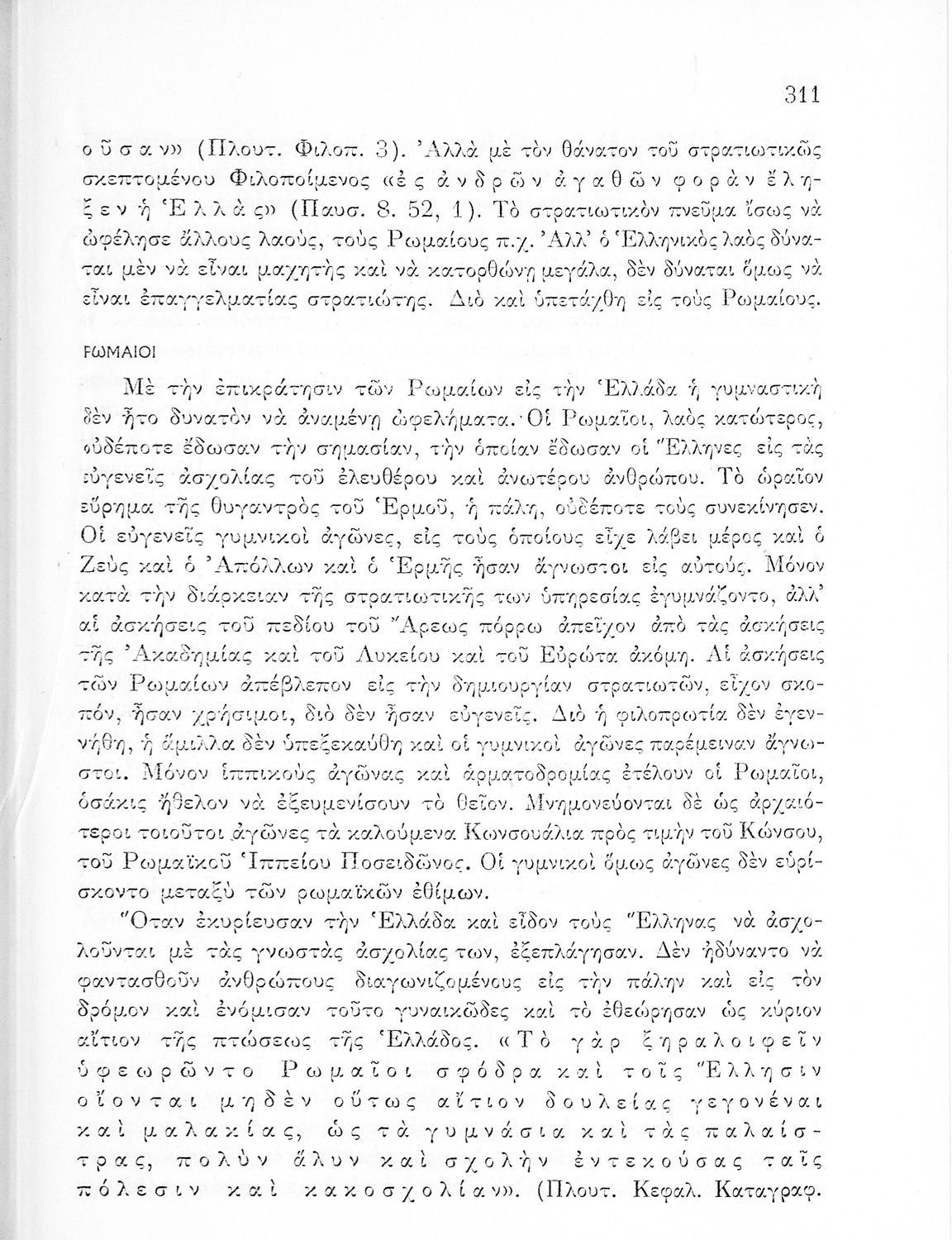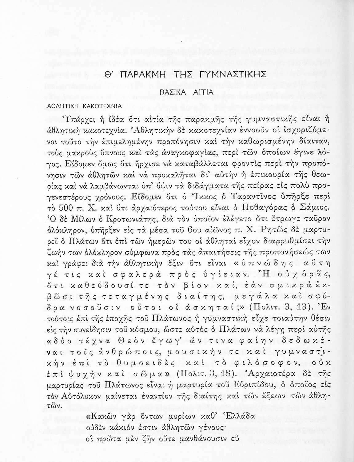 Παρουσίαση περιεχομένου: Παιδαγωγικό βοήθημα που αποσκοπεί στην επιμόρφωση των "μελλοντικών γυμναστών και γυμναστριών" και να παρουσιάσει την ιστορική εξέλιξη της ελληνικής παράδοσης στην γυμναστική. Ο συγγραφέας ήταν πρώην γενικός επιθεωρητής της γυμναστικής.