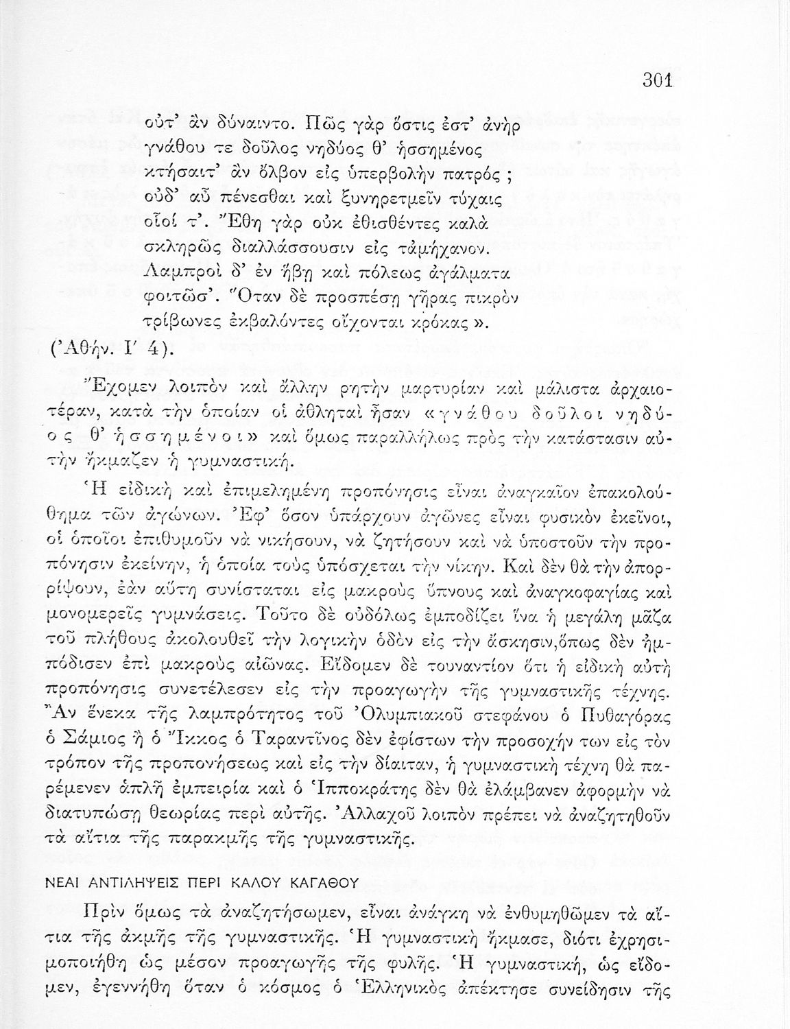 Παιδαγωγικό βοήθημα που αποσκοπεί στην επιμόρφωση των "μελλοντικών γυμναστών και γυμναστριών" και να παρουσιάσει την ιστορική εξέλιξη της ελληνικής παράδοσης στην γυμναστική. Ο συγγραφέας ήταν πρώην γενικός επιθεωρητής της γυμναστικής.