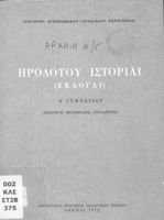 Σχολικό εγχειρίδιο Αρχαίων Ελληνικών Α΄ Γυμνασίου που περιλαμβάνει εισαγωγή στη ζωή και το έργο του Ηρόδοτου και αποσπάσματα από τα εννέα βιβλία της Ιστορίας του σε μετάφραση.