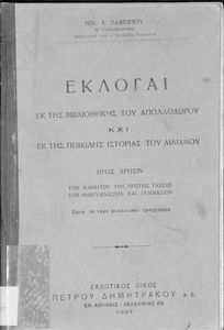 Τίτλος: Εκλογαί εκ της Βιβλιοθήκης του Απολλοδώρου και της Ποικίλης Ιστορίας του Αιλιανού. Προς χρήσιν της Πρώτης Τάξεως των Ημιγυμνασίων και Γυμνασίων