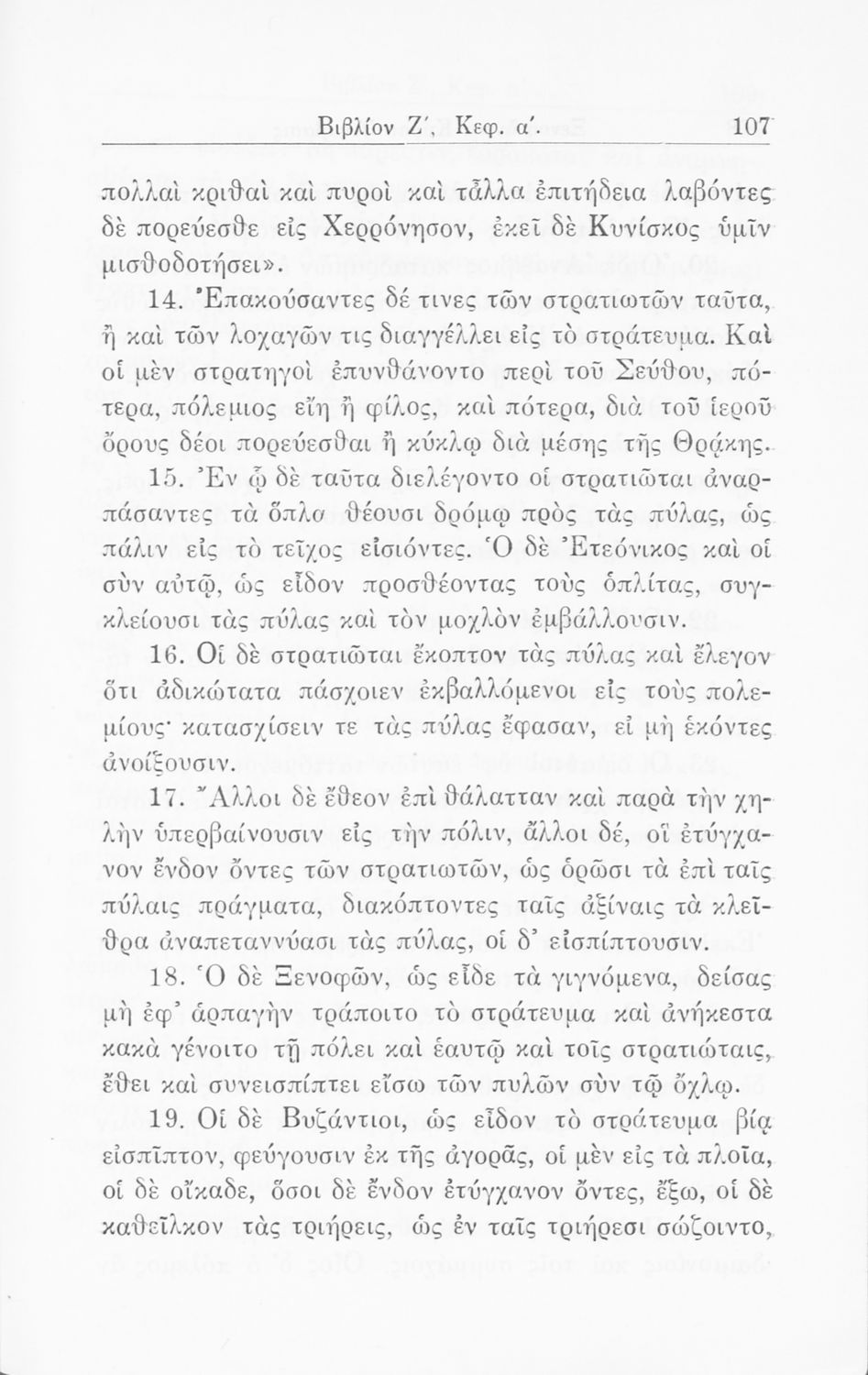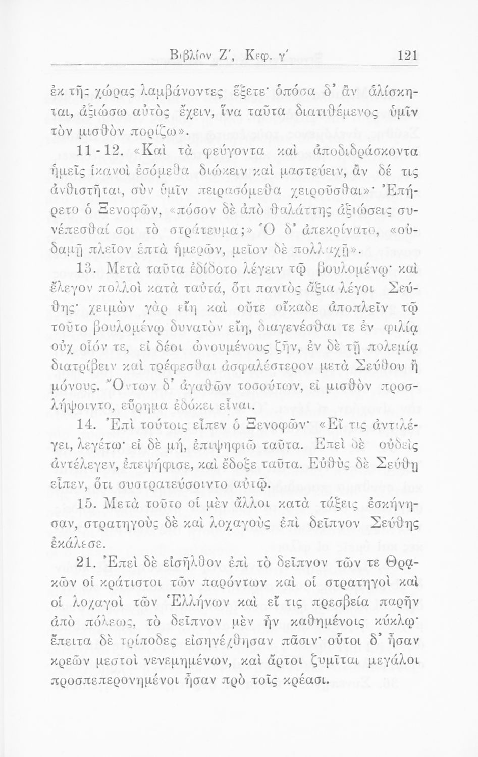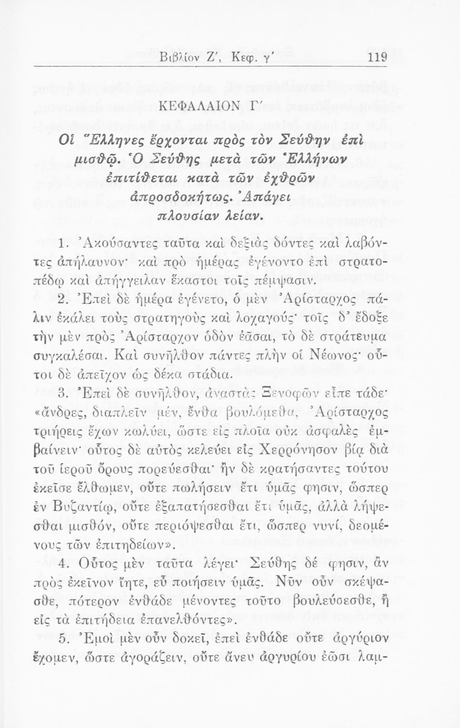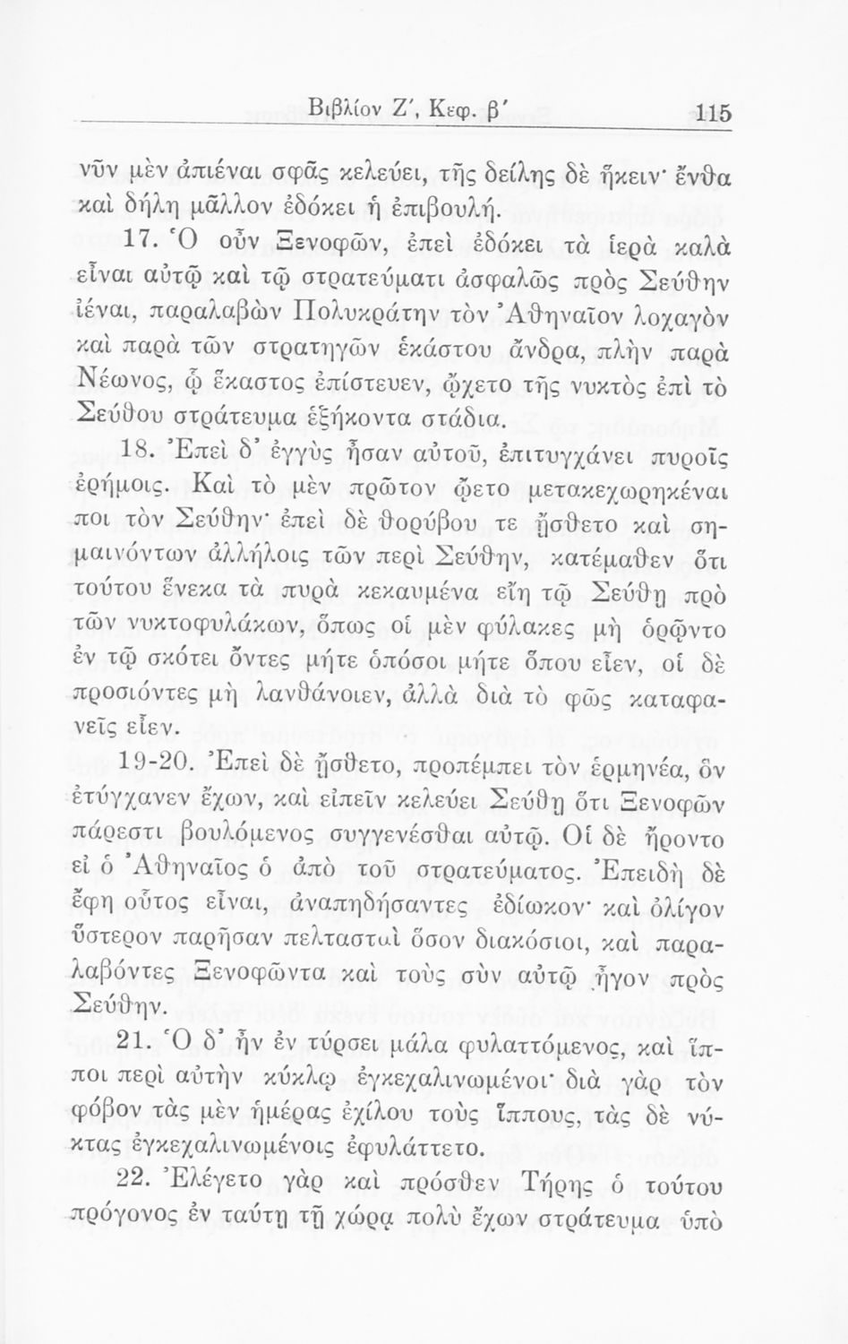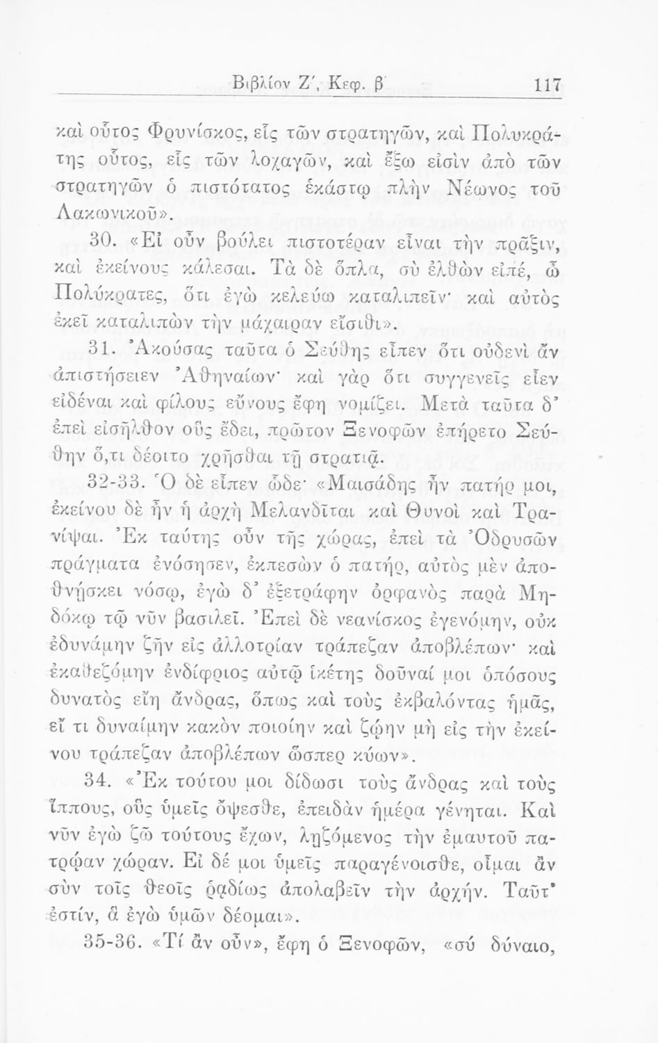 Σχολικό εγχειρίδιο Α΄ και Β΄ Γυμνασίου για το μάθημα των Αρχαίων. Περιλαμβάνει κείμενα κατ΄ επιλογή από το έργο του Ξενοφώντα Κύρου Ανάβαση από το πρωτότυπο. Περιέχει πραγματολογικά σχόλια και λεξιλογικές παρατηρήσεις του συγγραφέα. Εγκρίθηκε για μια δεκαετία από το σχολικό έτος 1931-1932.