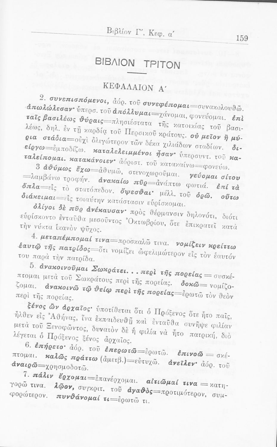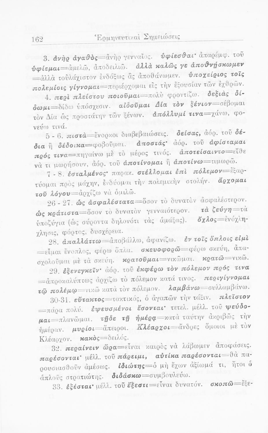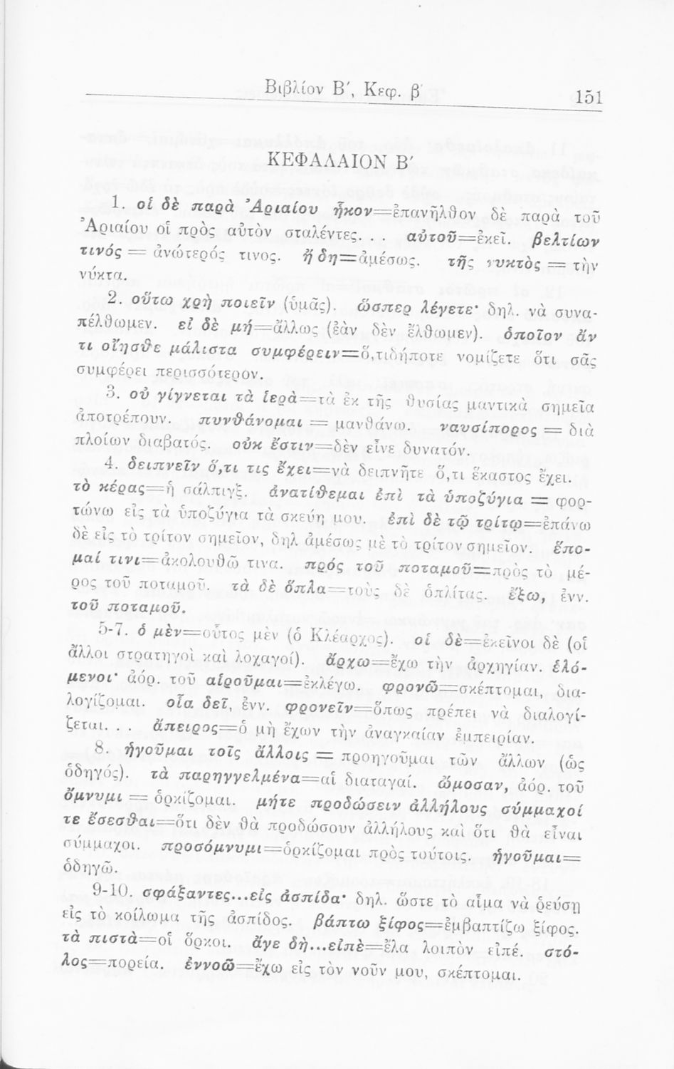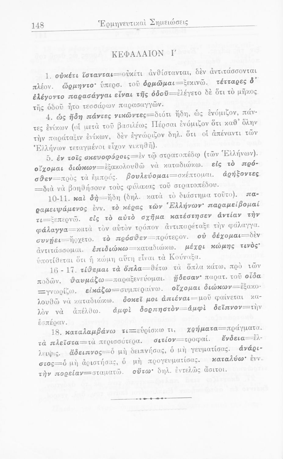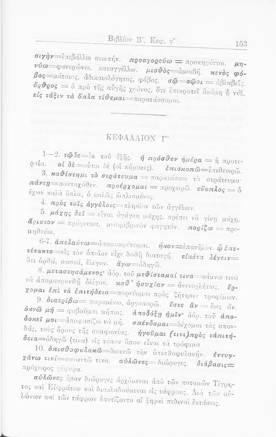 Σχολικό εγχειρίδιο Α΄ και Β΄ Γυμνασίου για το μάθημα των Αρχαίων. Περιλαμβάνει κείμενα κατ΄ επιλογή από το έργο του Ξενοφώντα Κύρου Ανάβαση από το πρωτότυπο. Περιέχει πραγματολογικά σχόλια και λεξιλογικές παρατηρήσεις του συγγραφέα. Εγκρίθηκε για μια δεκαετία από το σχολικό έτος 1931-1932.
