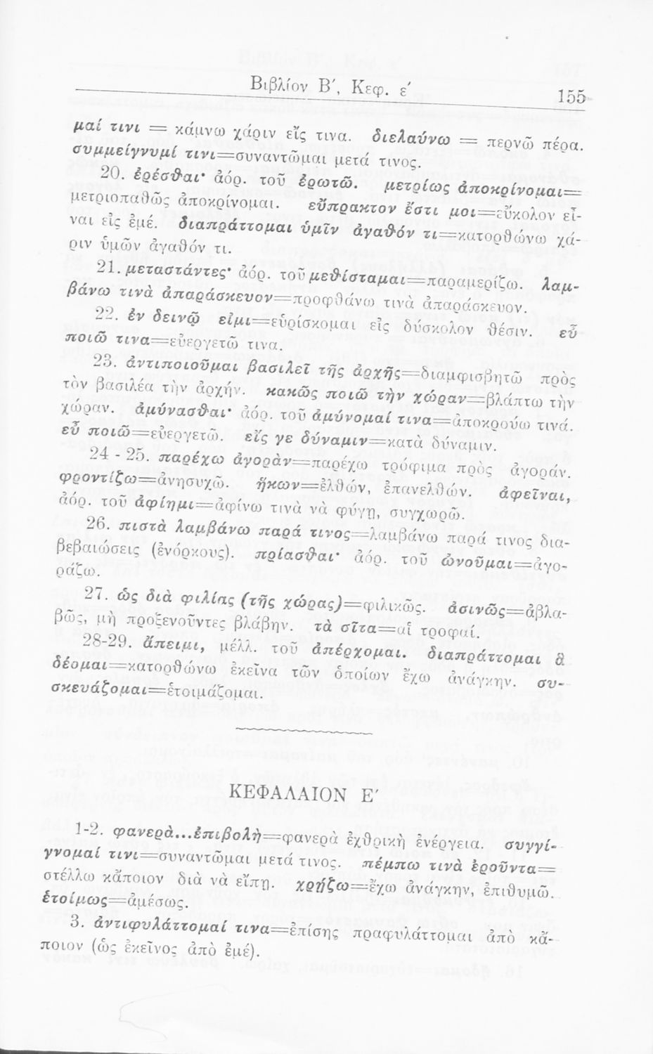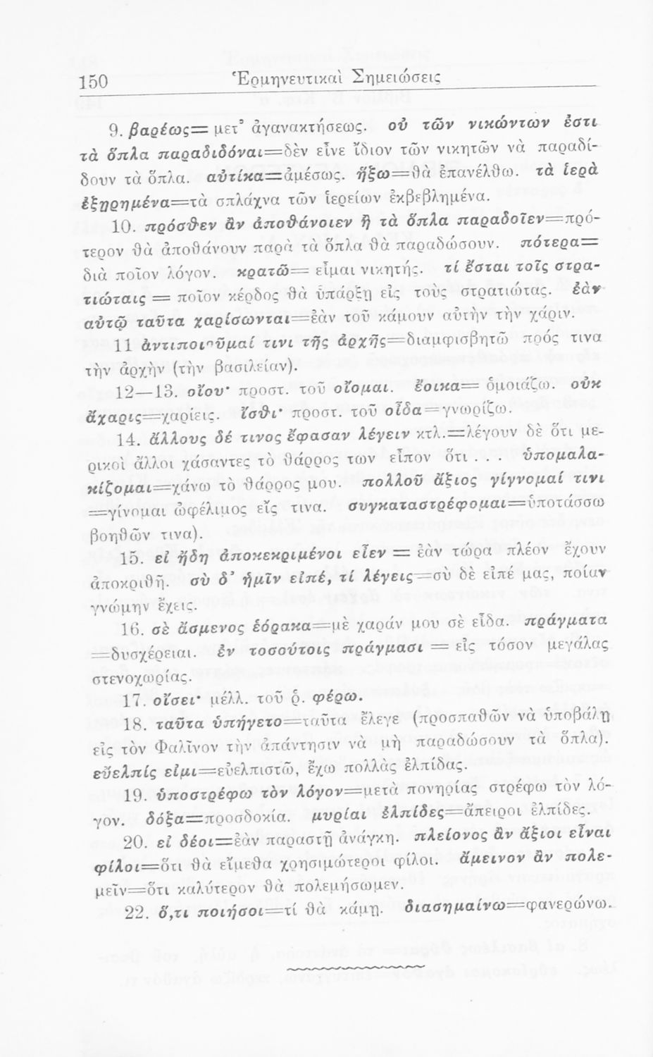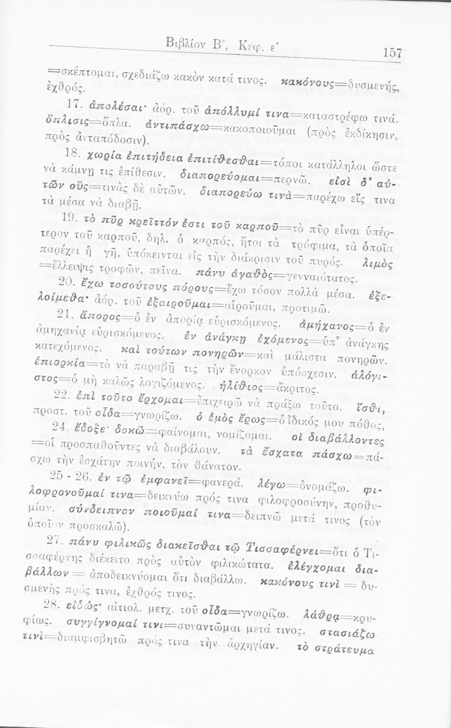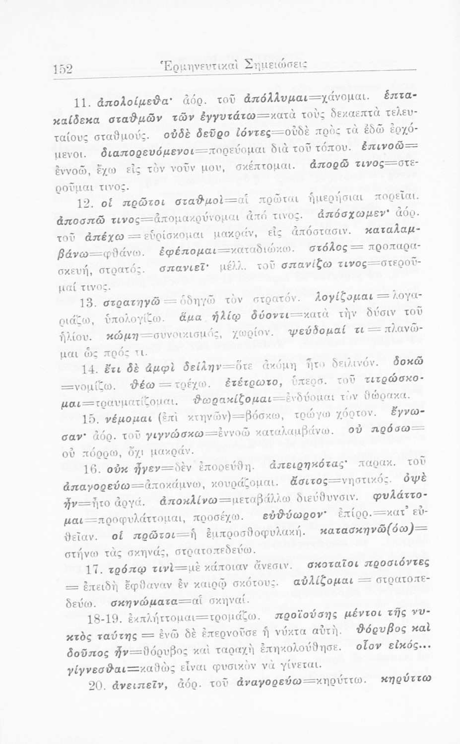 Σχολικό εγχειρίδιο Α΄ και Β΄ Γυμνασίου για το μάθημα των Αρχαίων. Περιλαμβάνει κείμενα κατ΄ επιλογή από το έργο του Ξενοφώντα Κύρου Ανάβαση από το πρωτότυπο. Περιέχει πραγματολογικά σχόλια και λεξιλογικές παρατηρήσεις του συγγραφέα. Εγκρίθηκε για μια δεκαετία από το σχολικό έτος 1931-1932.