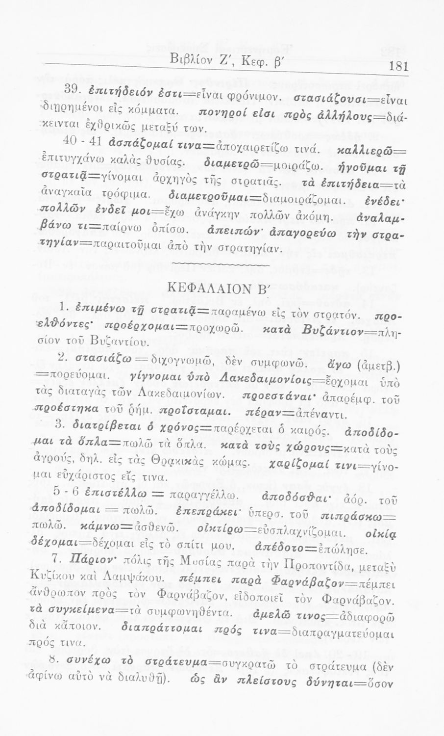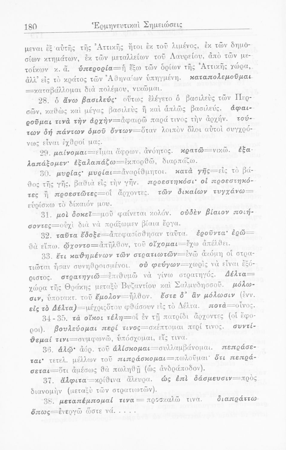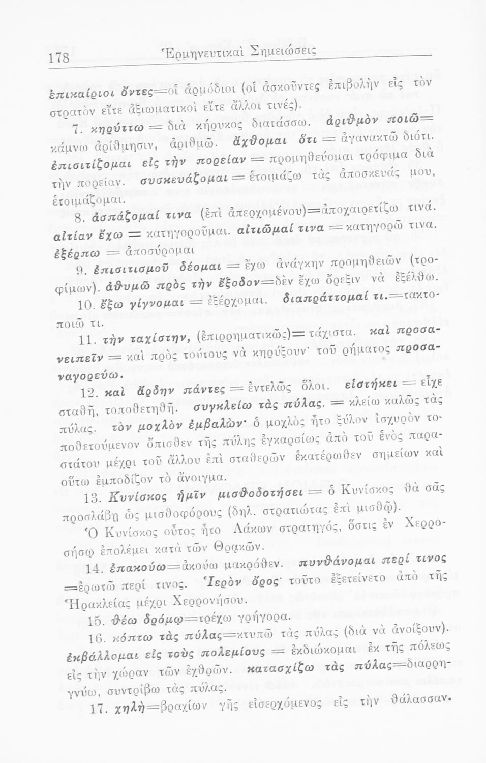 Σχολικό εγχειρίδιο Α΄ και Β΄ Γυμνασίου για το μάθημα των Αρχαίων. Περιλαμβάνει κείμενα κατ΄ επιλογή από το έργο του Ξενοφώντα Κύρου Ανάβαση από το πρωτότυπο. Περιέχει πραγματολογικά σχόλια και λεξιλογικές παρατηρήσεις του συγγραφέα. Εγκρίθηκε για μια δεκαετία από το σχολικό έτος 1931-1932.