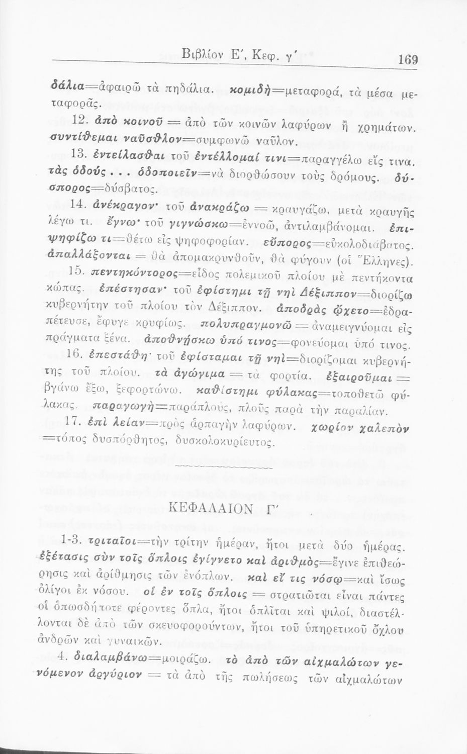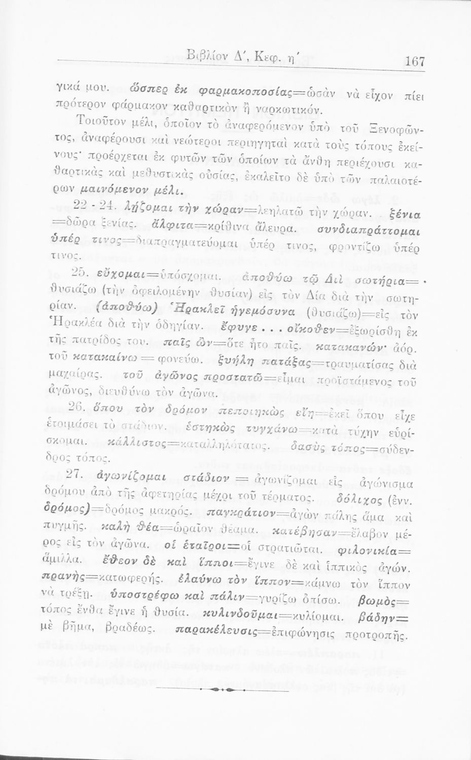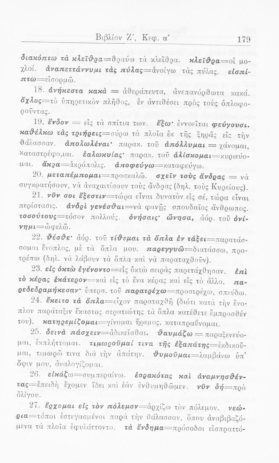 Σχολικό εγχειρίδιο Α΄ και Β΄ Γυμνασίου για το μάθημα των Αρχαίων. Περιλαμβάνει κείμενα κατ΄ επιλογή από το έργο του Ξενοφώντα Κύρου Ανάβαση από το πρωτότυπο. Περιέχει πραγματολογικά σχόλια και λεξιλογικές παρατηρήσεις του συγγραφέα. Εγκρίθηκε για μια δεκαετία από το σχολικό έτος 1931-1932.