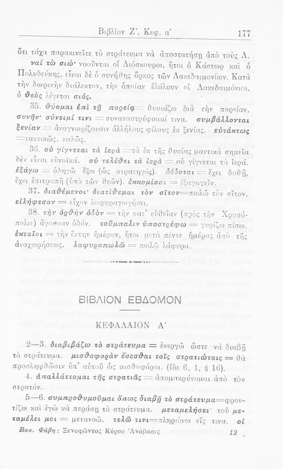 Ξενοφών, Βασίλειος Φάβης (μετάφραση)