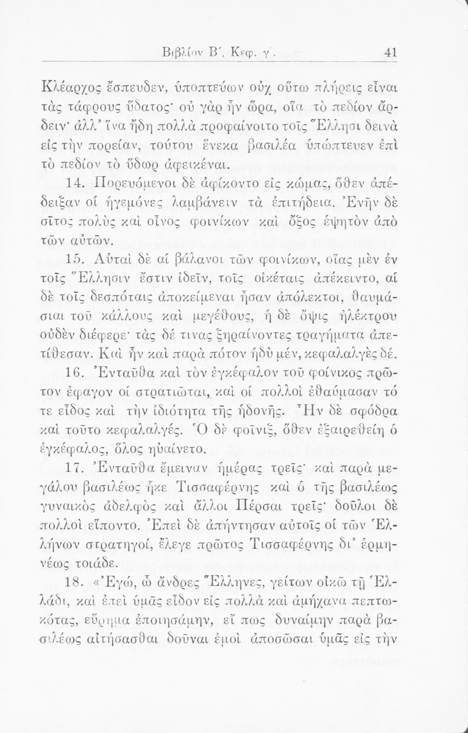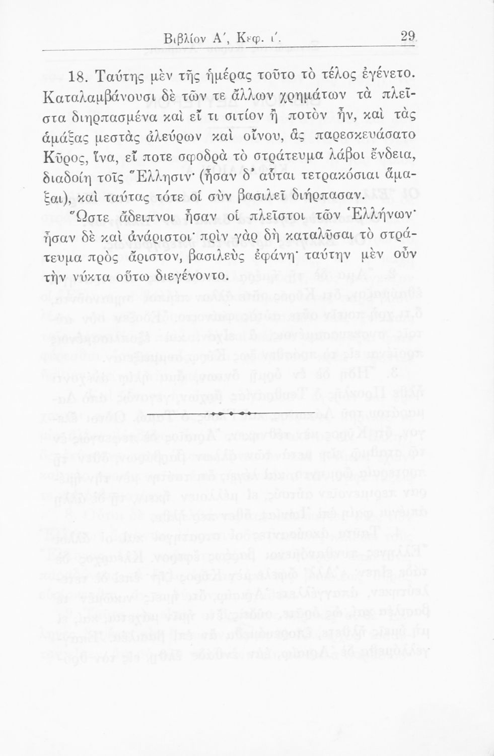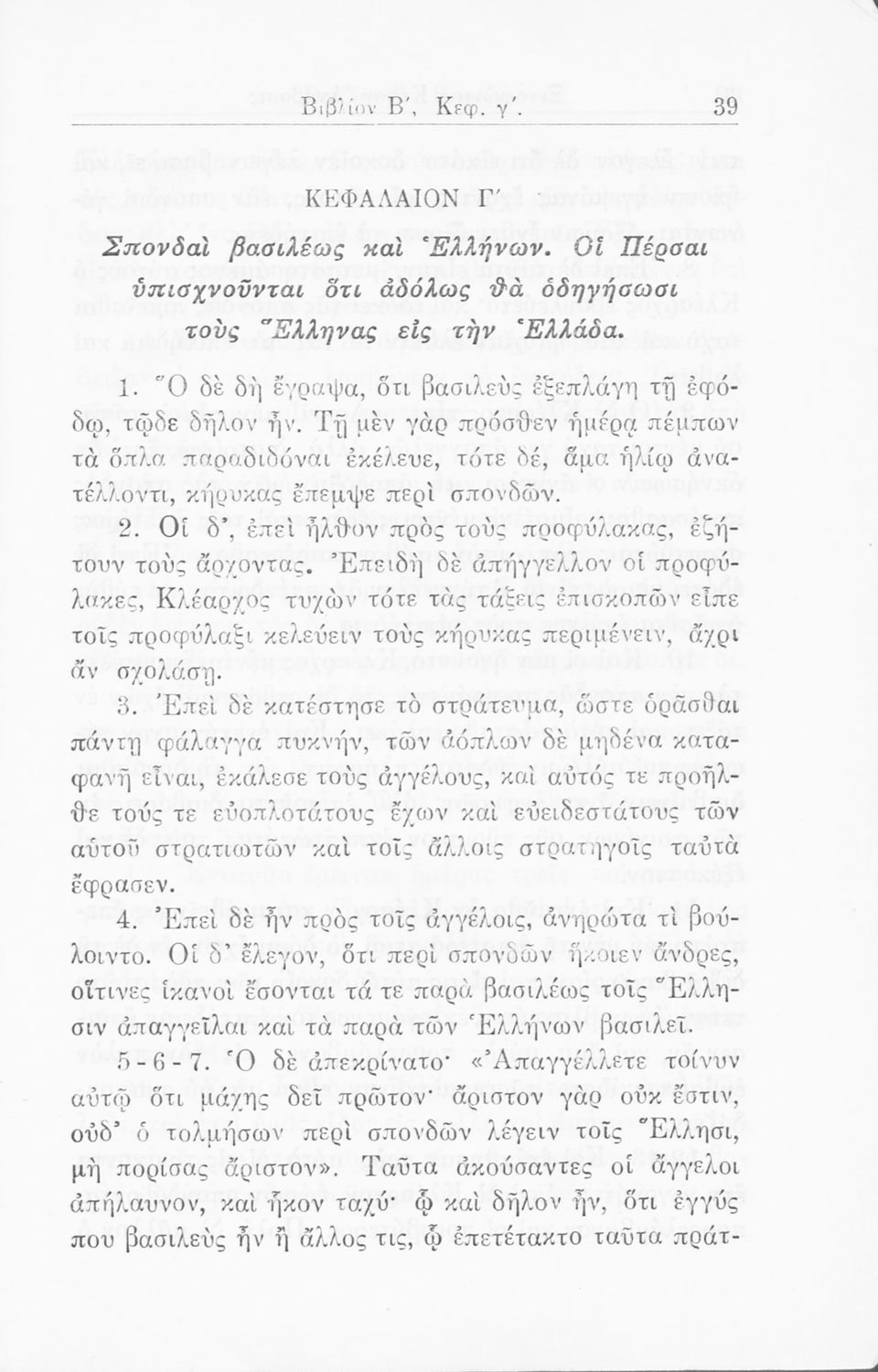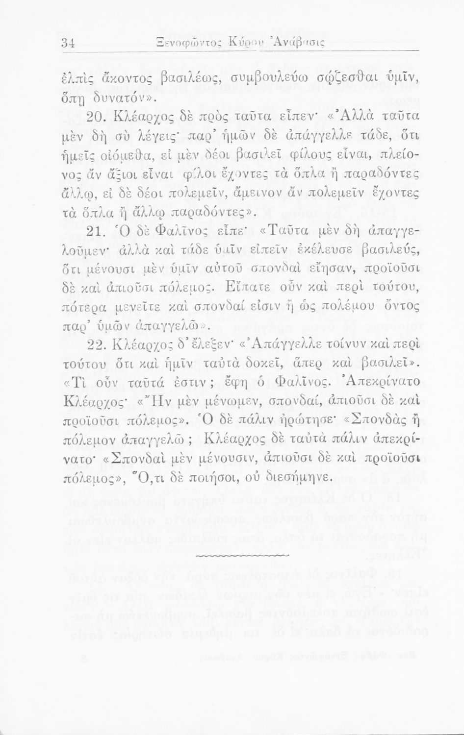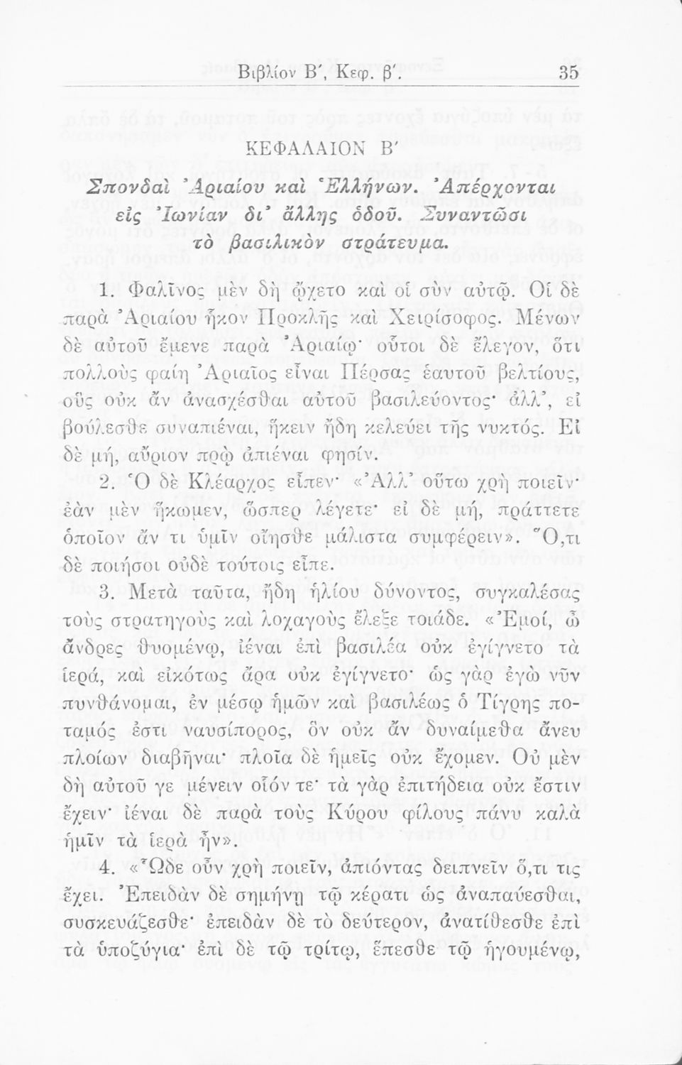 Σχολικό εγχειρίδιο Α΄ και Β΄ Γυμνασίου για το μάθημα των Αρχαίων. Περιλαμβάνει κείμενα κατ΄ επιλογή από το έργο του Ξενοφώντα Κύρου Ανάβαση από το πρωτότυπο. Περιέχει πραγματολογικά σχόλια και λεξιλογικές παρατηρήσεις του συγγραφέα. Εγκρίθηκε για μια δεκαετία από το σχολικό έτος 1931-1932.