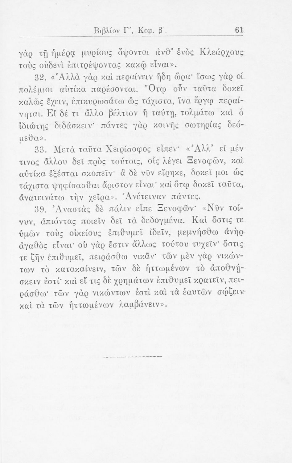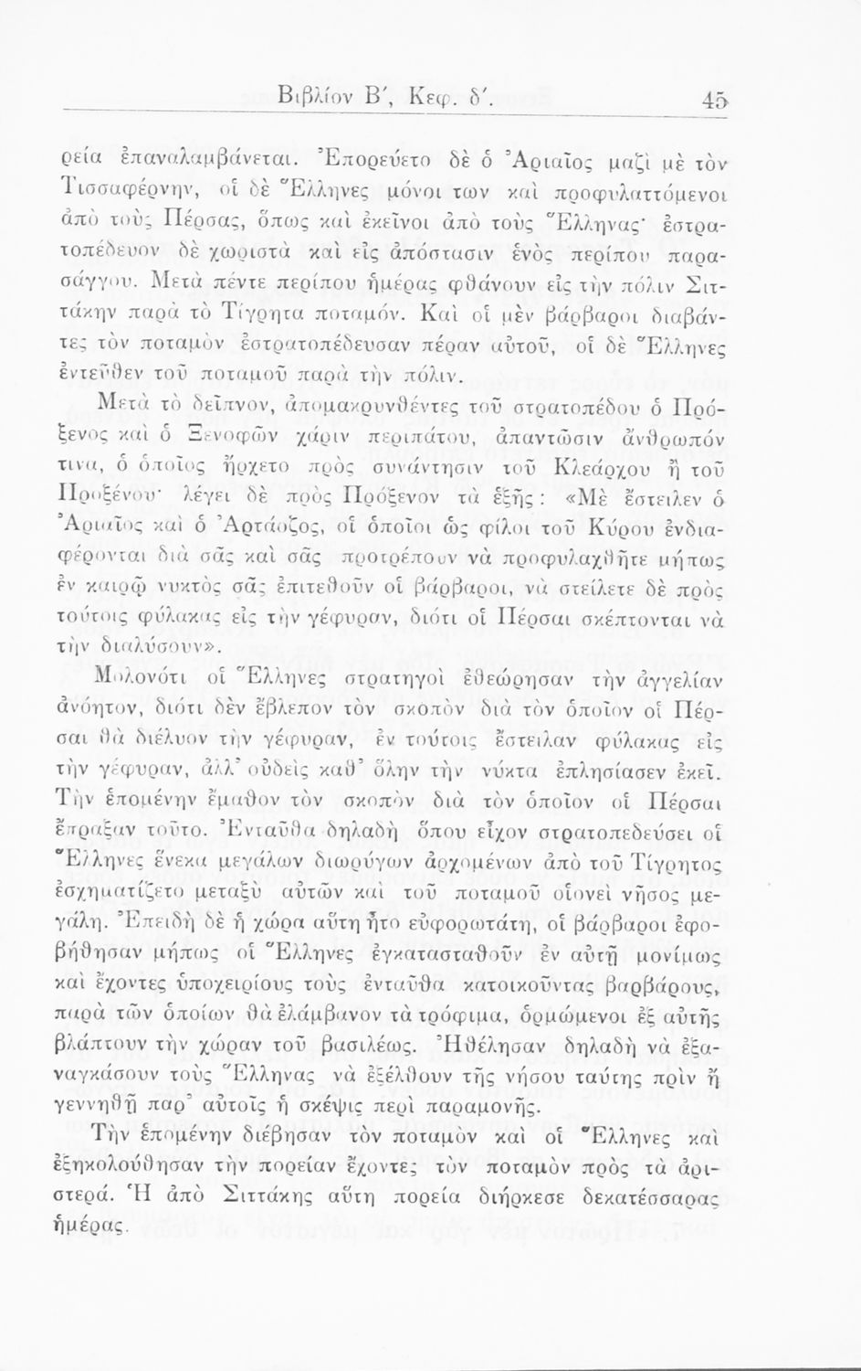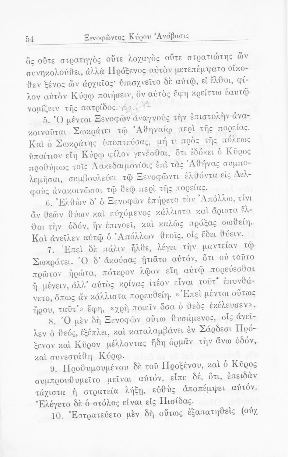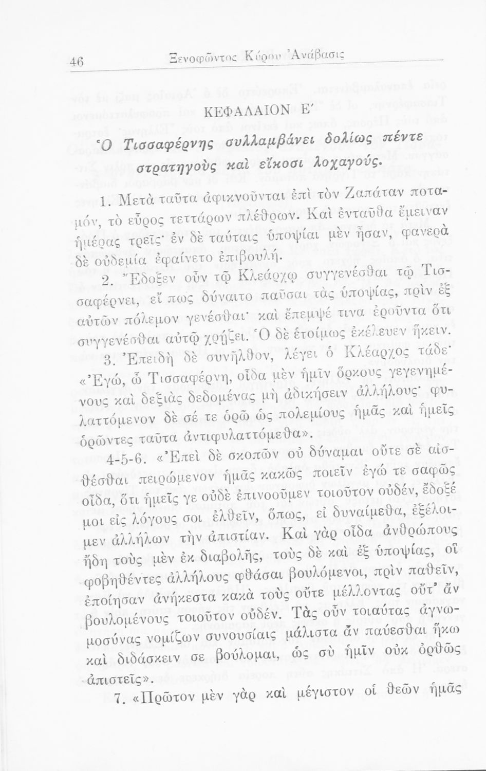 Σχολικό εγχειρίδιο Α΄ και Β΄ Γυμνασίου για το μάθημα των Αρχαίων. Περιλαμβάνει κείμενα κατ΄ επιλογή από το έργο του Ξενοφώντα Κύρου Ανάβαση από το πρωτότυπο. Περιέχει πραγματολογικά σχόλια και λεξιλογικές παρατηρήσεις του συγγραφέα. Εγκρίθηκε για μια δεκαετία από το σχολικό έτος 1931-1932.