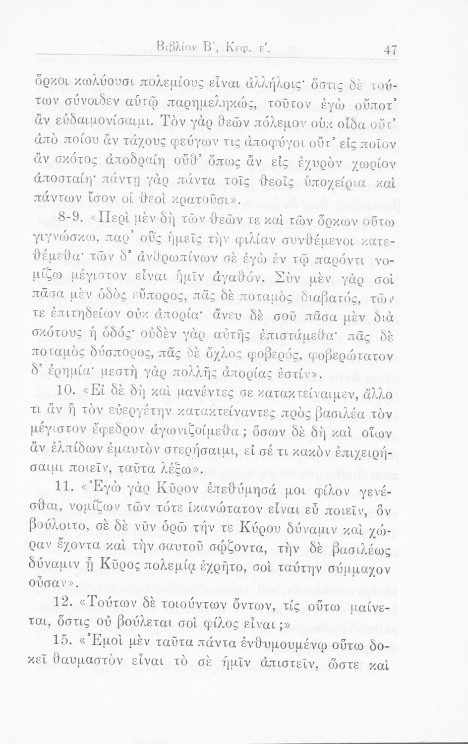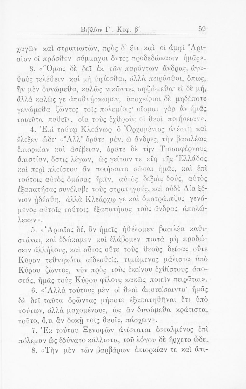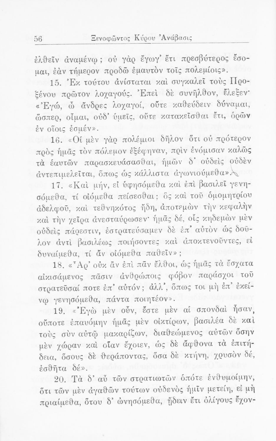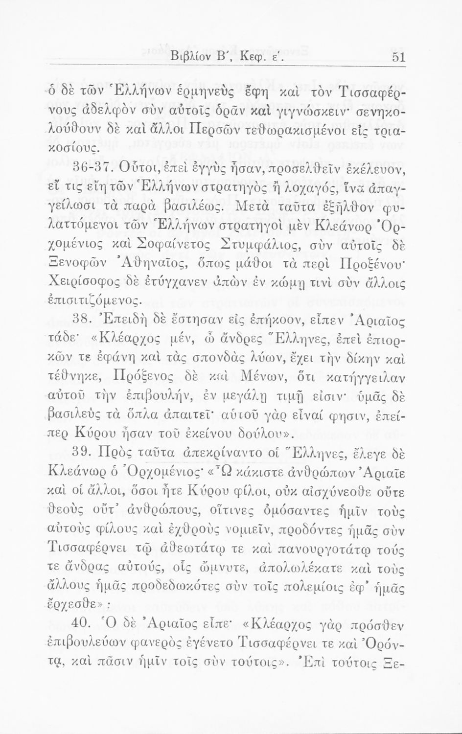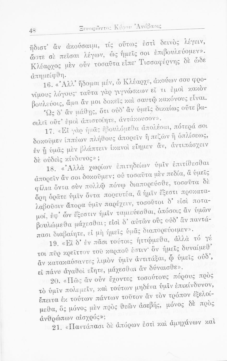 Σχολικό εγχειρίδιο Α΄ και Β΄ Γυμνασίου για το μάθημα των Αρχαίων. Περιλαμβάνει κείμενα κατ΄ επιλογή από το έργο του Ξενοφώντα Κύρου Ανάβαση από το πρωτότυπο. Περιέχει πραγματολογικά σχόλια και λεξιλογικές παρατηρήσεις του συγγραφέα. Εγκρίθηκε για μια δεκαετία από το σχολικό έτος 1931-1932.