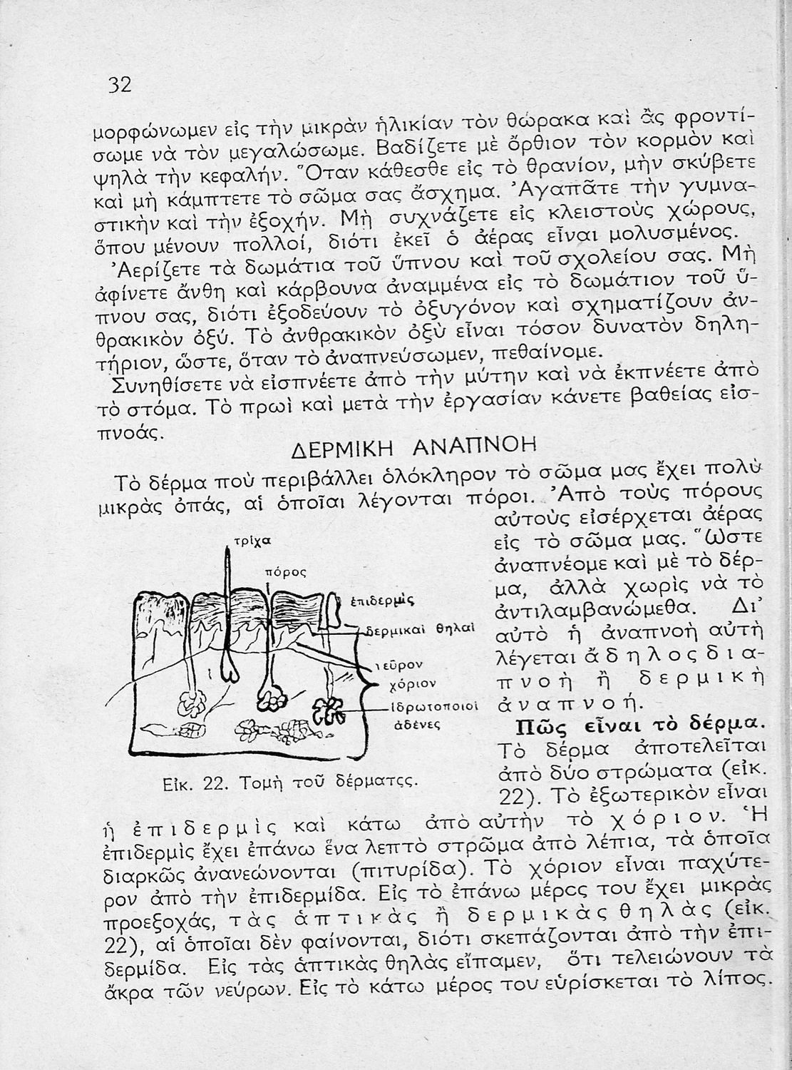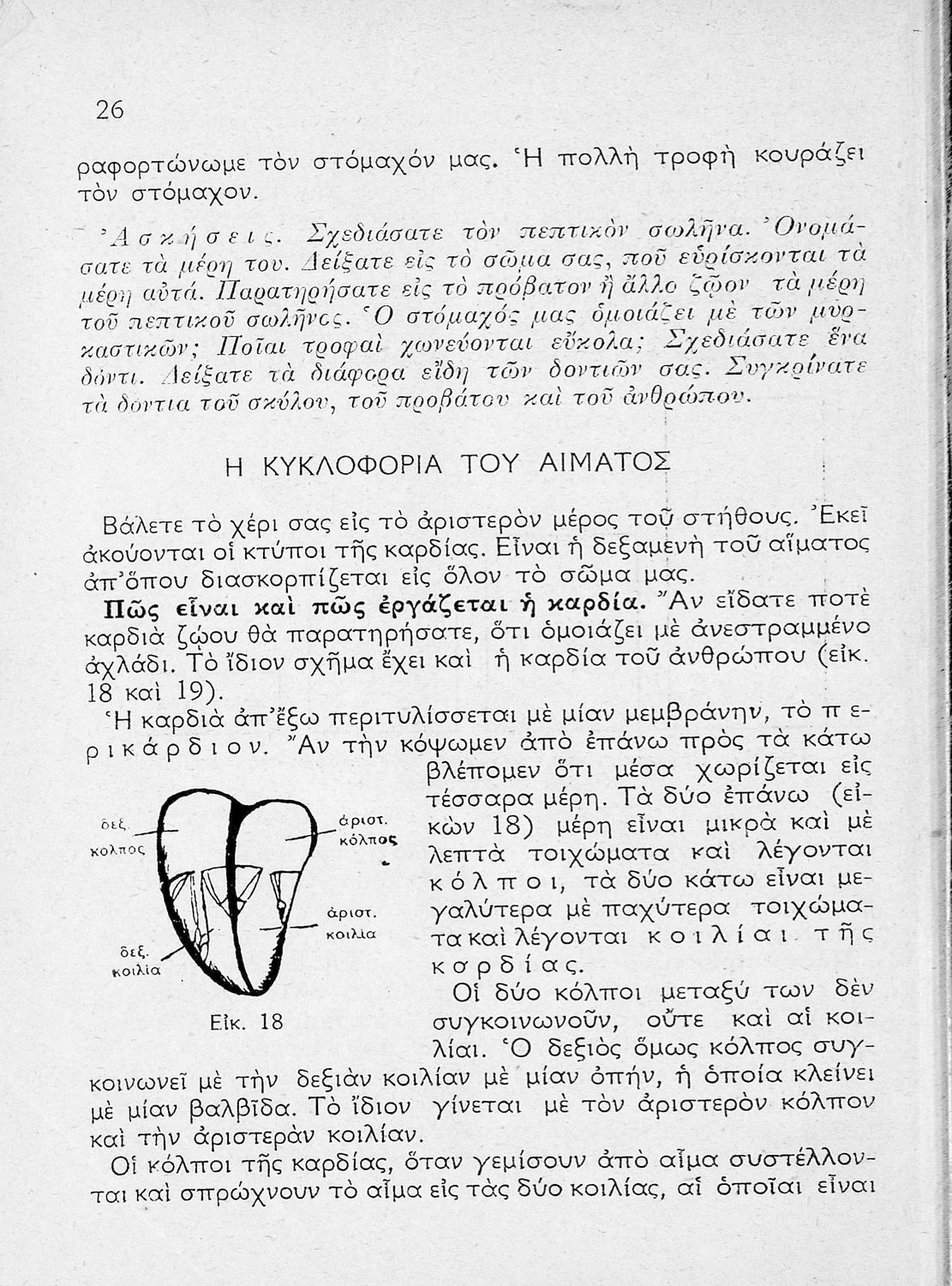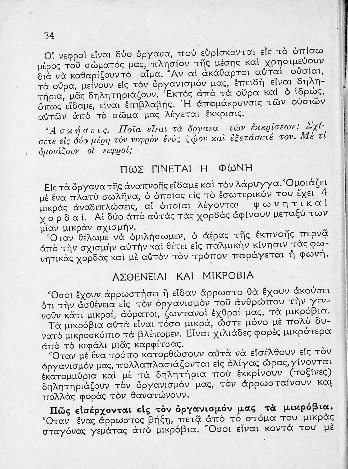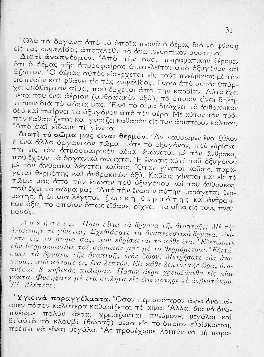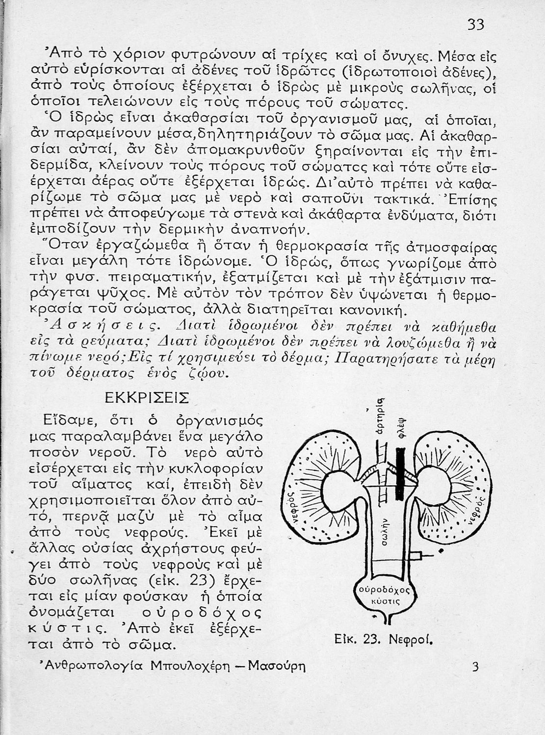 Βαθμίδα εκπαίδευσης: Πρωτοβάθμια Τάξη: ΣΤ' Δημοτικού Μάθημα: Ανθρωπολογία, Υγιεινή Γλώσσα: Απλή καθαρεύουσα Παρουσίαση περιεχομένου: Σχολικό εγχειρίδιο Ανθρωπολογίας και Υγιεινής ΣΤ΄ Δημοτικού που εστιάζει στην λειτουργία του ανθρώπινου σώματος. |