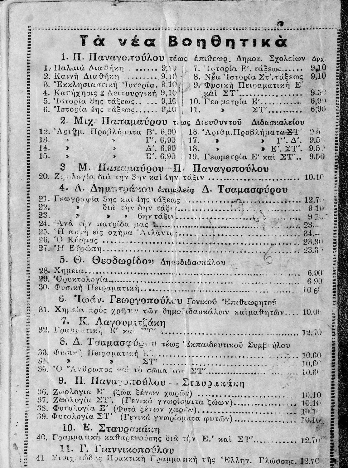 Κωδικός αναγνώρισης: 01-17664c Τίτλος: Ανθρωπολογία και υγιεινή δια την ΣΤ΄ τάξη των Δημοτικών Σχολείων και συνδιδασκόμενες Ε΄ και ΣΤ΄ Συγγραφέας: Η. Κ Μπουλοχέρης, Μάνος Μασούρης Μέγεθος και υπόστρωμα: Σχολικό εγχειρίδιο, 17εκ., σκληρό εξώφυλλο, 35 σελίδες. Εξώφυλλο (έγχρωμο), σκίτσα (ασπρόμαυρα). |