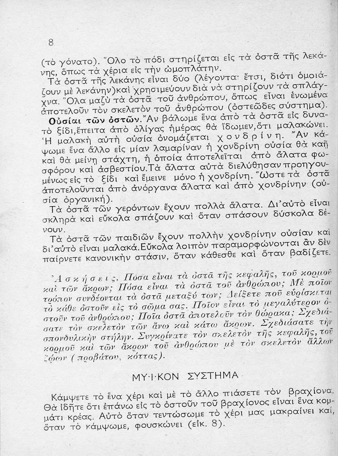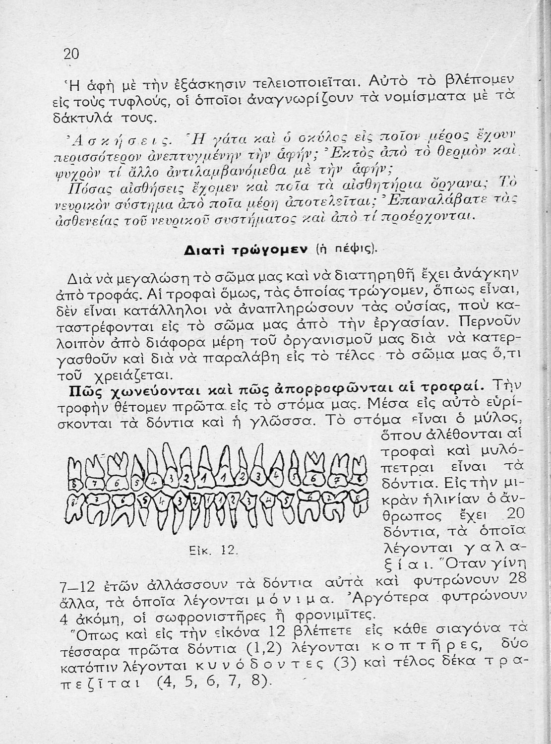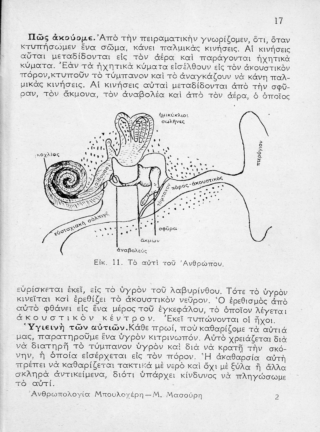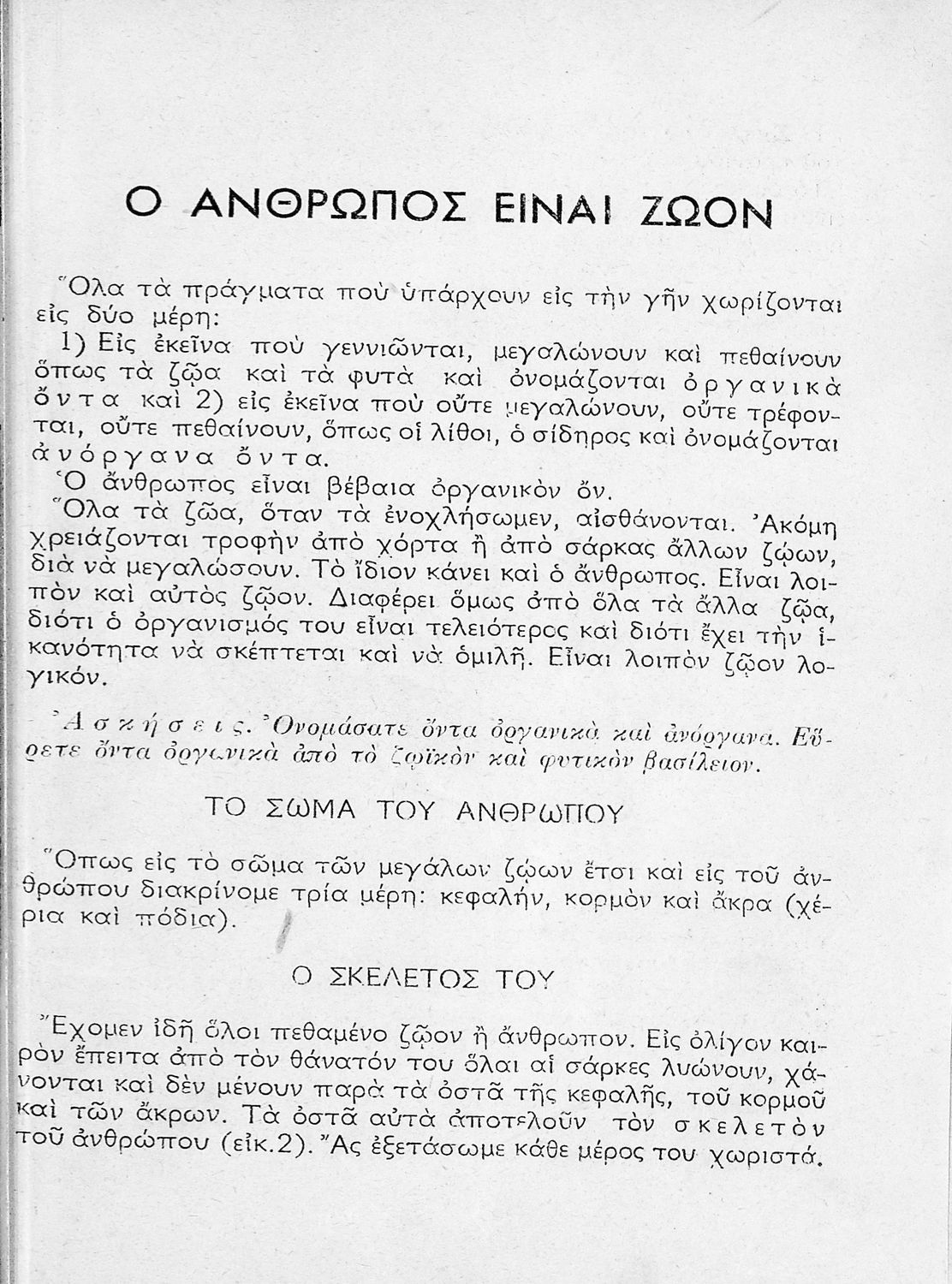 Βαθμίδα εκπαίδευσης: Πρωτοβάθμια Τάξη: ΣΤ' Δημοτικού Μάθημα: Ανθρωπολογία, Υγιεινή Γλώσσα: Απλή καθαρεύουσα Παρουσίαση περιεχομένου: Σχολικό εγχειρίδιο Ανθρωπολογίας και Υγιεινής ΣΤ΄ Δημοτικού που εστιάζει στην λειτουργία του ανθρώπινου σώματος. |