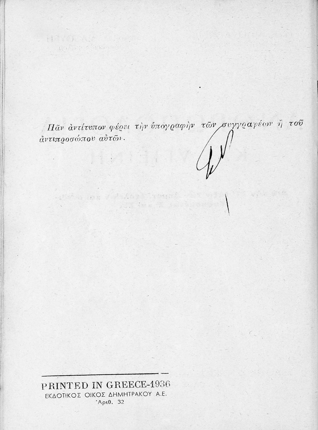 Εκδότης: Δημ. Δημητράκος Έτος έκδοσης: 1936 Τόπος έκδοσης: Αθήνα |