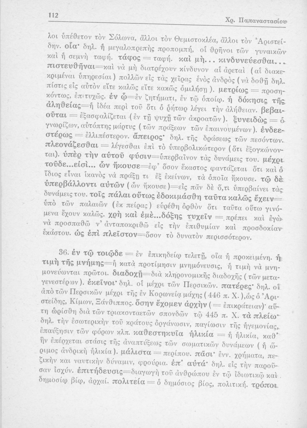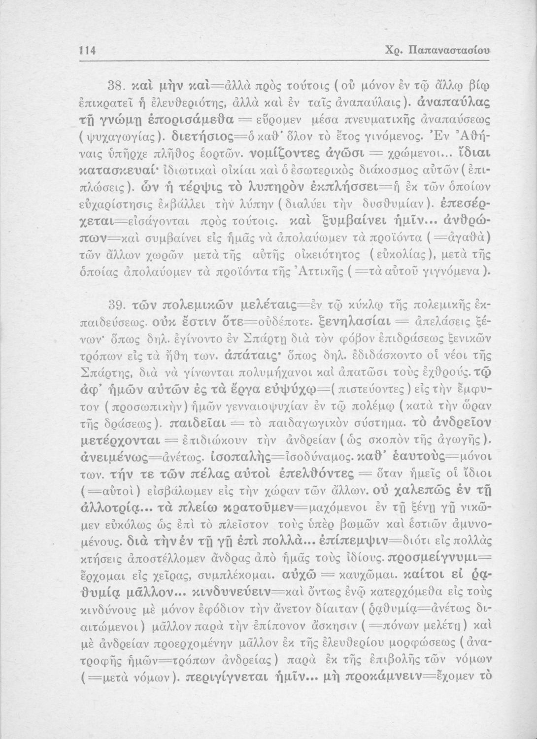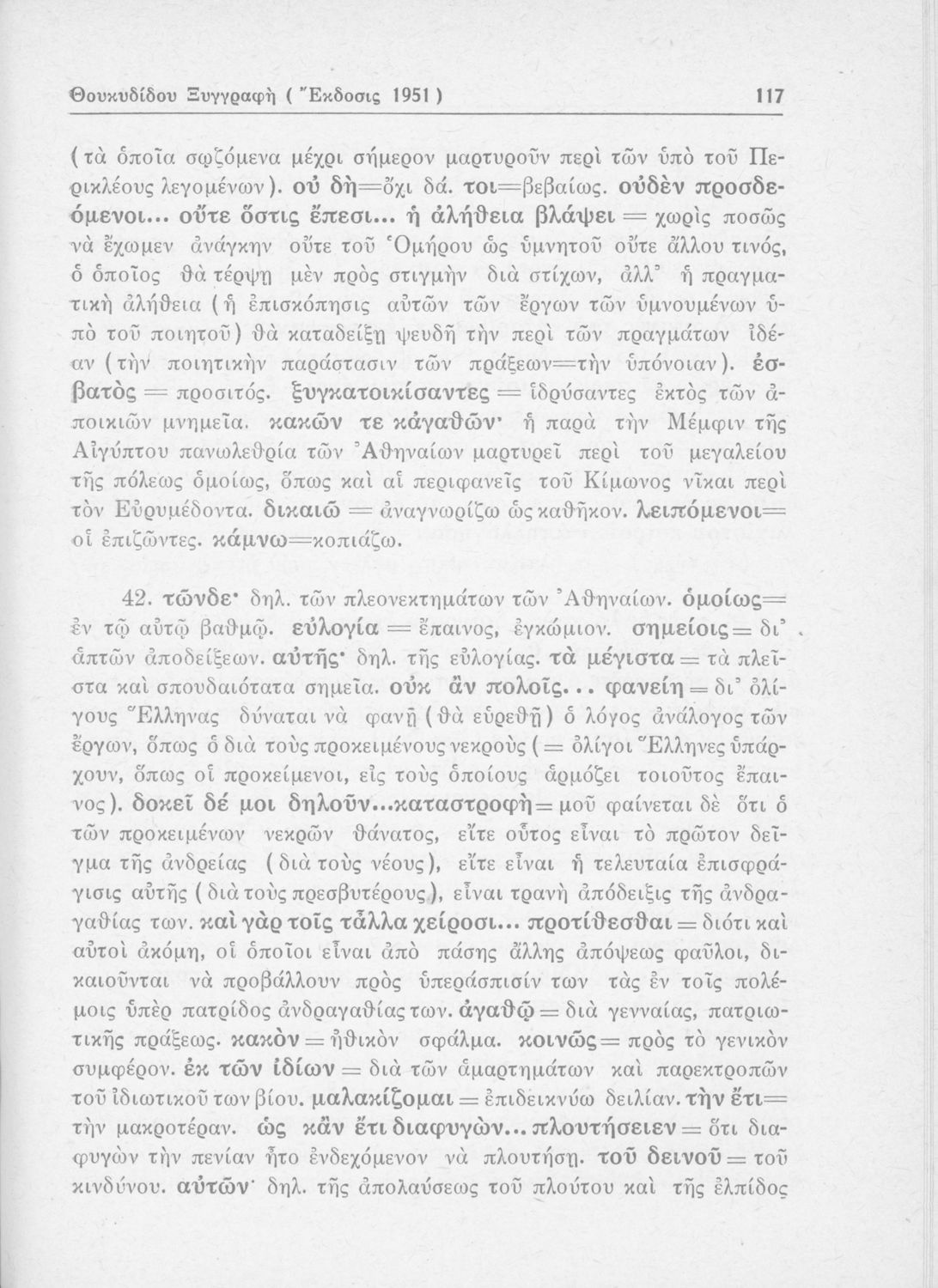 Θουκυδίδης, Χρισ. Παπαναστασίου (σχόλια)