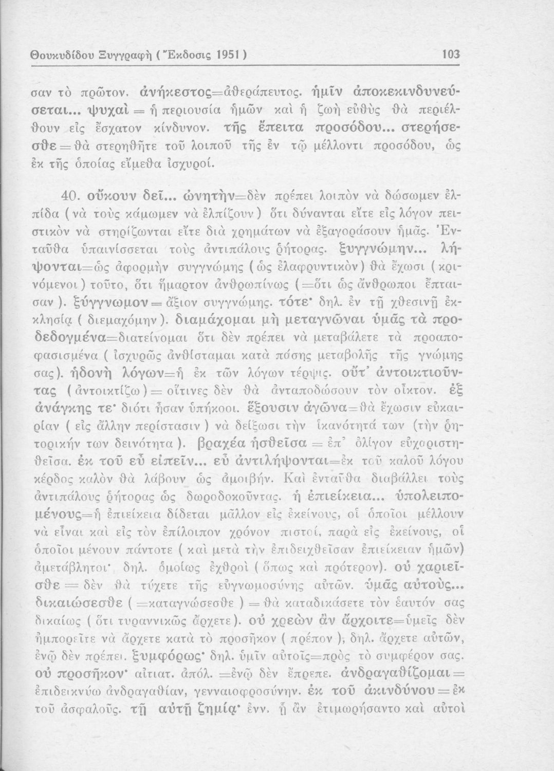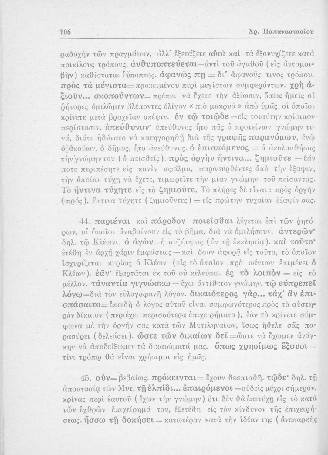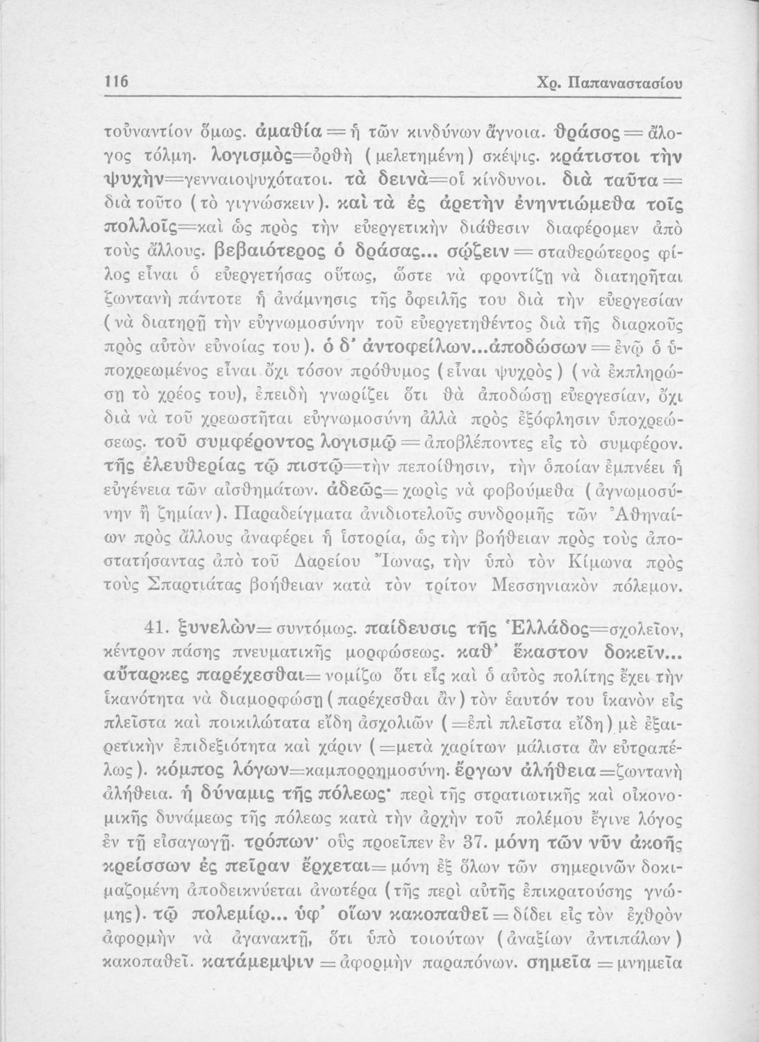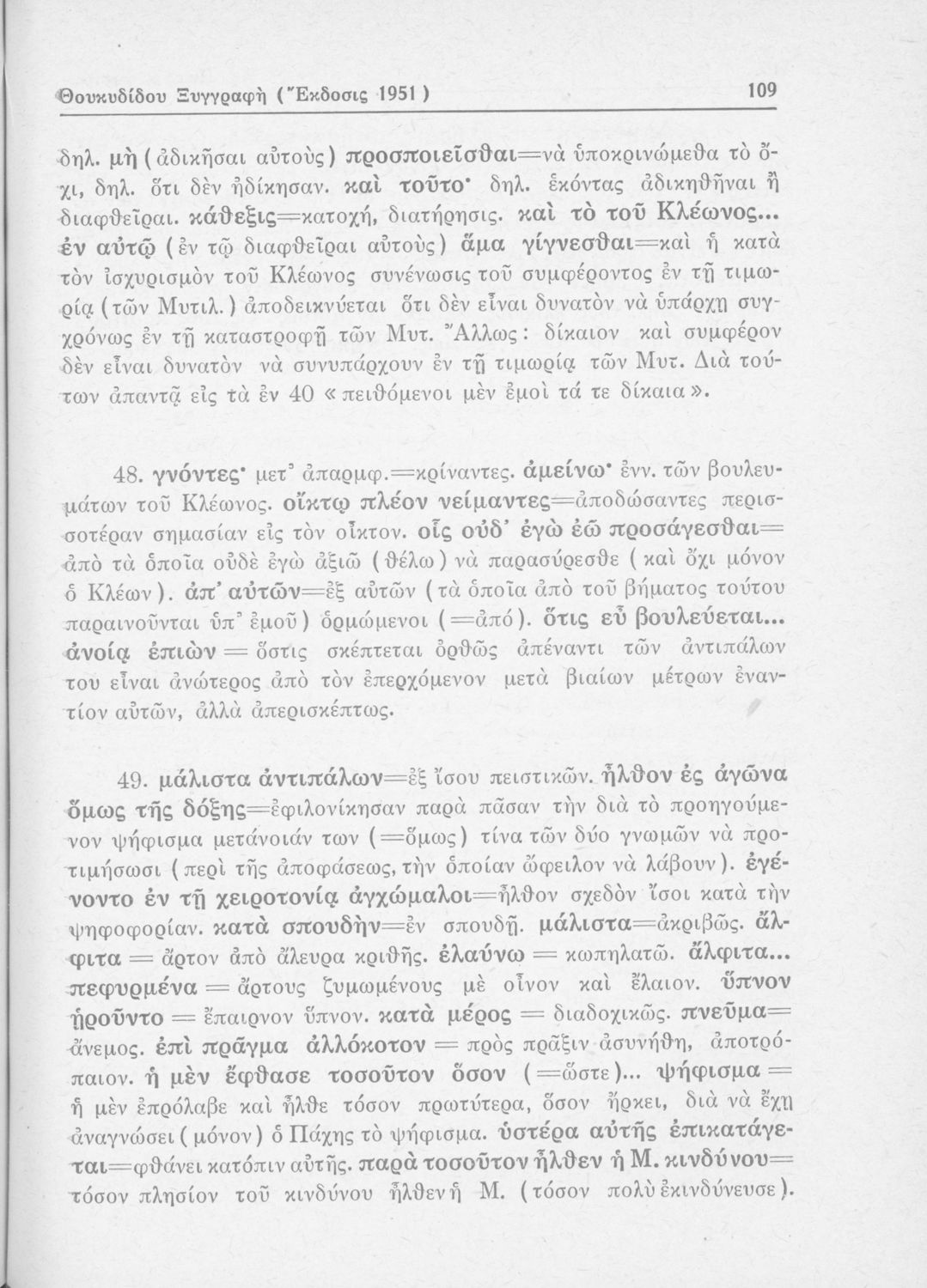 Θουκυδίδης, Χρισ. Παπαναστασίου (σχόλια)