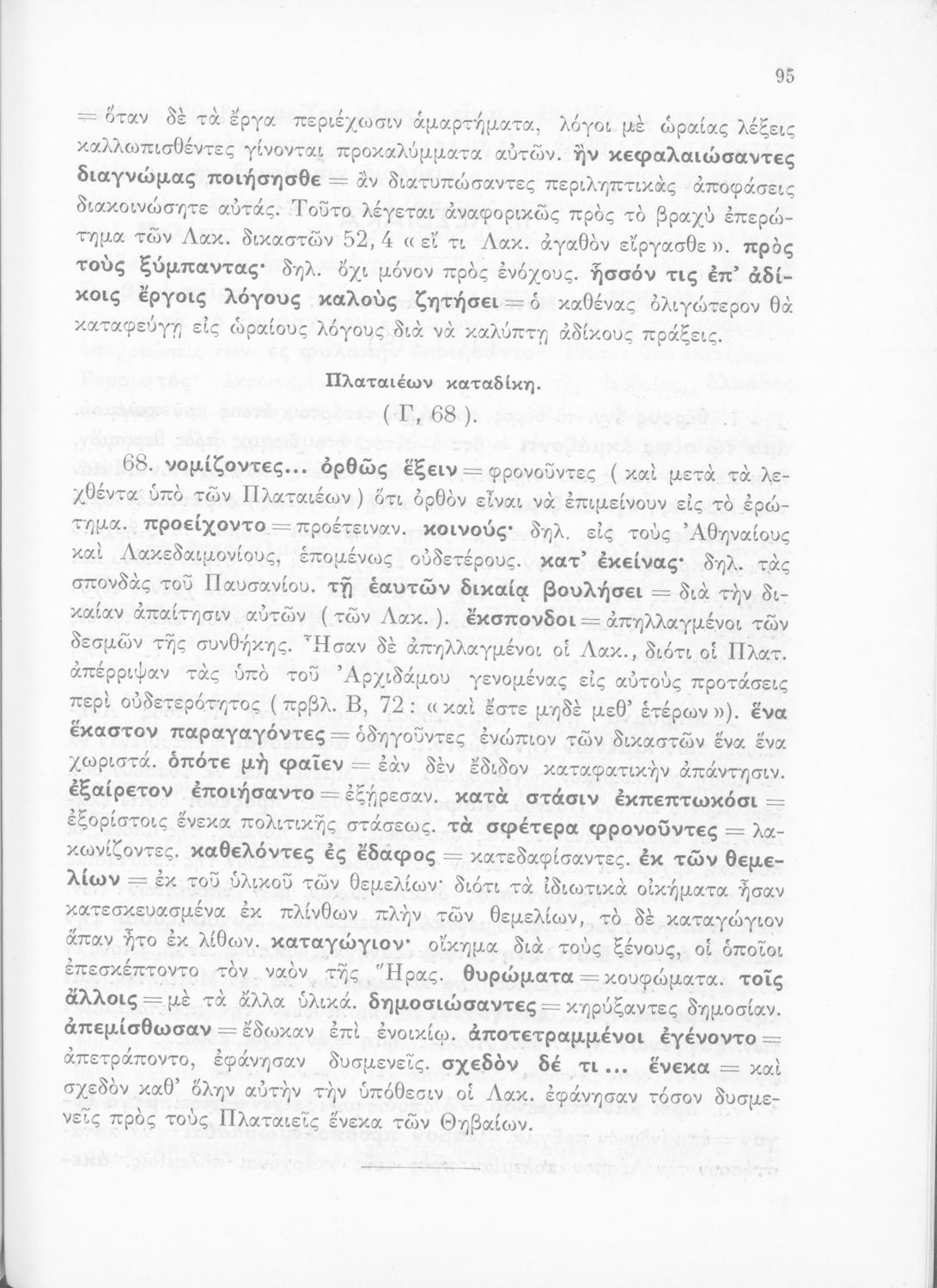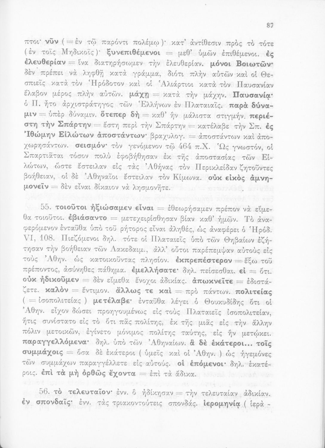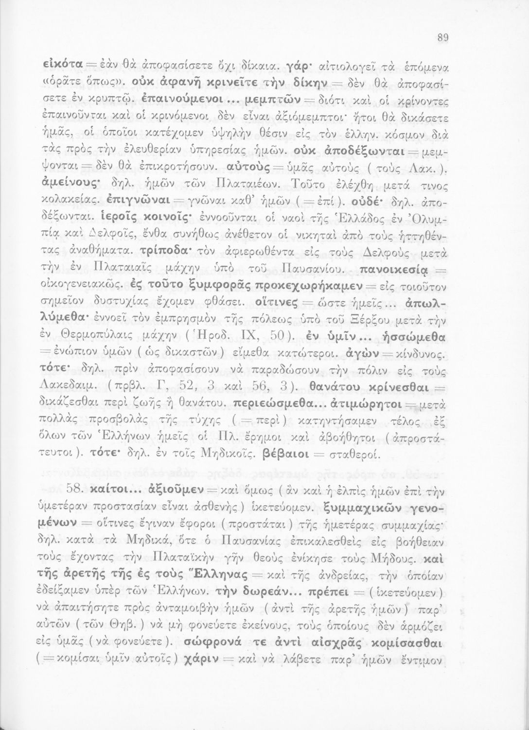 Σχολικό εγχειρίδιο Αρχαίων Ελληνικών για τις Δ΄, Ε΄ και ΣΤ΄ Γυμνασίου παλαιού τύπου που περιλαμβάνει σύντομο βιογραφικό σημείωμα του Θουκυδίδη, περιγραφή του ιστορικού πλαισίου, αποσπάσματα από τα Πλαταϊκά, τα