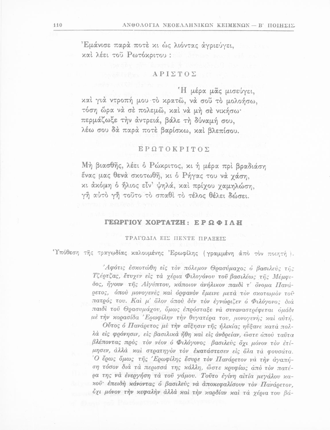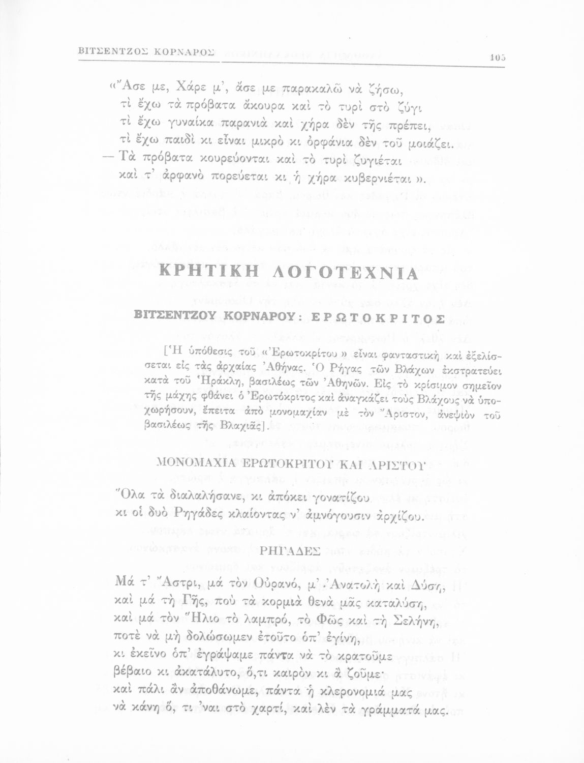 Σχολικό εγχειρίδιο Νέων Ελληνικών για τη Δευτεροβάθμια Εκπαίδευση που περιέχει κείμενα από την ελληνική πεζογραφία και την κρητική λογοτεχνία καθώς και δημοτικά τραγούδια εμπνευσμένα από την εθνική ζωή του τόπου.