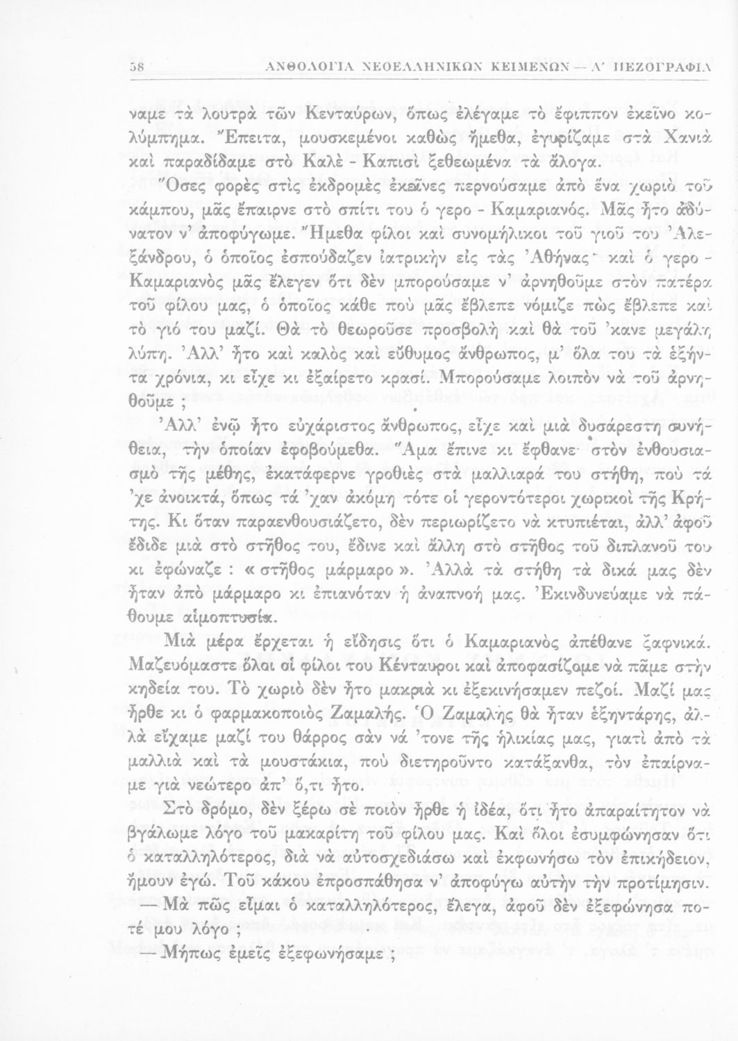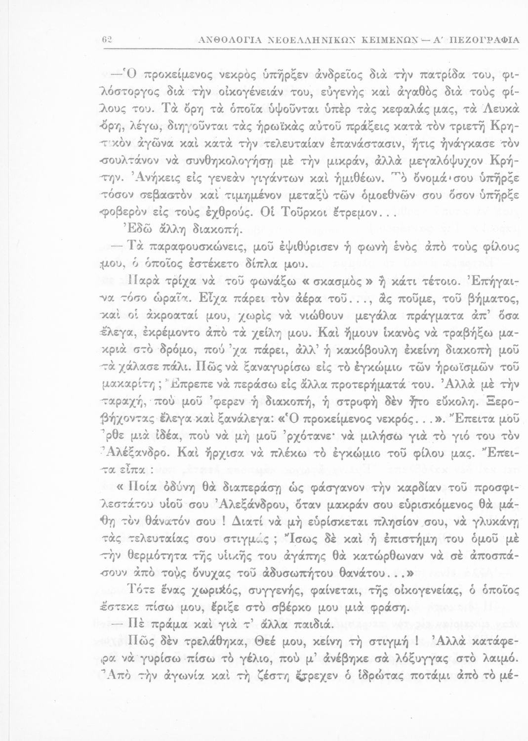 Σχολικό εγχειρίδιο Νέων Ελληνικών για τη Δευτεροβάθμια Εκπαίδευση που περιέχει κείμενα από την ελληνική πεζογραφία και την κρητική λογοτεχνία καθώς και δημοτικά τραγούδια εμπνευσμένα από την εθνική ζωή του τόπου.